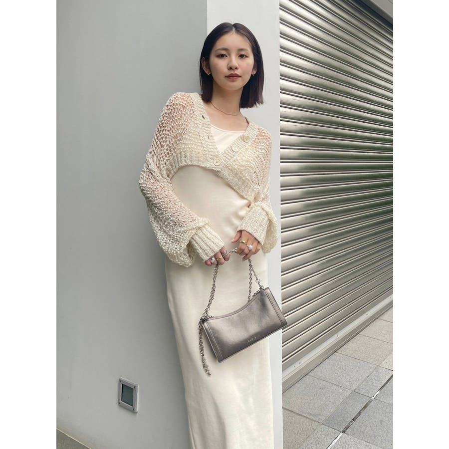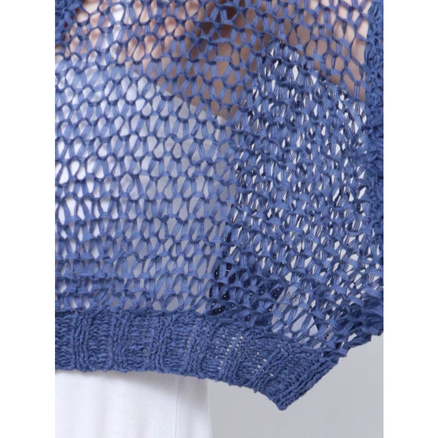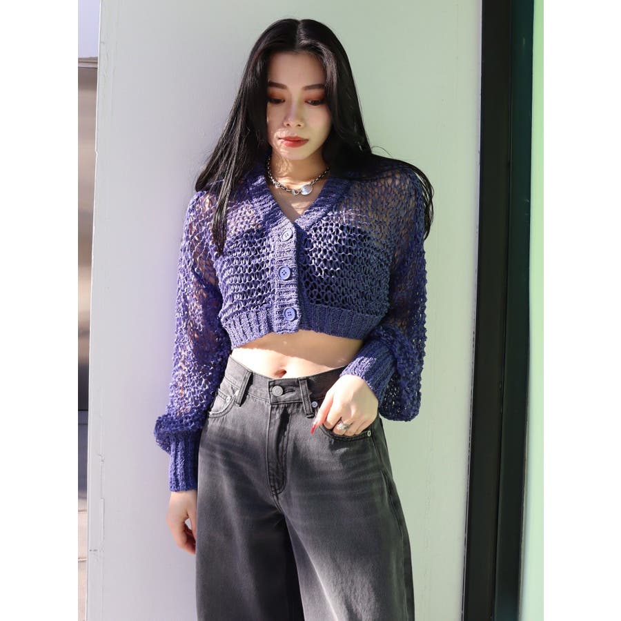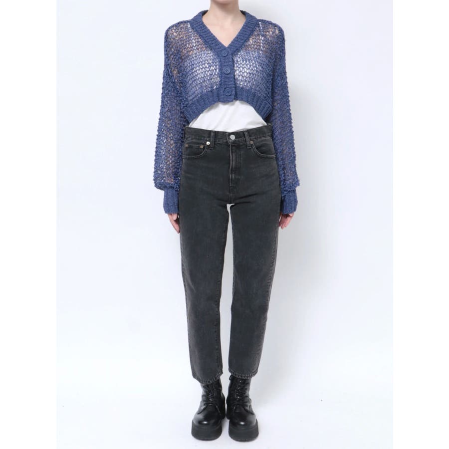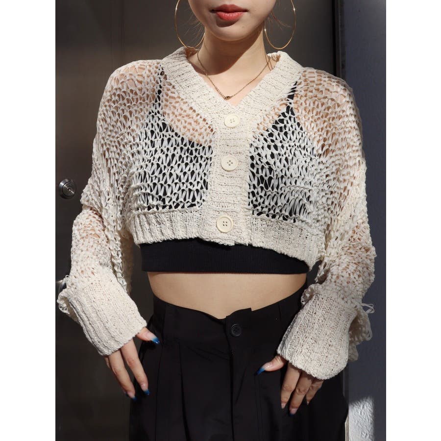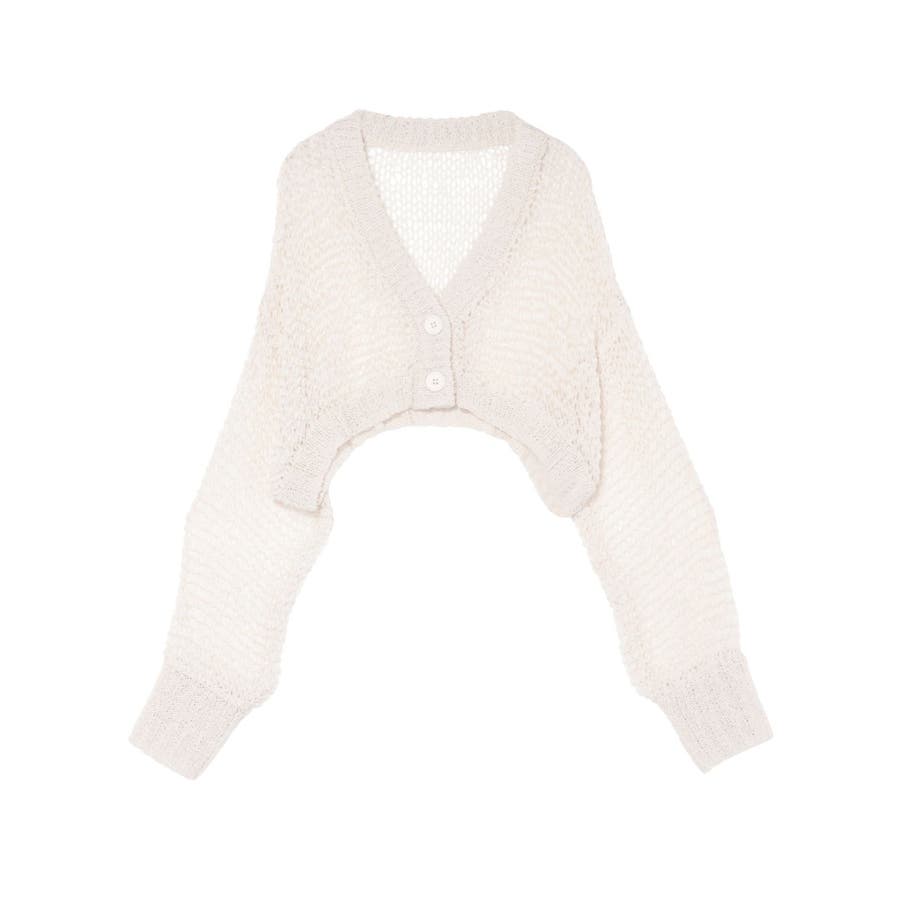 【デザイン】太めのテープヤーンを緩めに編んだニットカーディガンです。透け感のある編地は春から夏まで着用していただけるデザインです。ショート丈でどんなボトムにも合わせやすいデザインとなっています。折りたたむと小さくまとまり、太めのテープヤーンでしわも気にならないニットなので夏の羽織りとして持ち運びもしやすいです。【コーディネート】キャミソールやタンクトップの上からさらっと羽織れます。ショート丈なのでトレンドのワイドボトムと合わせるとスタイルアップ◎Vネックなのでデコルテも綺麗に見えてバランスがとりやすいです。キャミワンピースなどと合わせても◎サマーニット 夏カーディガン ショート丈 クロップド丈 シアー 透けカーディガン