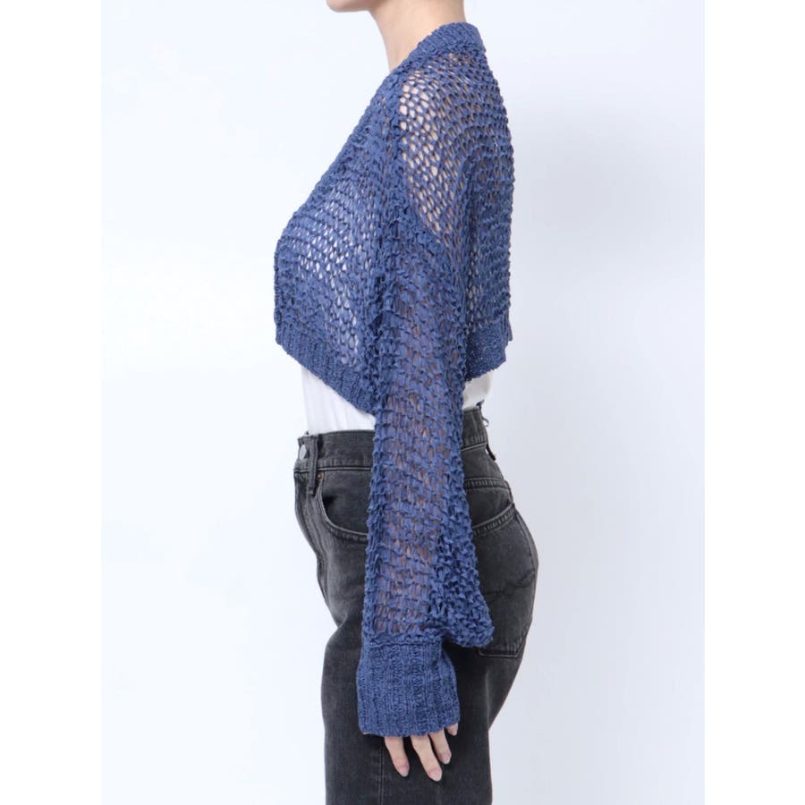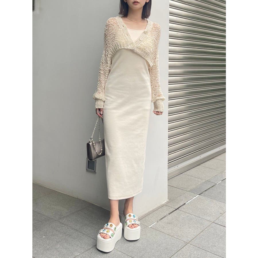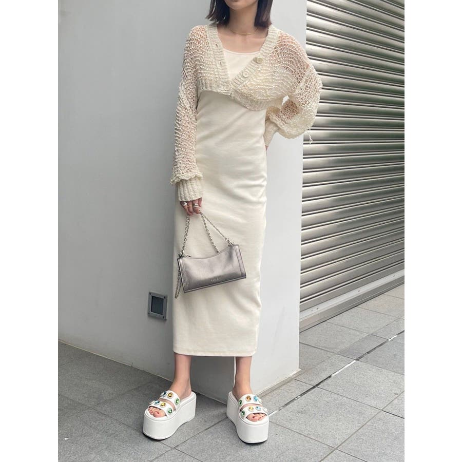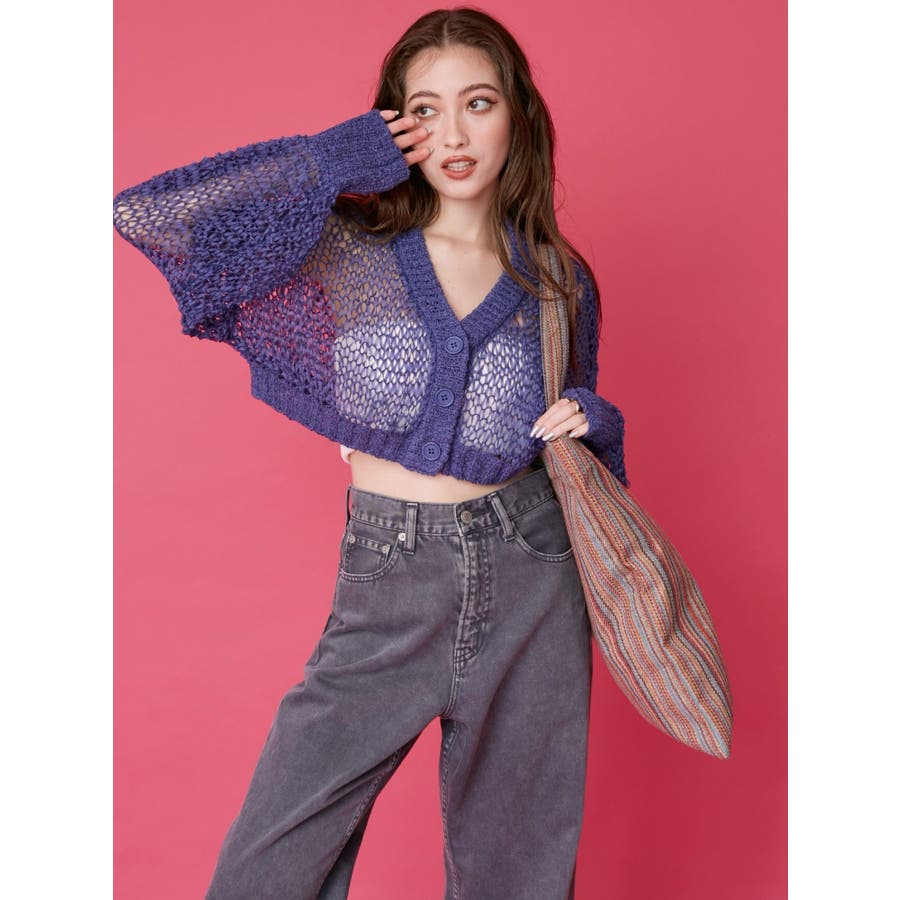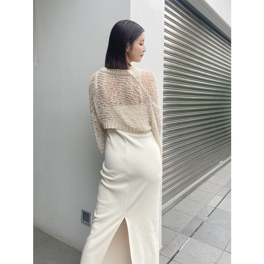 【デザイン】太めのテープヤーンを緩めに編んだニットカーディガンです。透け感のある編地は春から夏まで着用していただけるデザインです。ショート丈でどんなボトムにも合わせやすいデザインとなっています。折りたたむと小さくまとまり、太めのテープヤーンでしわも気にならないニットなので夏の羽織りとして持ち運びもしやすいです。【コーディネート】キャミソールやタンクトップの上からさらっと羽織れます。ショート丈なのでトレンドのワイドボトムと合わせるとスタイルアップ◎Vネックなのでデコルテも綺麗に見えてバランスがとりやすいです。キャミワンピースなどと合わせても◎サマーニット 夏カーディガン ショート丈 クロップド丈 シアー 透けカーディガン