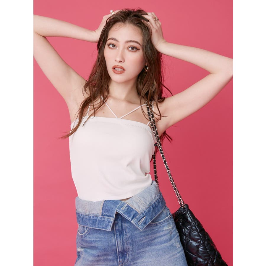 ベーシックなキャミソールとしても、ストラップをクロスさせたデザインキャミとしても。
