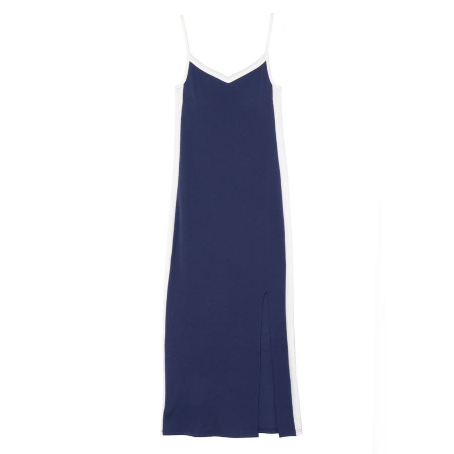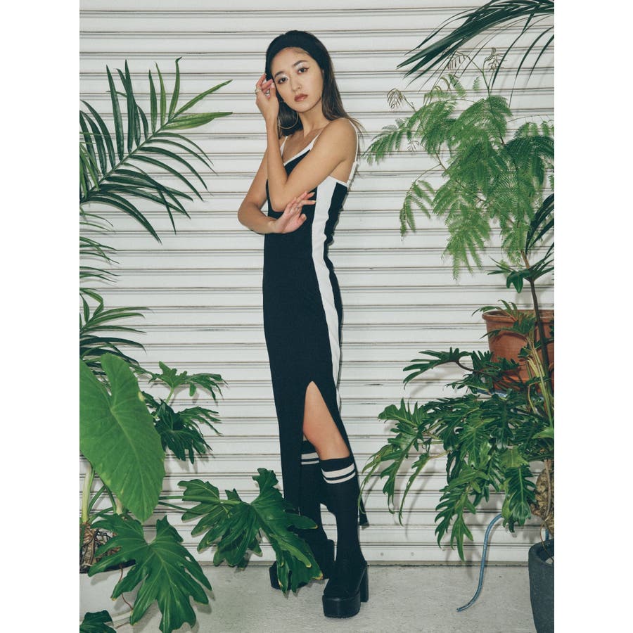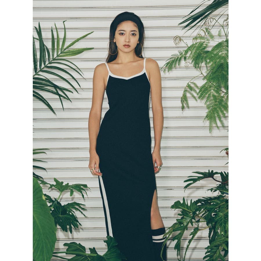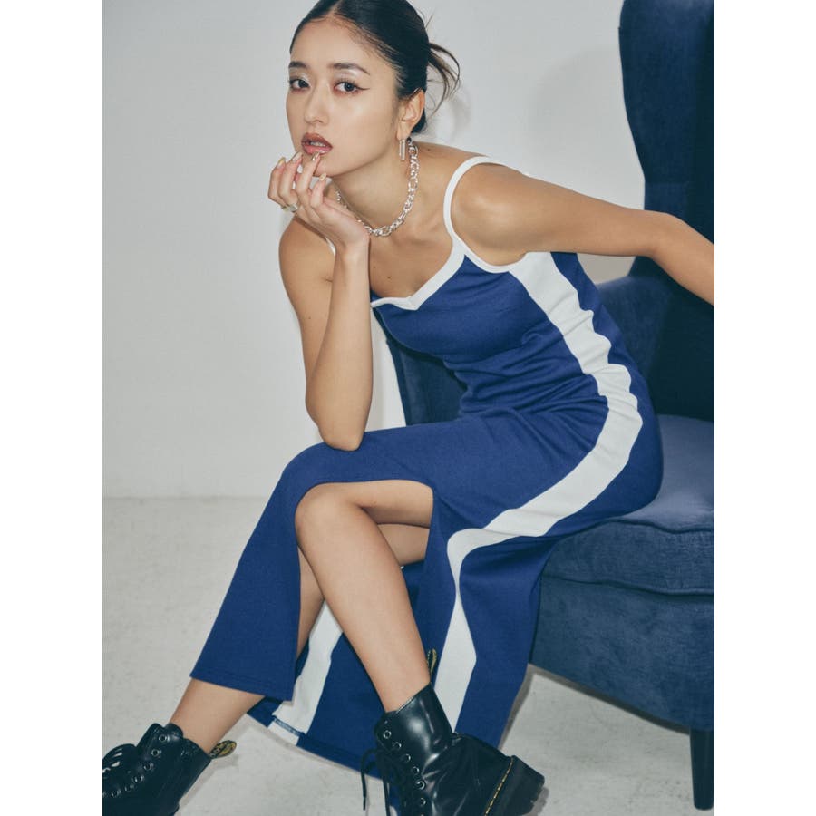 【池田美優さんコラボアイテム】バイカラーデザインのリブ生地を使用したロングワンピース。生地も肉厚で、タイト過ぎないのでインナーも気にせずに着用していただけます。パッド付きでさらりと1枚で着用できます。背中にコラボロゴの刺繍を入れています。スリット入りで伸縮性のある生地なので、動きやすいのもポイントです。上からユニフォームトップスをレイヤードしたスタイリングもおすすめです。