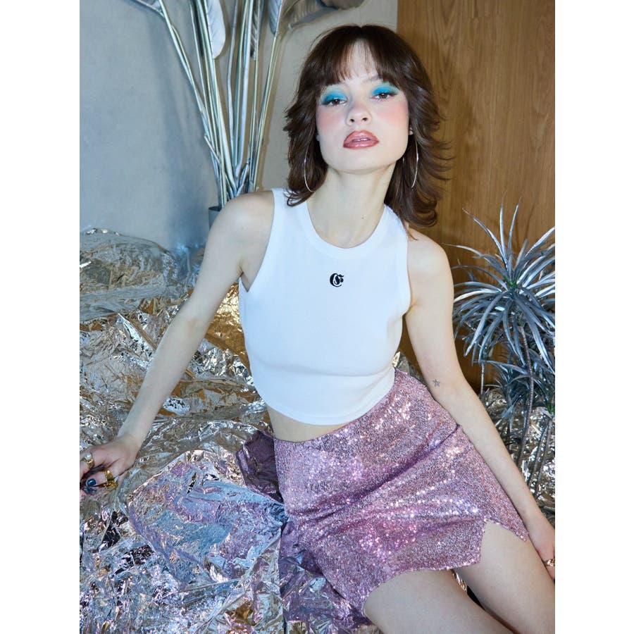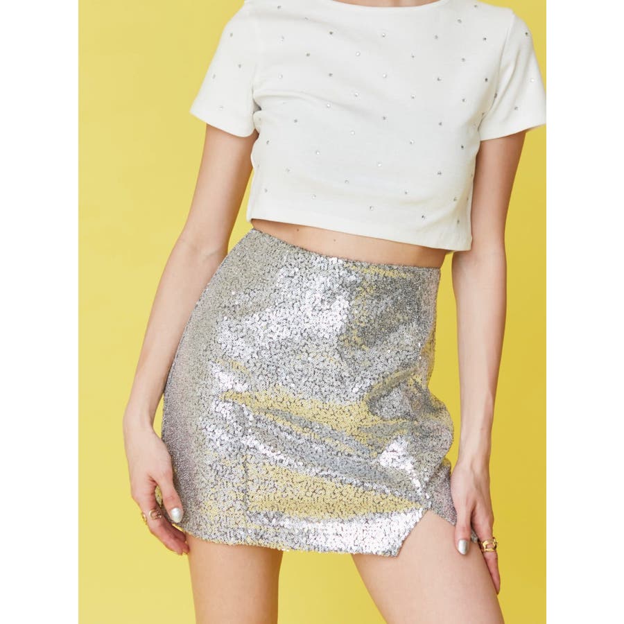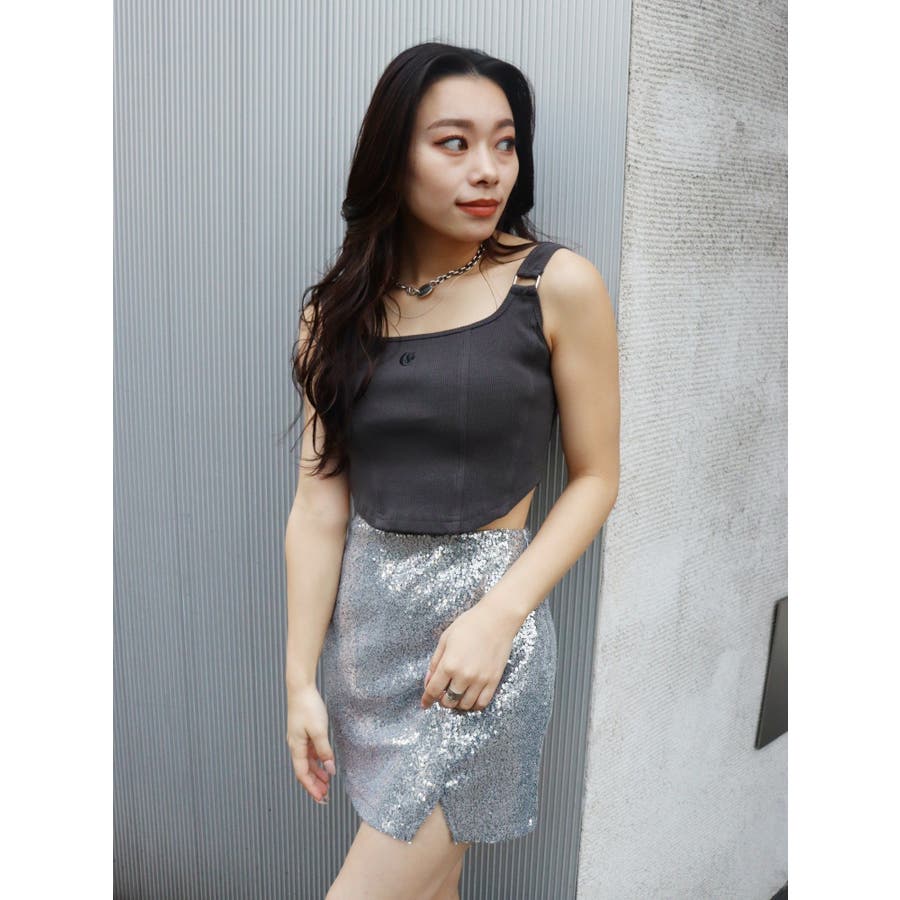シーズンコンセプトでもある、シャイニー感のあるミニスカートです。シルエットとサイズ感はEVRIS定番のミニスカートと同じで、ウエストがキュッと絞られており台形に裾が広がっていることで、美脚効果のあるスカートです。インナーショートパンツ付きなので安心して着用して頂けます。