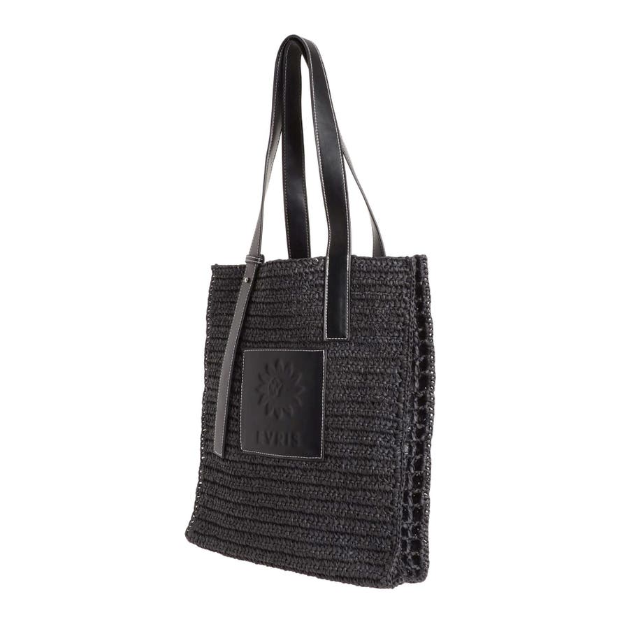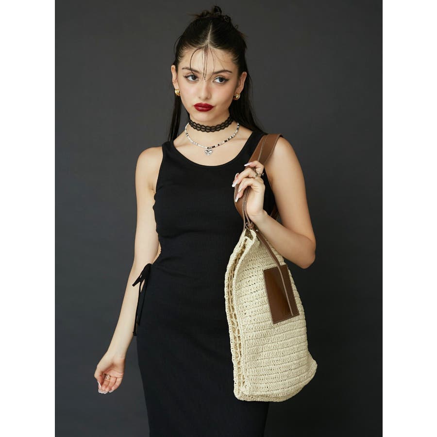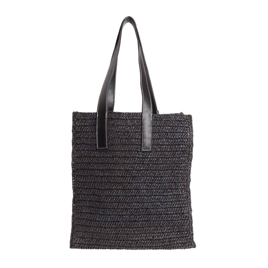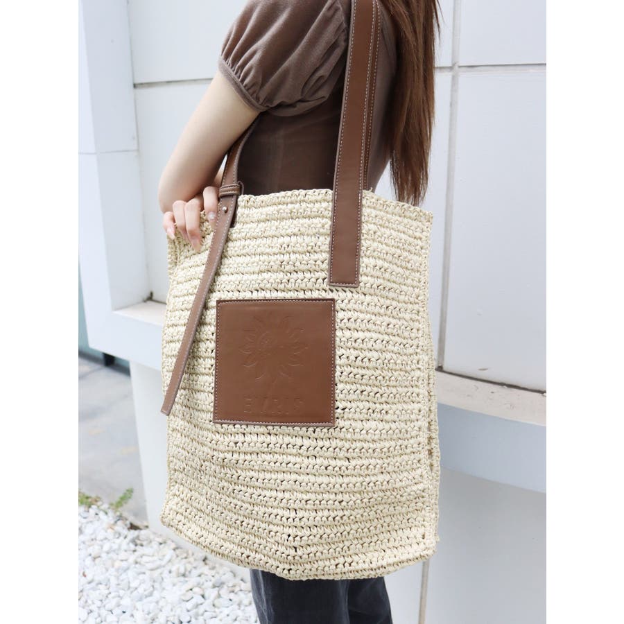 ■デザインワンポイントロゴの型押しとあえて長めに垂らしたショルダーがポイントの夏らしいペーパーバッグです。マチ付きで容量もたくさん入ります。A3サイズも入るサイズです。
