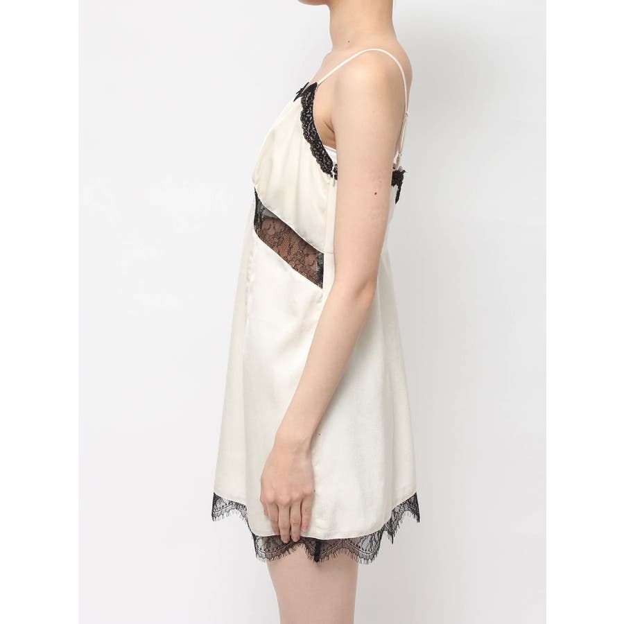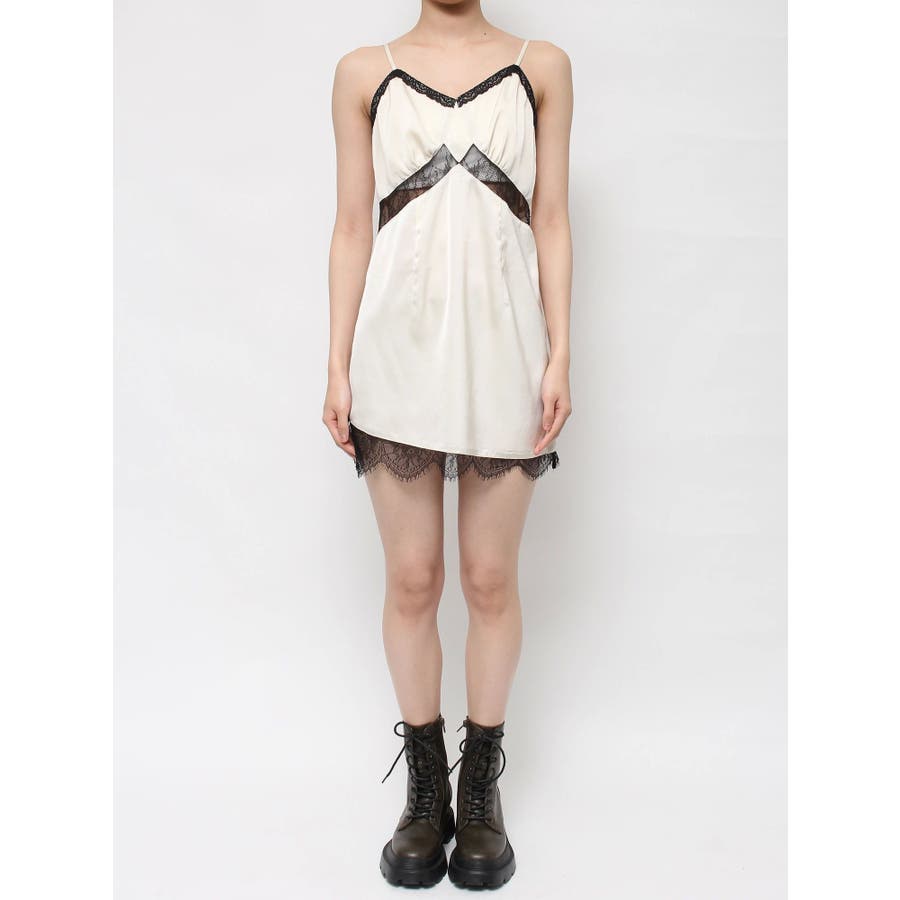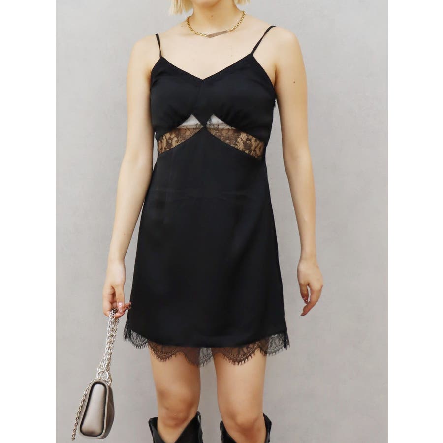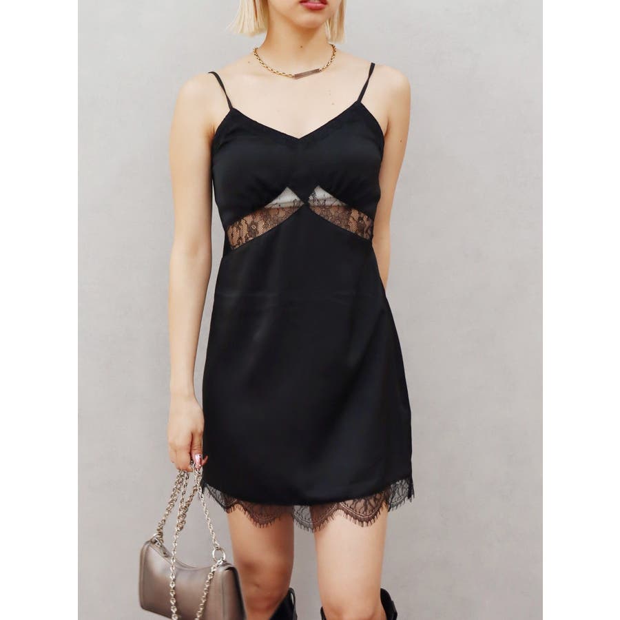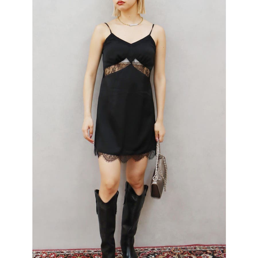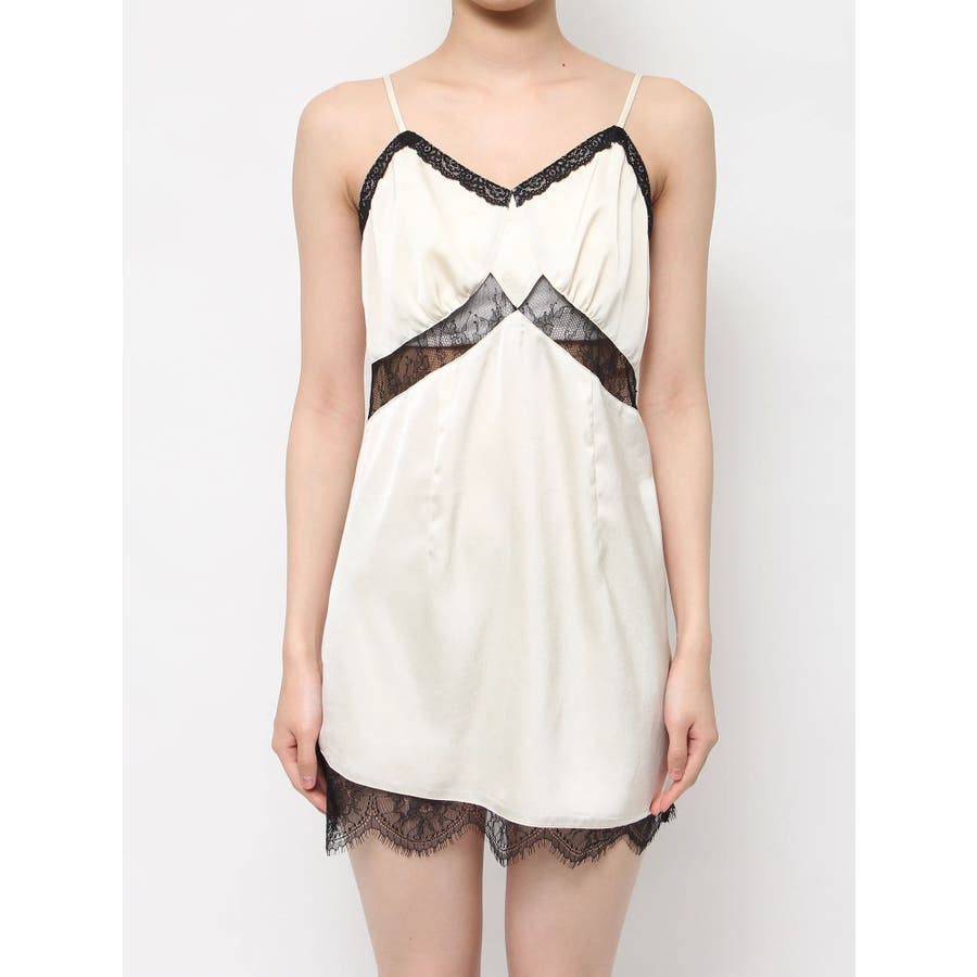 レースドッキングサテンミニワンピース