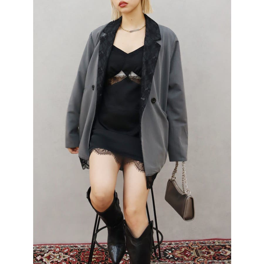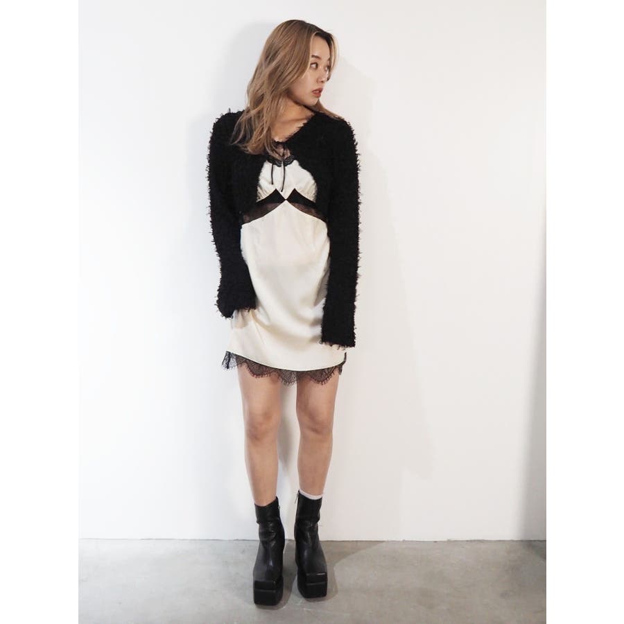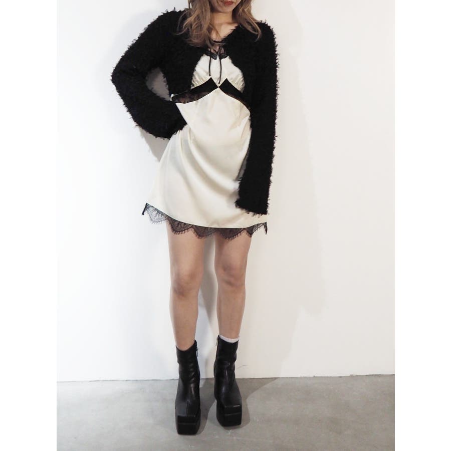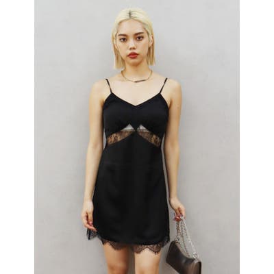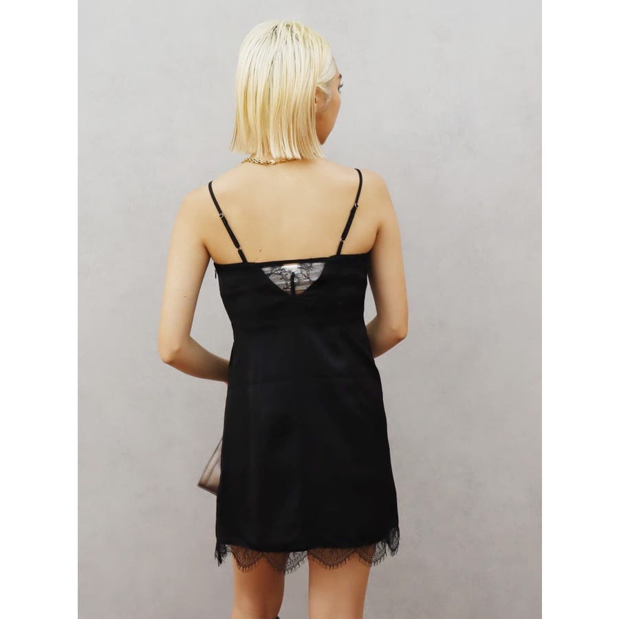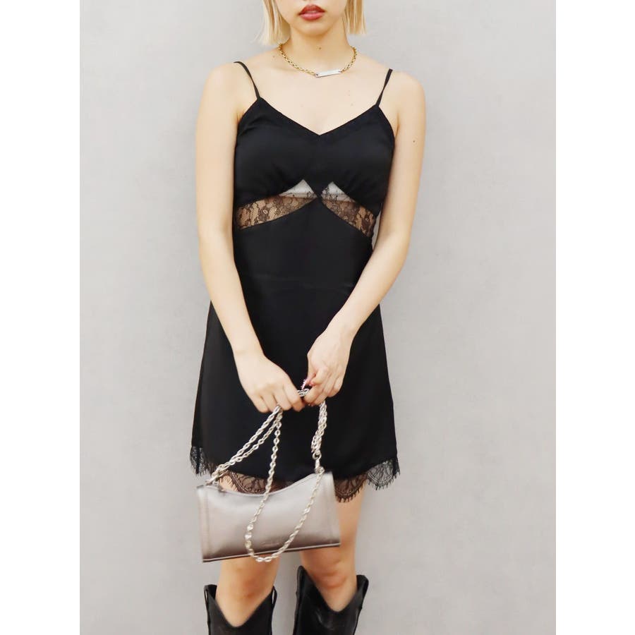 レースドッキングサテンミニワンピース