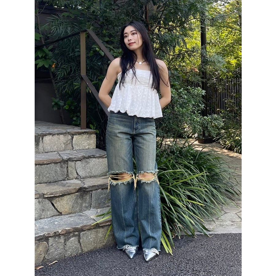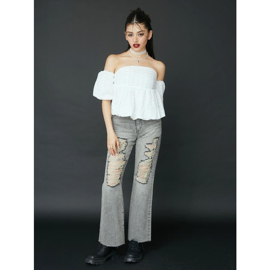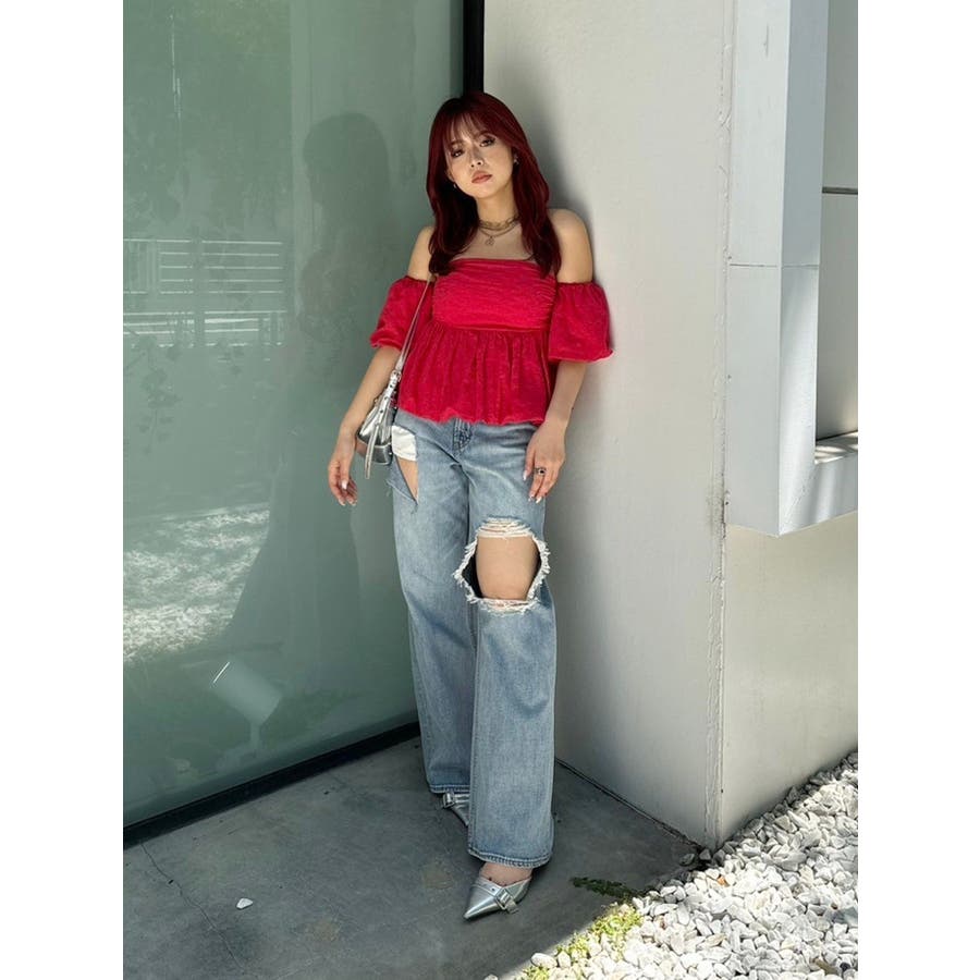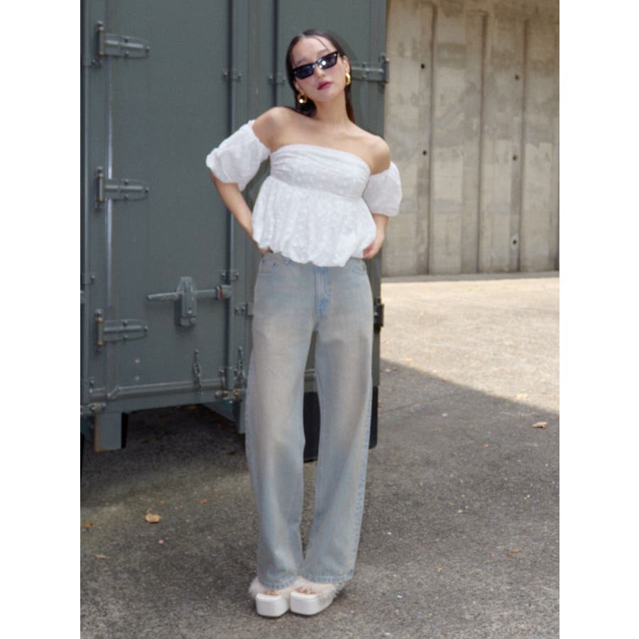 ■デザイン着回し自由自在!着方次第で簡単に印象を変えられるのが魅力的な3WAYトップスです。袖が取り外し可能になっているので、袖アリ、オフショル、ベアトップとシーンに合わせて着用していただけます。身頃のふわっと感がかわいらしい一枚です。■スタイリング夏らしいデニム合わせなどでカジュアルさをプラスするのがおすすめ。ロングスカートと合わせるのもレディな印象に仕上がって◎。-------------- 透け感:なし 裏地:なし 生地の厚み:薄手伸縮性:なし --------------