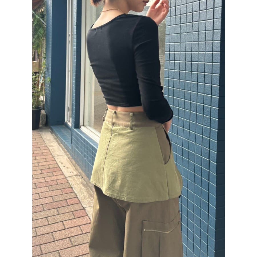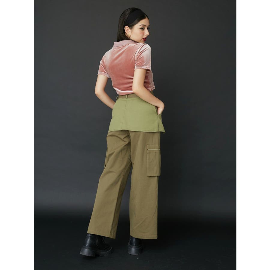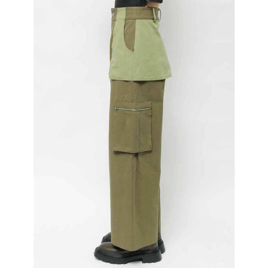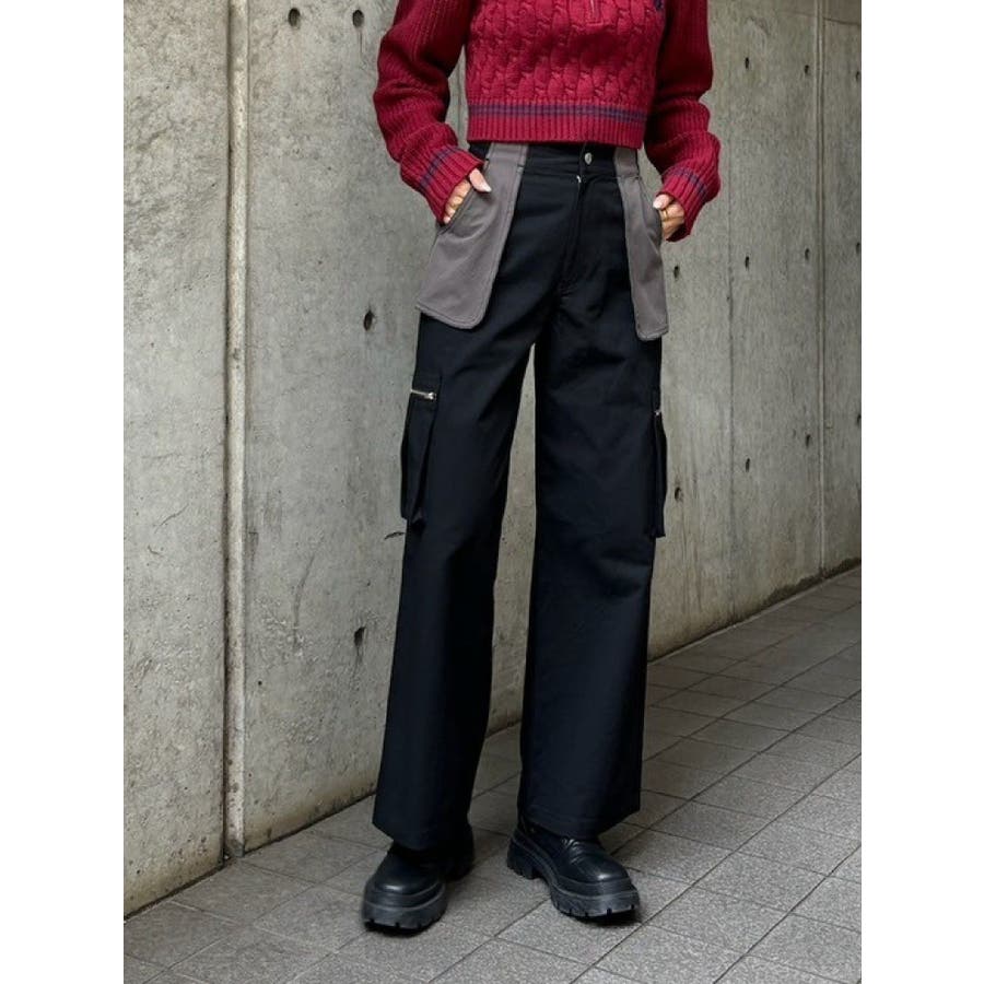 ■デザイントレンドのスカートを巻いたようなデザインのワイドパンツです。大きめのフラップがスカート風に見えるデザインなので、スカートをレイヤードさせるよりも挑戦しやすい仕様になっています。配色デザインでエッジをきかせているのもポイントで、EVRIS(エヴリス)ならではのパンツに仕上がっています。■スタイリングロンTやニットなど、幅広いスタイリングにお楽しみいただけます。短丈のトップスと合わせてすっきりと着るのがおすすめです。-------------- 透け感:なし 裏地:なし 生地の厚み:普通伸縮性:なし --------------