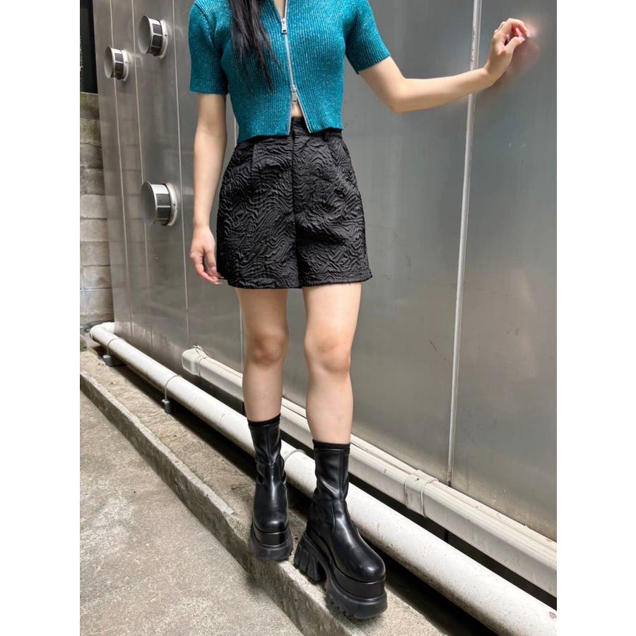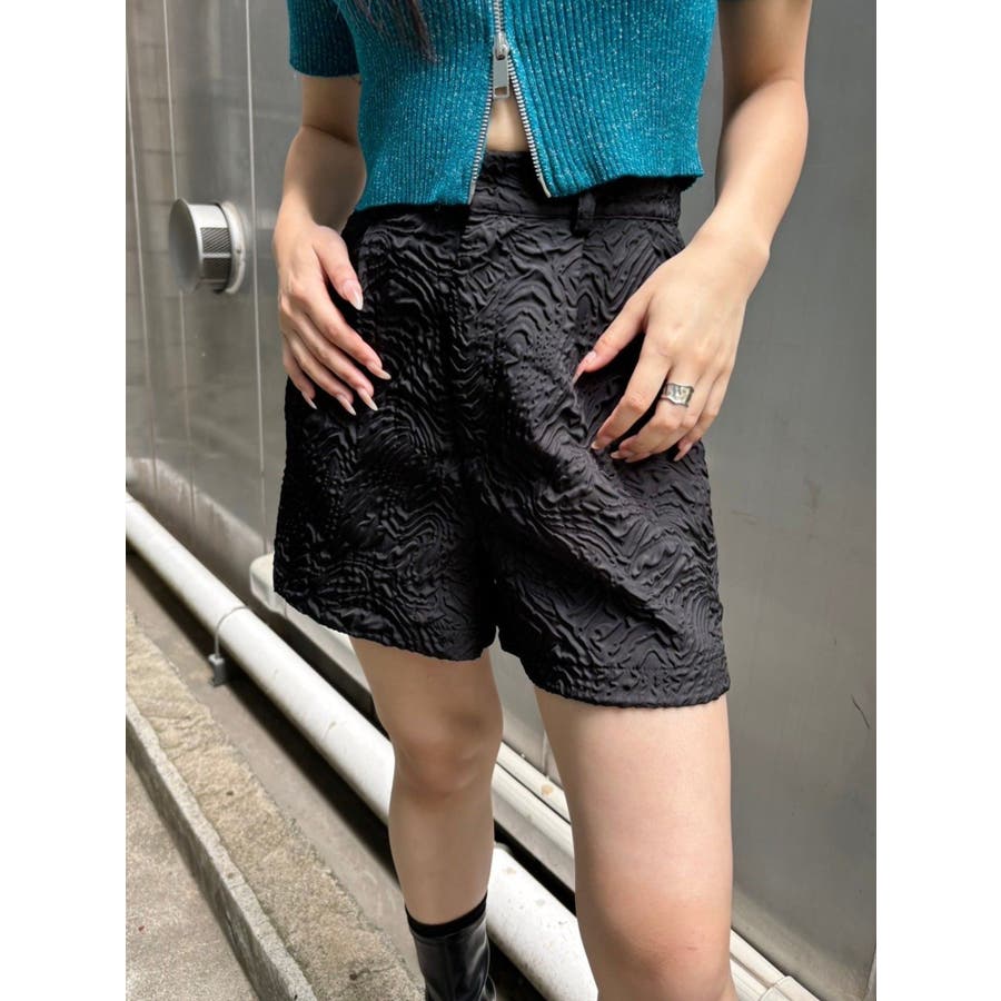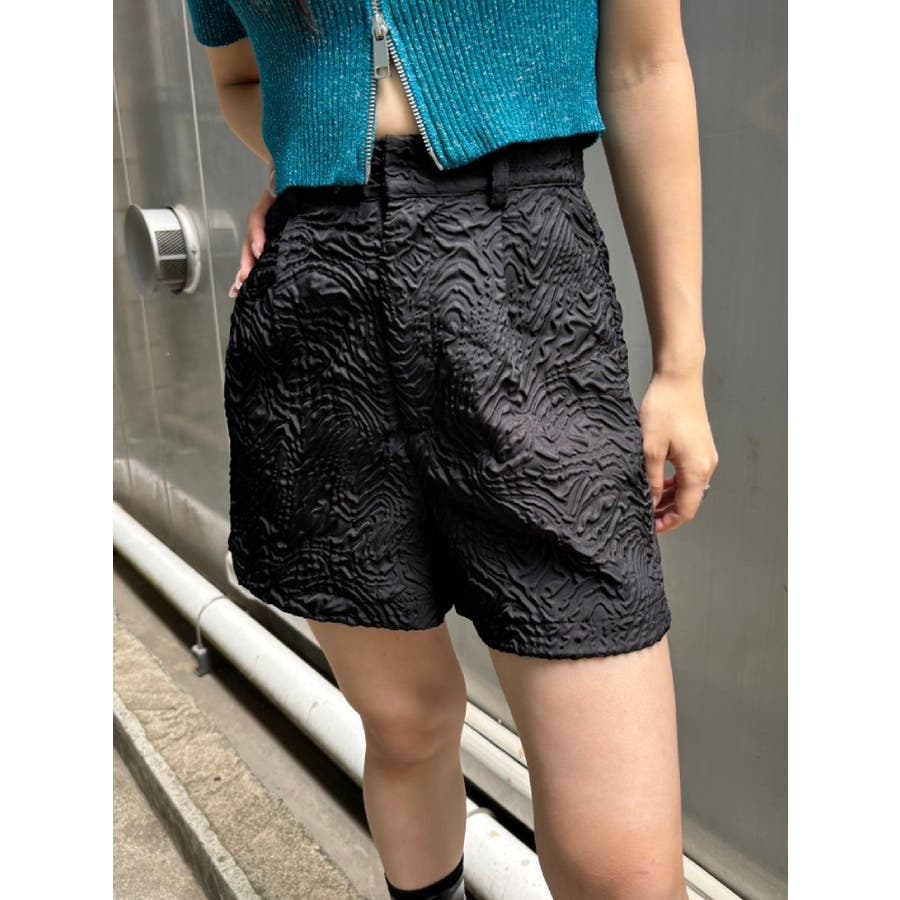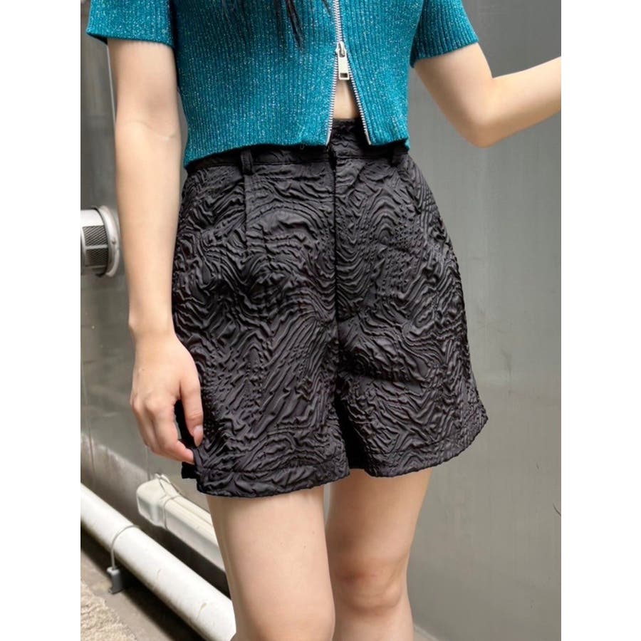 ■デザイン表面感のあるふくれジャガード素材を使用したショートパンツです。トップスがシンプルになる夏の時期にスタイリングをアップデートできる1枚。ベーシックなカラー展開でどんなトップスとも合わせやすい1枚となっています。■スタイリングほんのりグランジ感のあるトップスと合わせるのが今年らしくておすすめ。ビッグTをゆるっとタックインで着るのが◎-------------- 透け感:なし生地の厚み:普通伸縮性:なし --------------