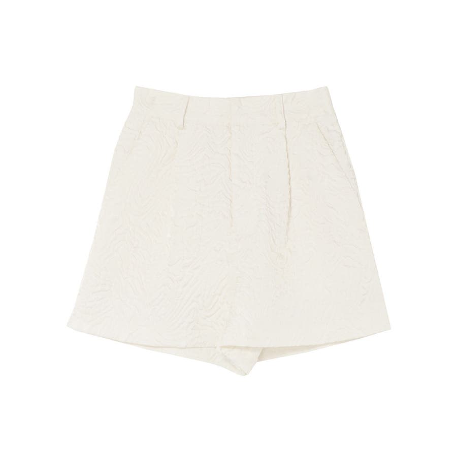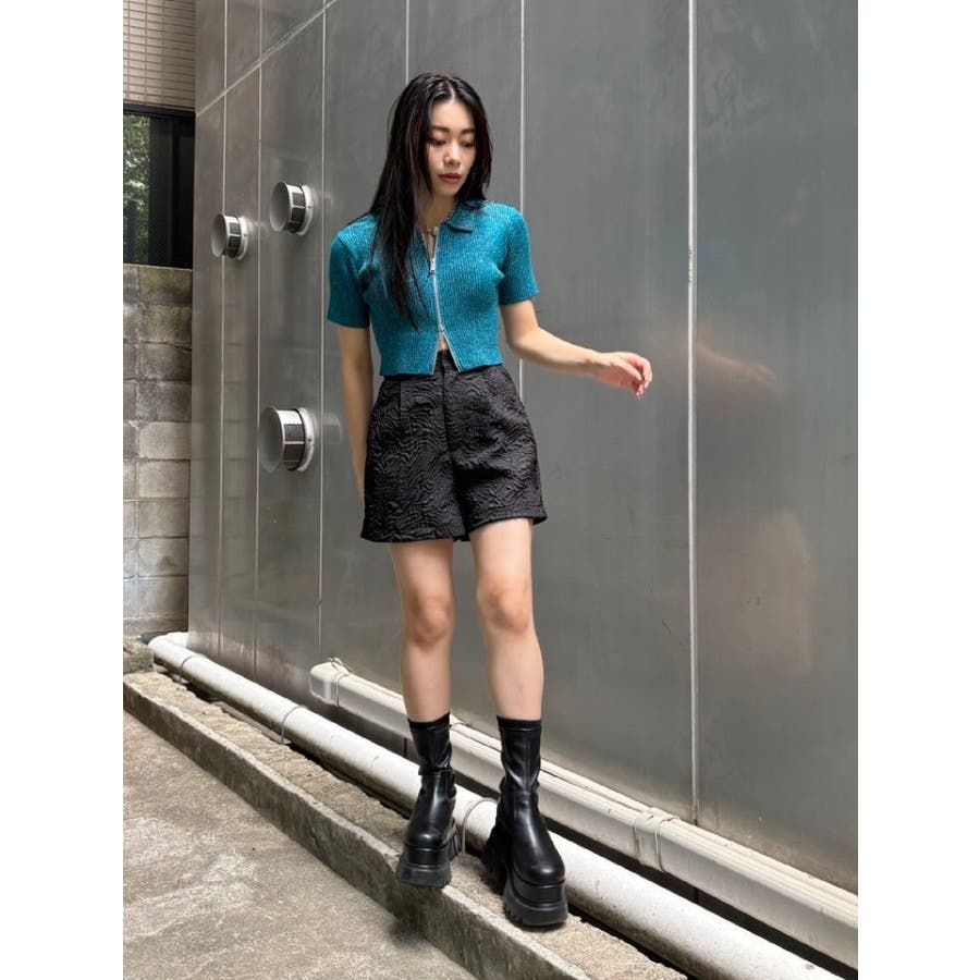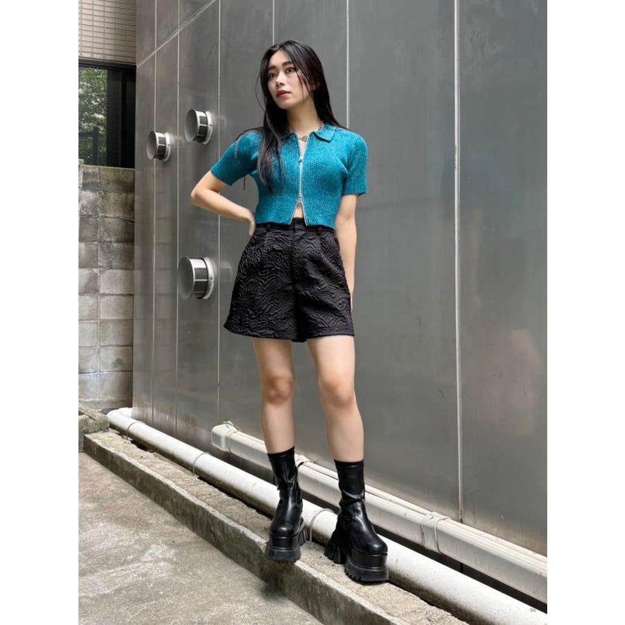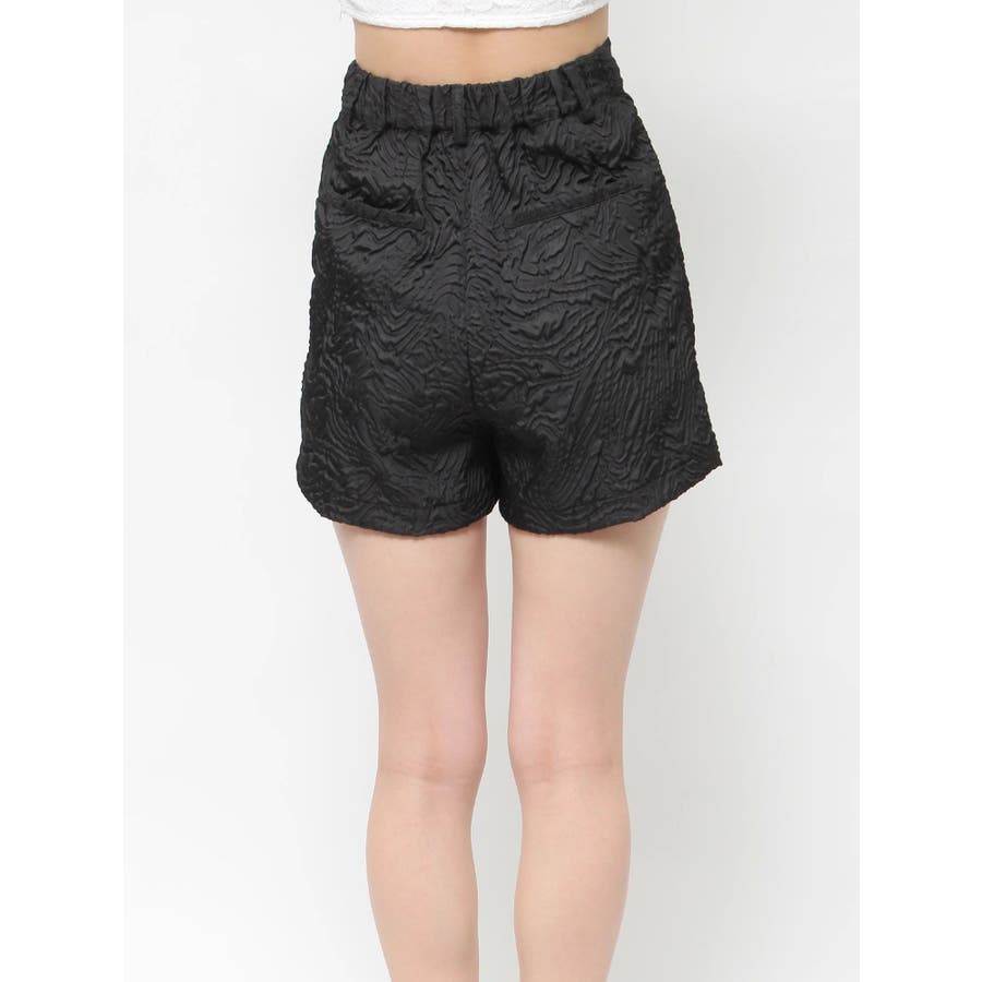 ■デザイン表面感のあるふくれジャガード素材を使用したショートパンツです。トップスがシンプルになる夏の時期にスタイリングをアップデートできる1枚。ベーシックなカラー展開でどんなトップスとも合わせやすい1枚となっています。■スタイリングほんのりグランジ感のあるトップスと合わせるのが今年らしくておすすめ。ビッグTをゆるっとタックインで着るのが◎-------------- 透け感:なし生地の厚み:普通伸縮性:なし --------------