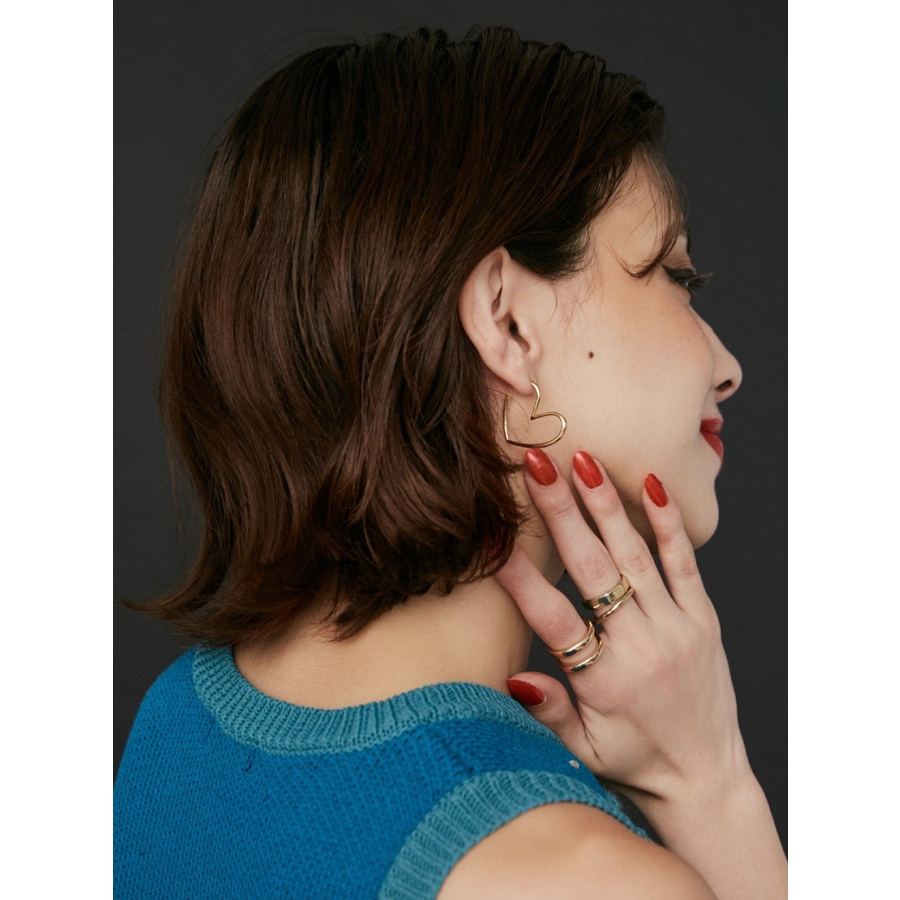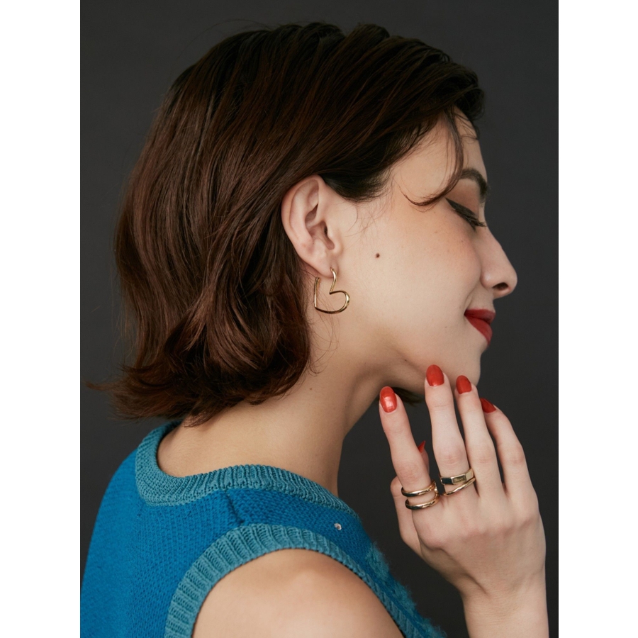 ハートの形をしたフープピアスです。サイドから見えるシルエットがハートになっておりトレンド感のあるピアスです。