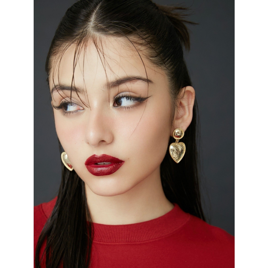表面感がヴィンテージ感のある、大振りのハートモチーフピアスです。大きいサイズ感なので、耳元に印象を与えてくれ、コーデのポイントになります。