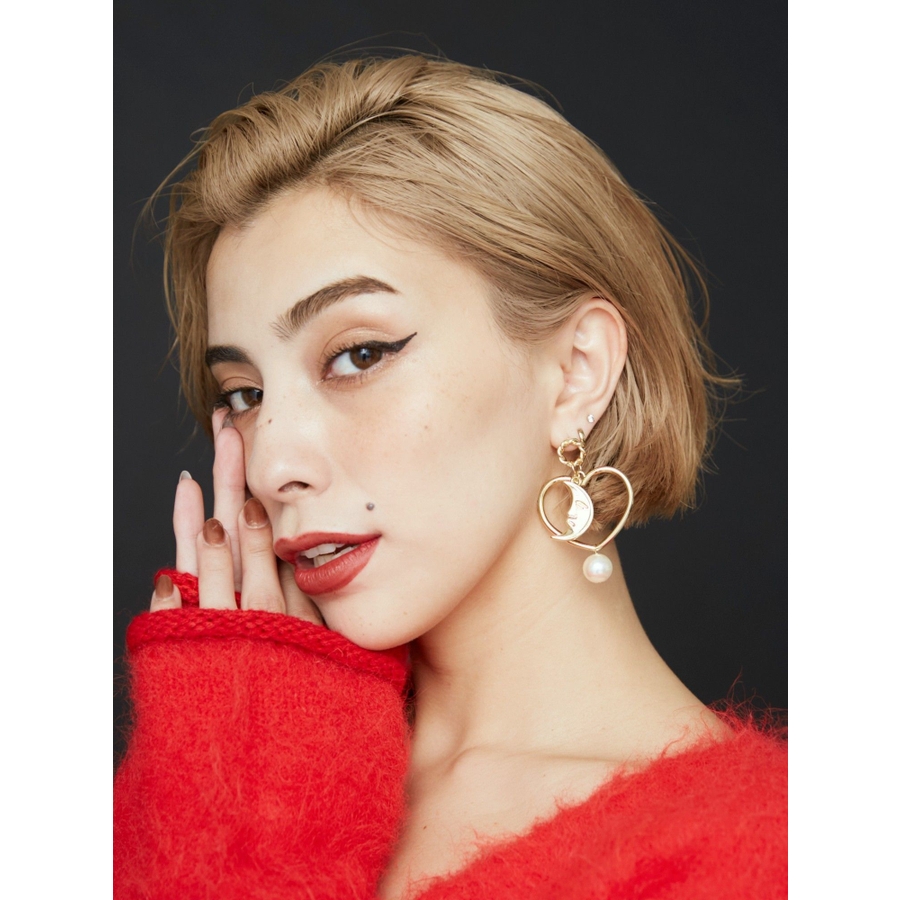 EVRIS(エヴリス)で人気のサニーモチーフに、今季トレンドのハートモチーフを組み合わせた、トレンド感のあるピアスです。オリジナルのパーツを組み合わせているので、他にはなく、被らないピアスです。