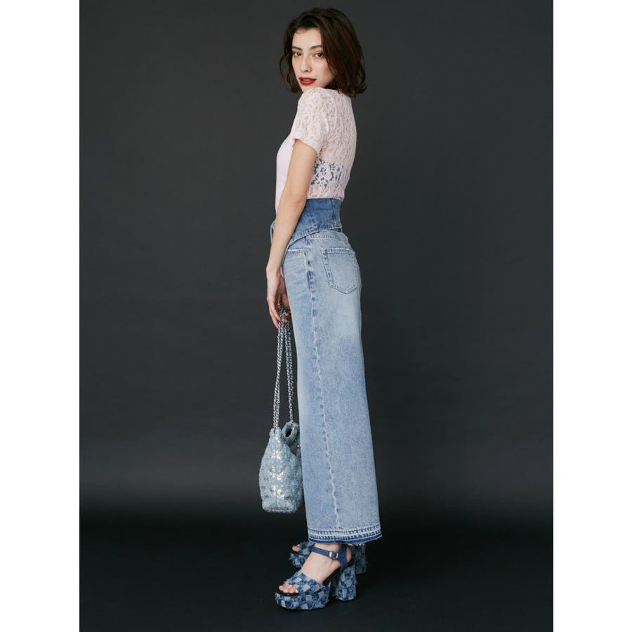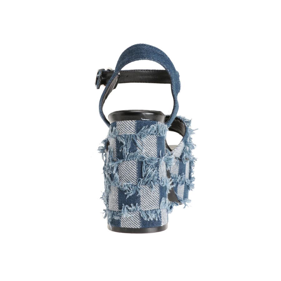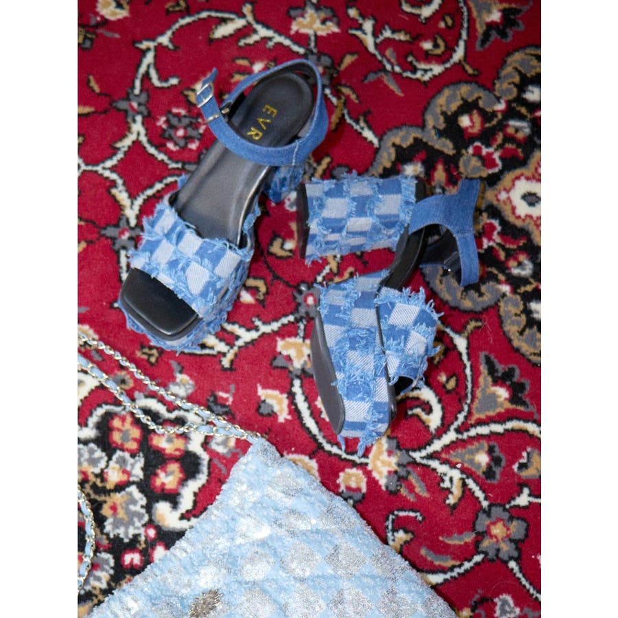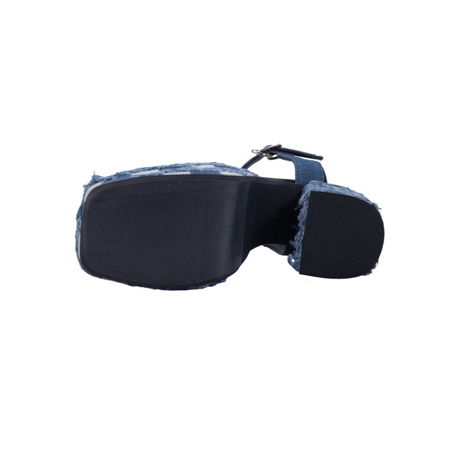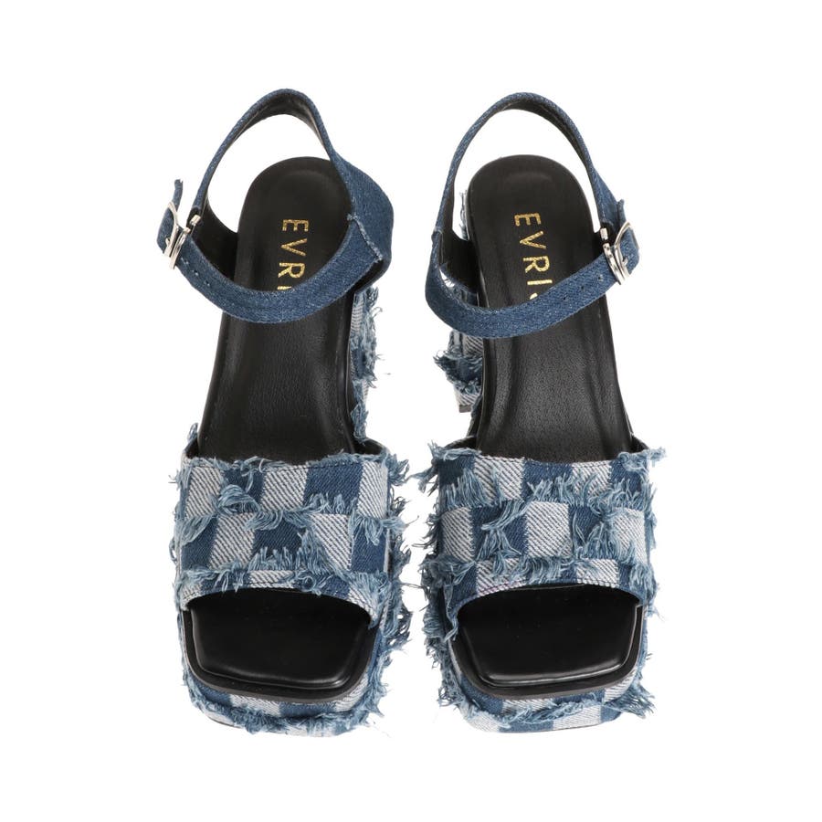 ブロッキング風のデニム生地を使用したプラットフォームサンダル。安定感のある太めヒールで歩きやすい1足です。靴下合わせのスタイリングもおすすめです。