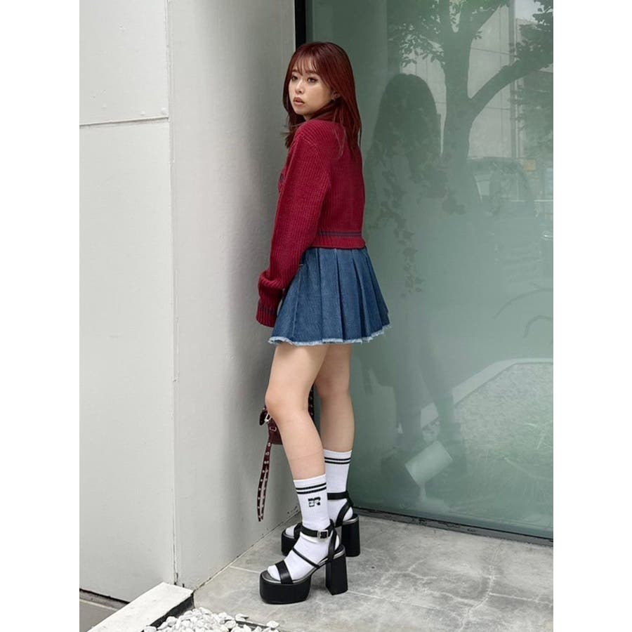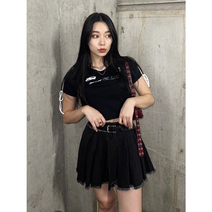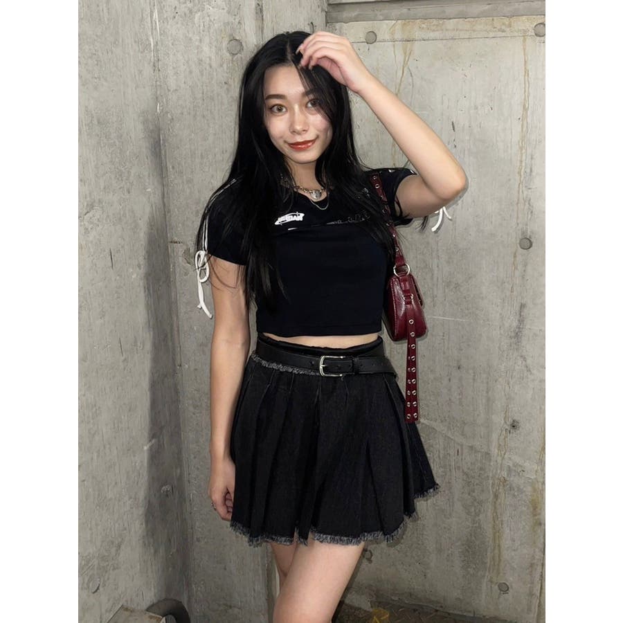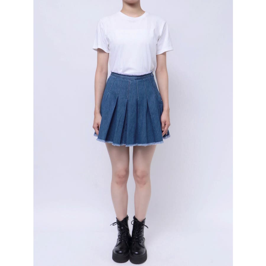 ■デザインまだまだトレンド! デニム素材のプリーツミニスカートです。ややローウエストに仕上げており、Y2K風ファッションには欠かせないアイテム。インナーショートパンツ付きなのも嬉しいポイントです。■スタイリングカジュアルなスウェット合わせや、クロップド丈のトップスとの合わせなどがおすすめです。-------------- 透け感:なし 裏地:あり生地の厚み:普通伸縮性:なし --------------