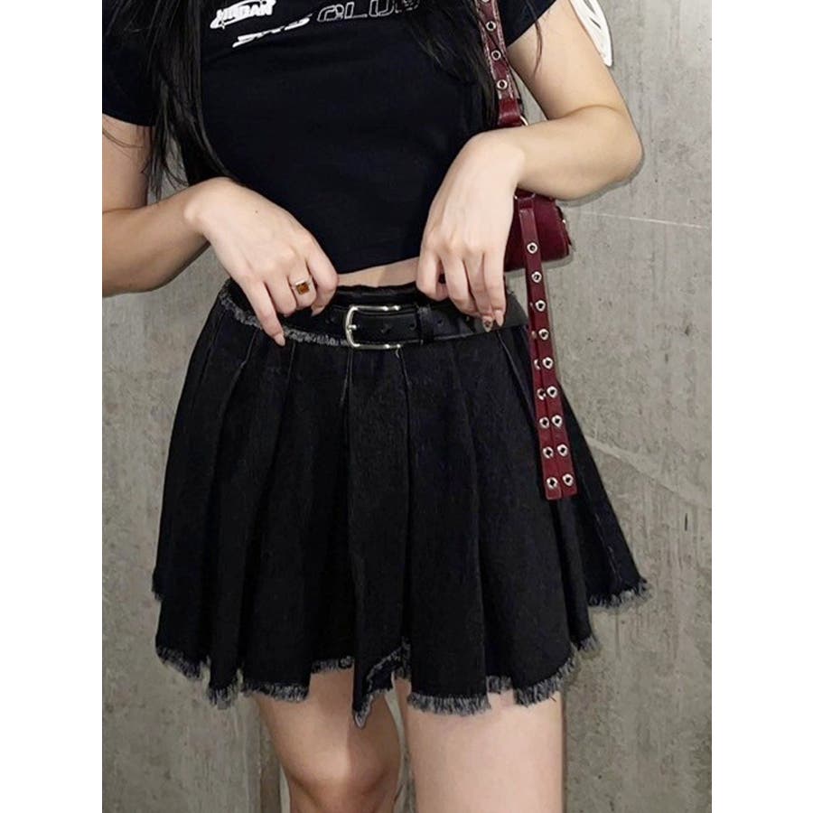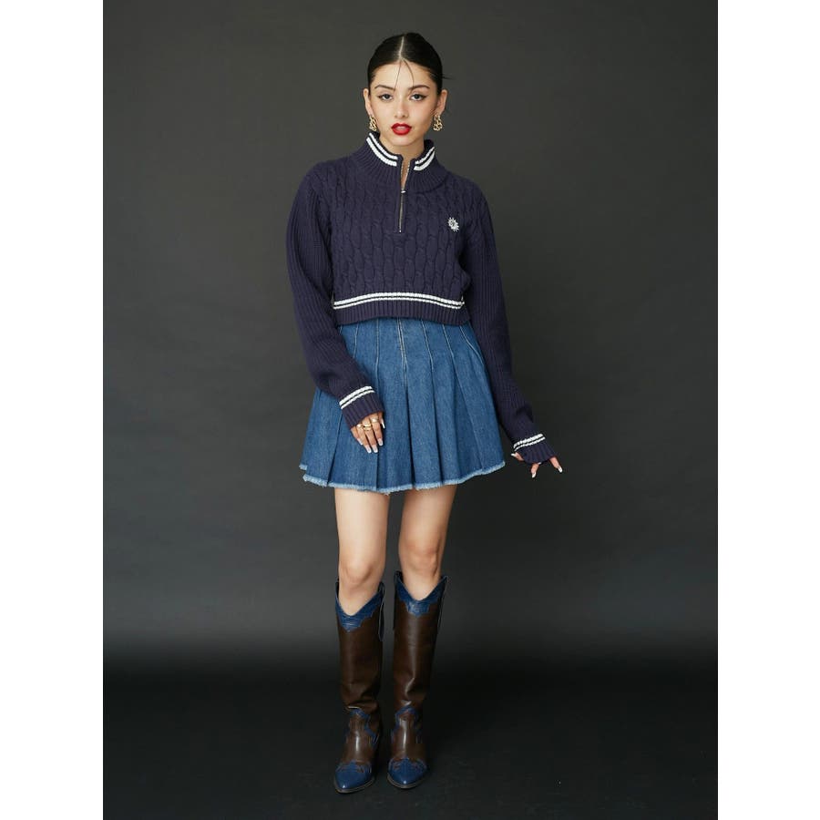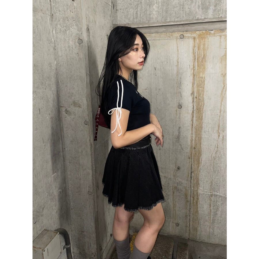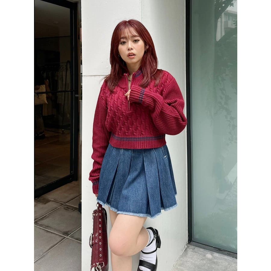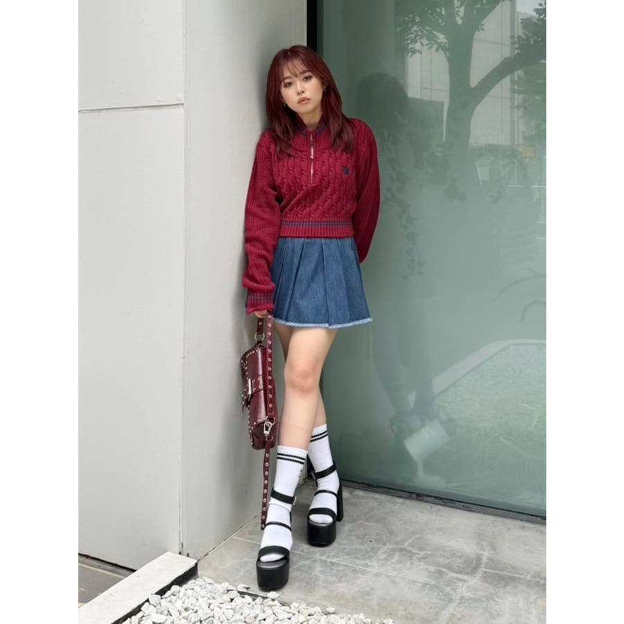 ■デザインまだまだトレンド! デニム素材のプリーツミニスカートです。ややローウエストに仕上げており、Y2K風ファッションには欠かせないアイテム。インナーショートパンツ付きなのも嬉しいポイントです。■スタイリングカジュアルなスウェット合わせや、クロップド丈のトップスとの合わせなどがおすすめです。-------------- 透け感:なし 裏地:あり生地の厚み:普通伸縮性:なし --------------