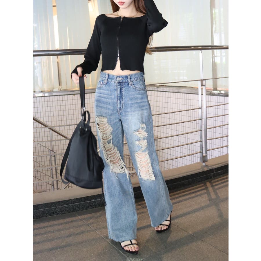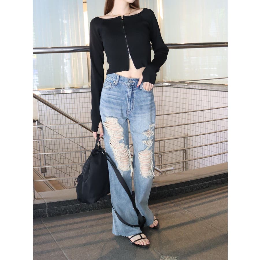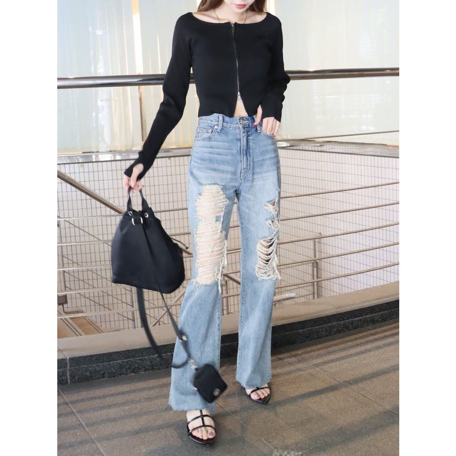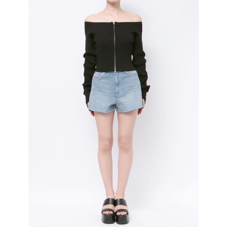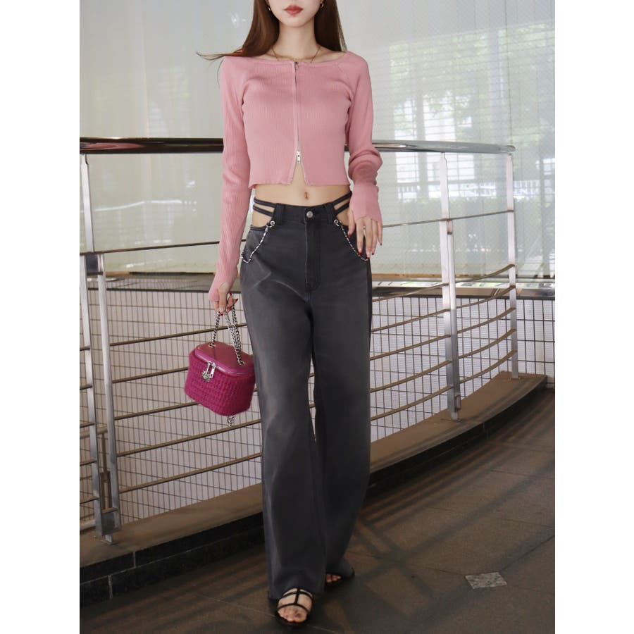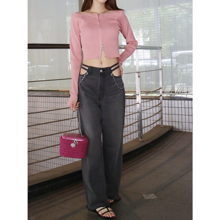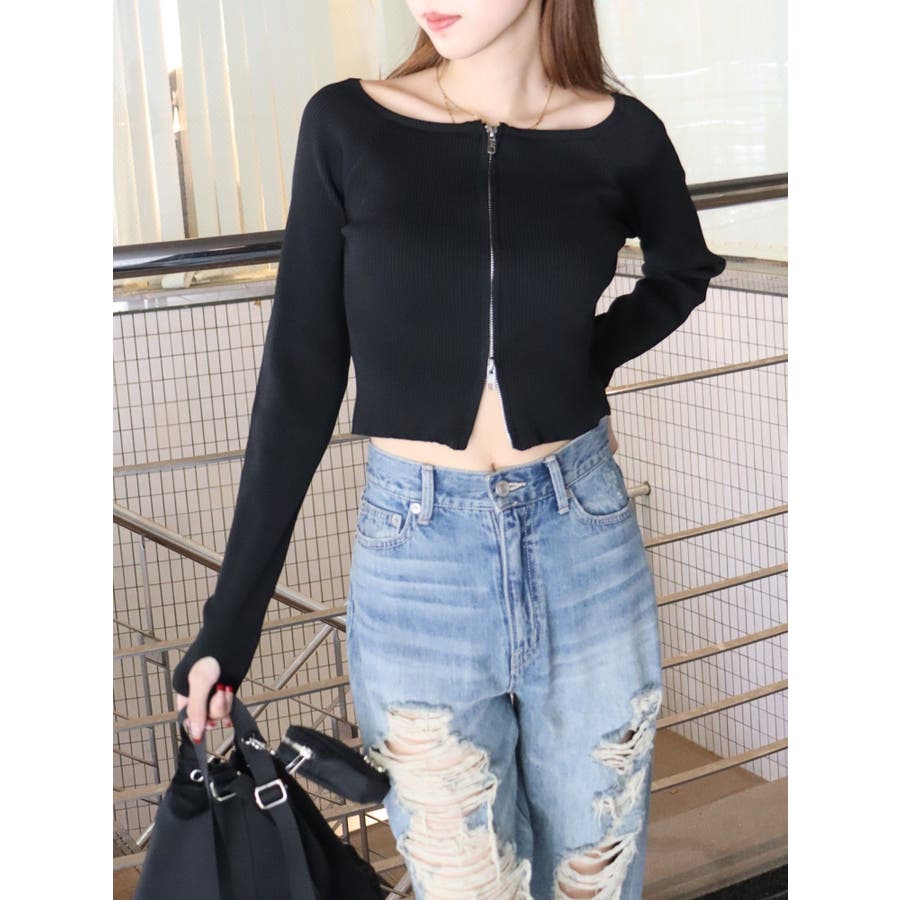 親指出せるのが可愛いしクロップド丈なのも可愛い!ハイウエストのボトムスと合わせると丈も短すぎないしスタイルアップする!