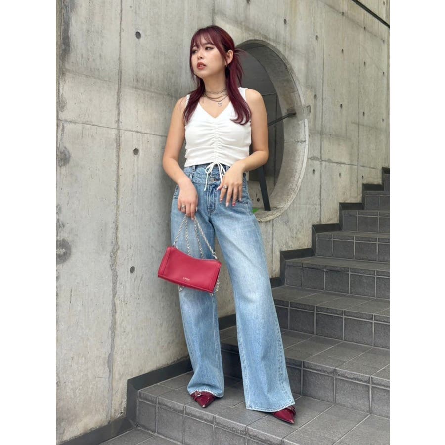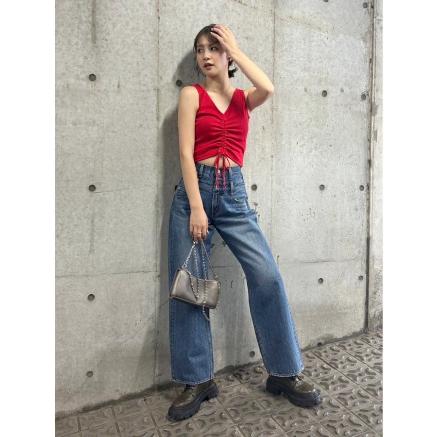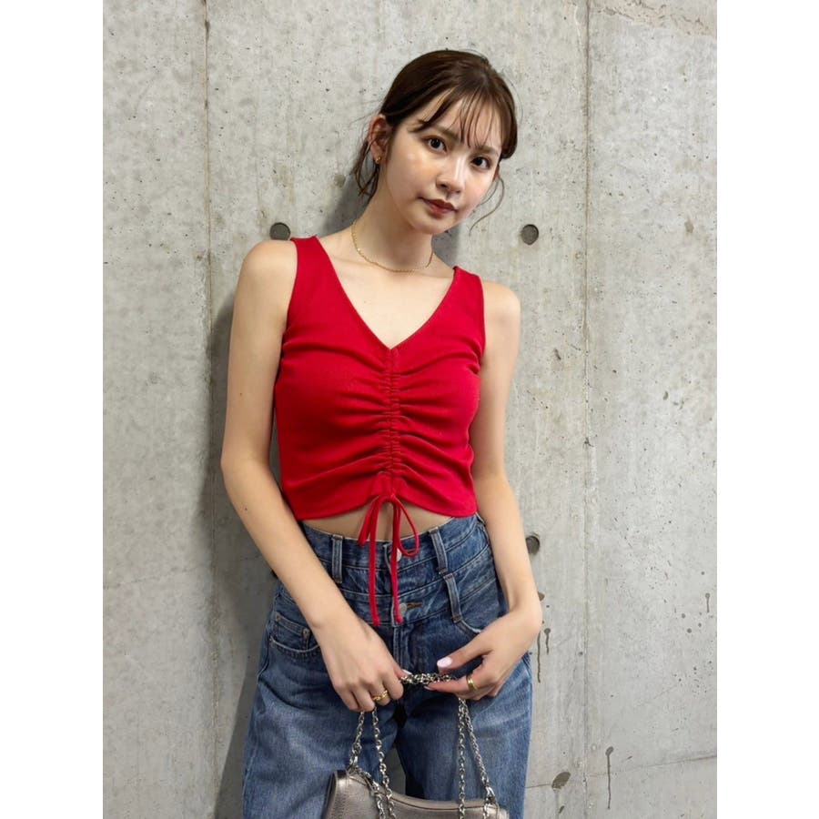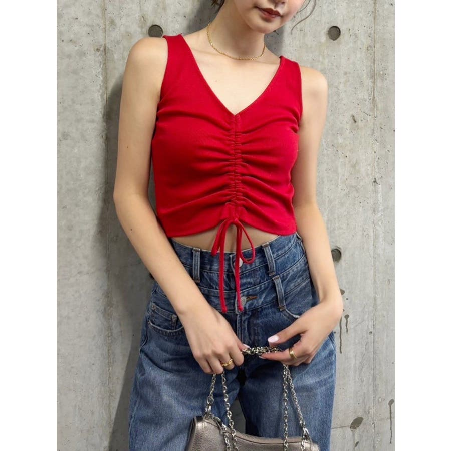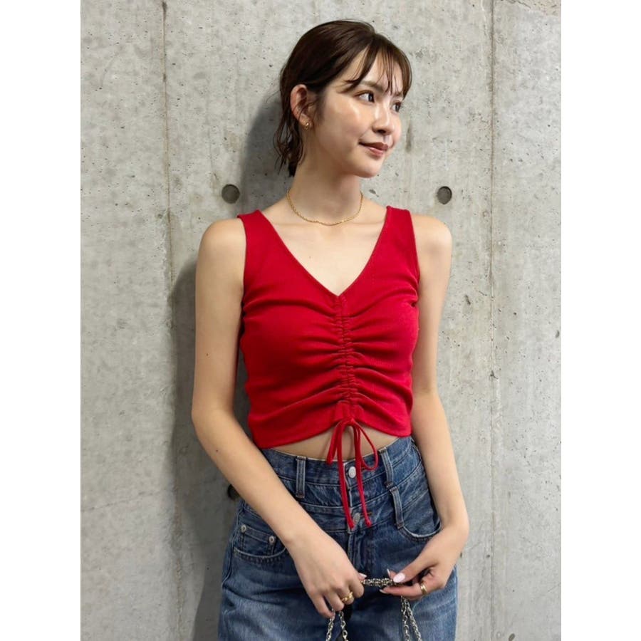 ■デザインくしゅっとギャザーがかわいらしい、シンプルなタンクトップです。ギャザーを寄せることでちらっと肌見せも。前後どちらでも着れる2WAY。レッドは夏コーデの差し色にもピッタリ。■スタイリングコンパクトなシルエットのトップスにはボリュームのあるボトム合わせがテッパン。フレアデニムなどとも相性◎-------------- 透け感:なし 裏地:なし 生地の厚み:普通伸縮性:あり--------------