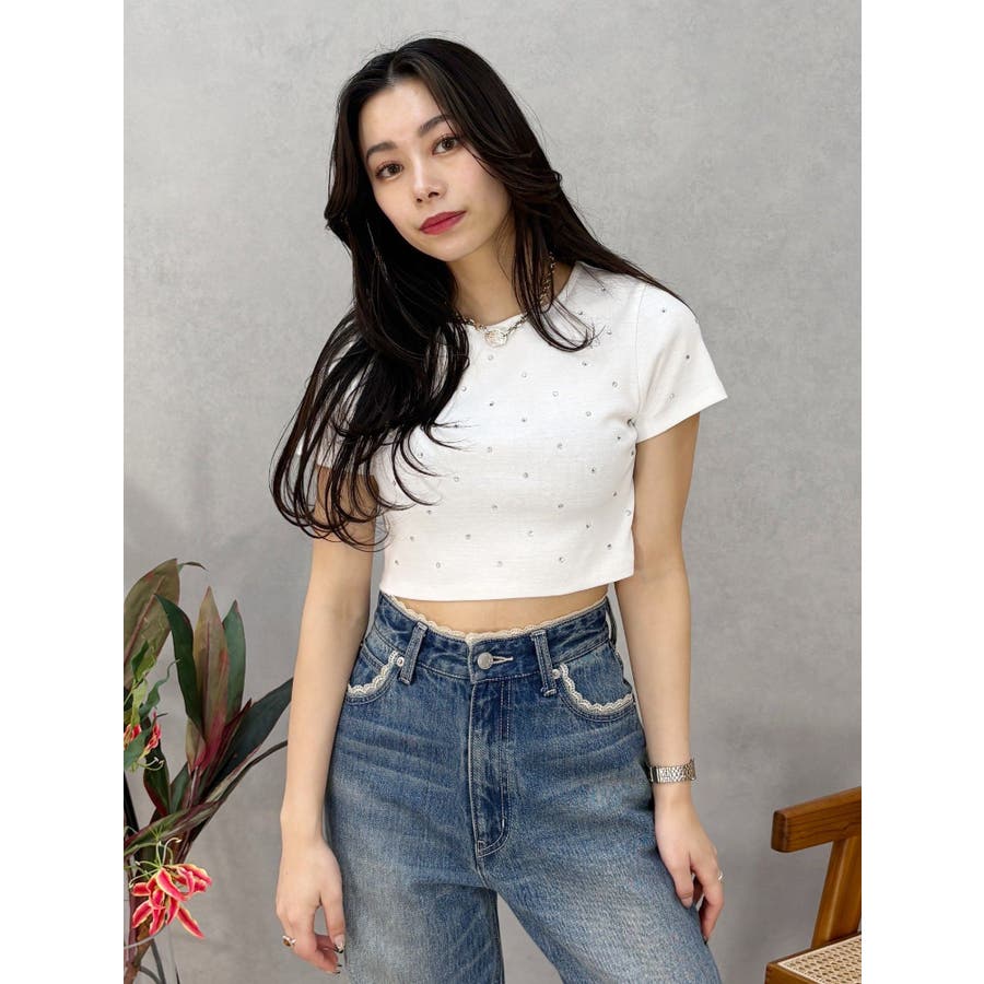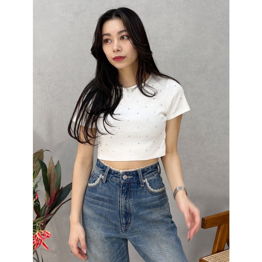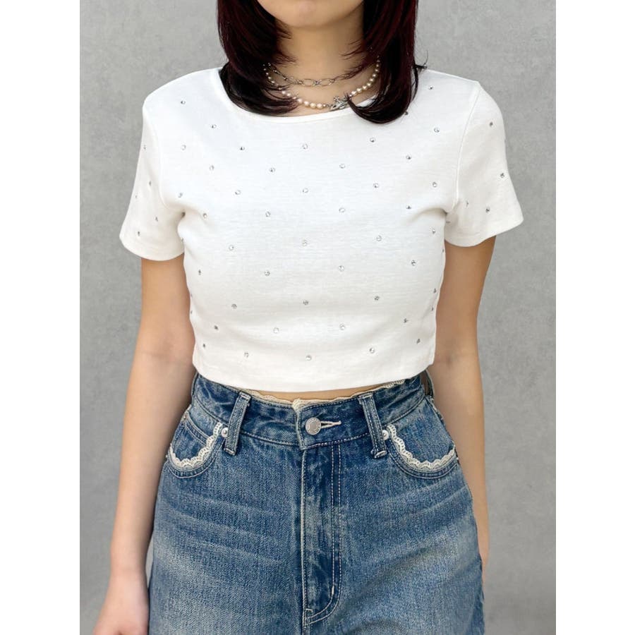ラインストーンコンパクトTシャツ