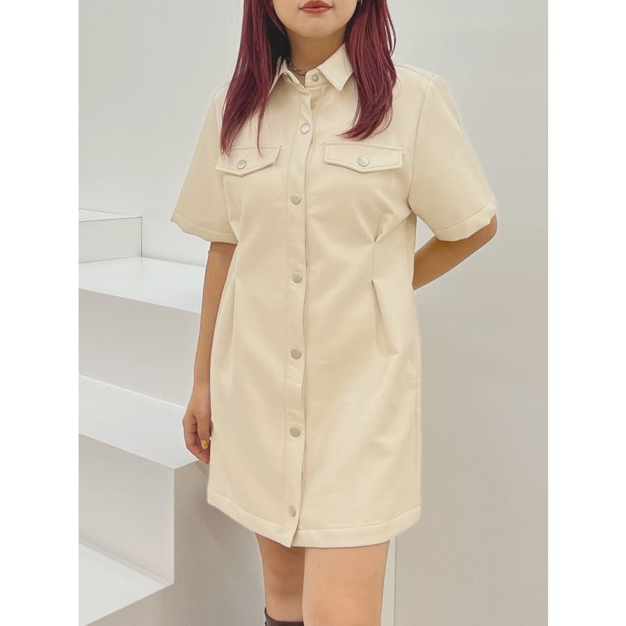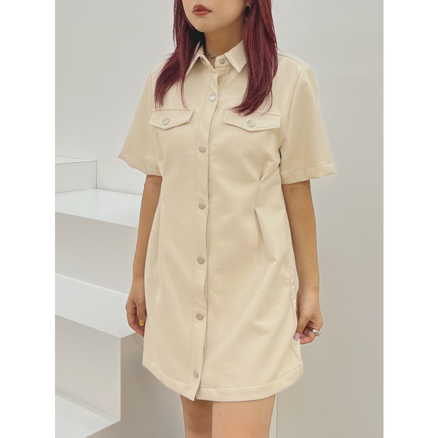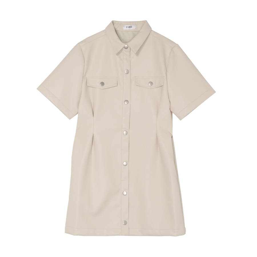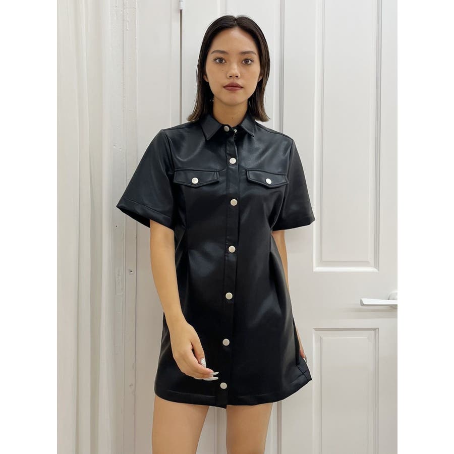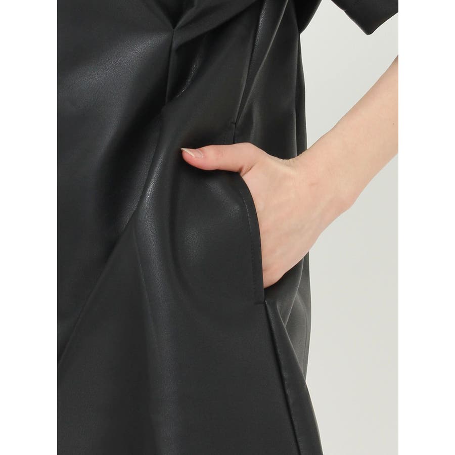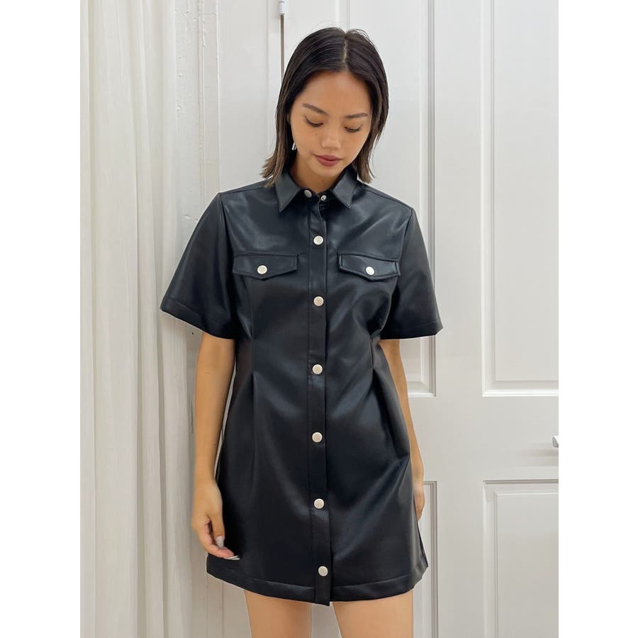 ■デザイン秋らしい雰囲気のフェイクレザーのミニワンピースです。ウエスト部分にタックを施し、スタイルUPが叶うシルエットに。柔らかなフェイクレザーを使用しており、ごわつかずノンストレスで着用していただけます。■スタイリング半袖のデザインのため1枚での着用はもちろん、長袖のインナーとのレイヤードで着用していただくスタイルもおすすめです。足元は重ためブーツで辛く仕上げるのがEVRIS(エヴリス)テッパン。ソックスにローファー合わせなども今年らしくておすすめです。-------------- 透け感:なし 裏地:あり生地の厚み:普通伸縮性:なし --------------