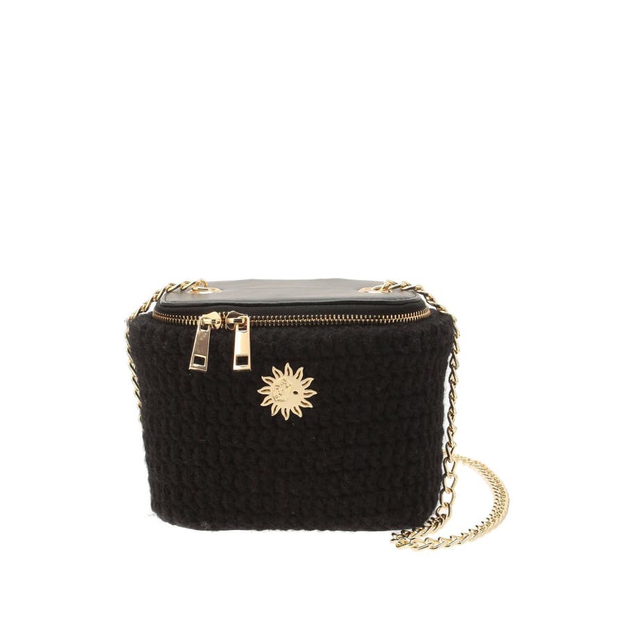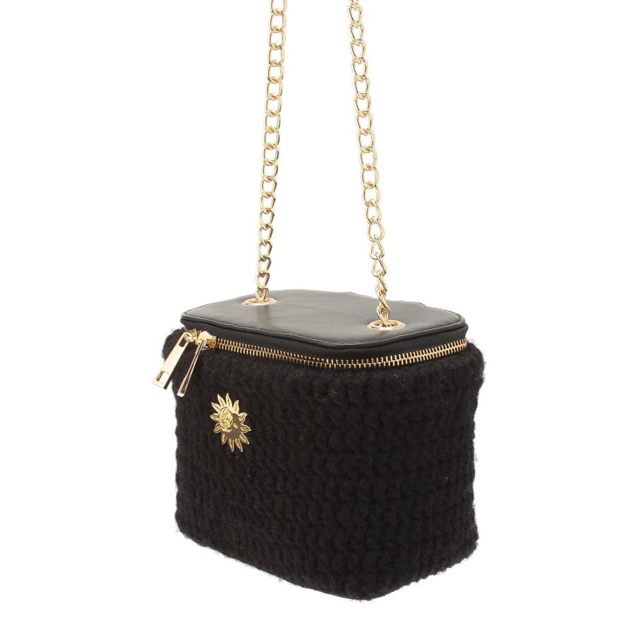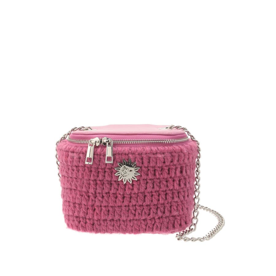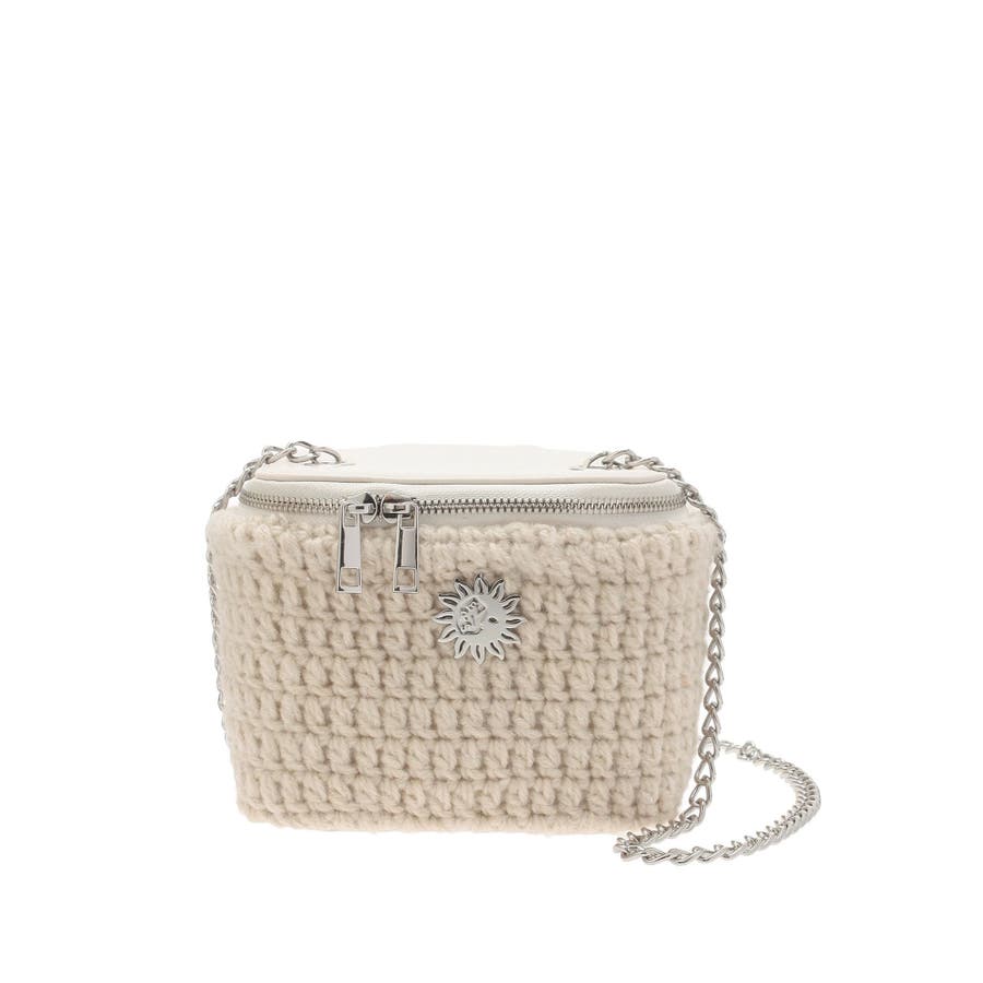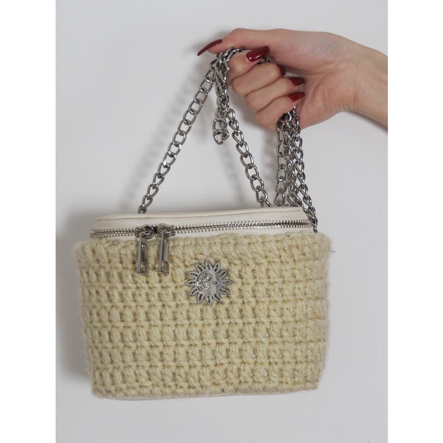 ニットを編み込んだ、ハンドメイドのバニティーBAGです。EVRIS(エヴリス)で人気のバニティーBAGをニット素材にし、季節感を感じるショルダーBAGです。ふた部分と底はフェイクレザーになっていて、ほっこりしすぎずデイリーに使いやすい異素材デザイン。ころんとした形が可愛い◎いつものコーディネートにいれるだけで季節感とアクセントがプラスされて新鮮に◎カラーは3色。どんなコーディネートにも取り入れやすいBASICなホワイト・ブラックと華やかな印象のピンクの3カラー。