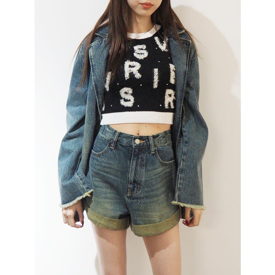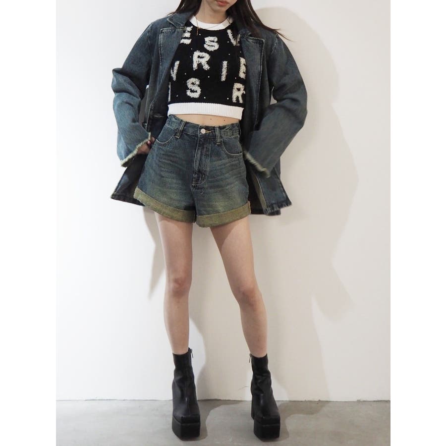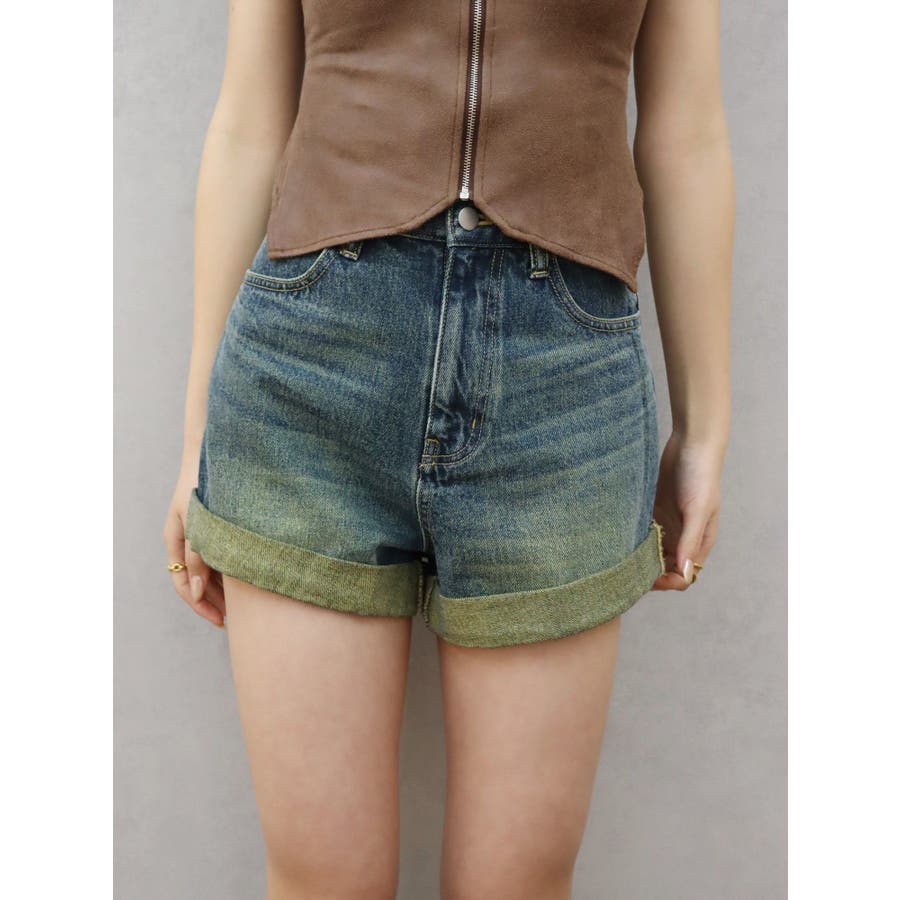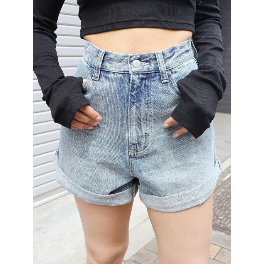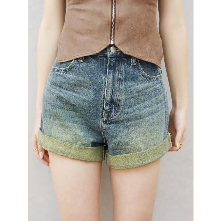 ロールアップデニムショートパンツ【セットアップ着用可能】