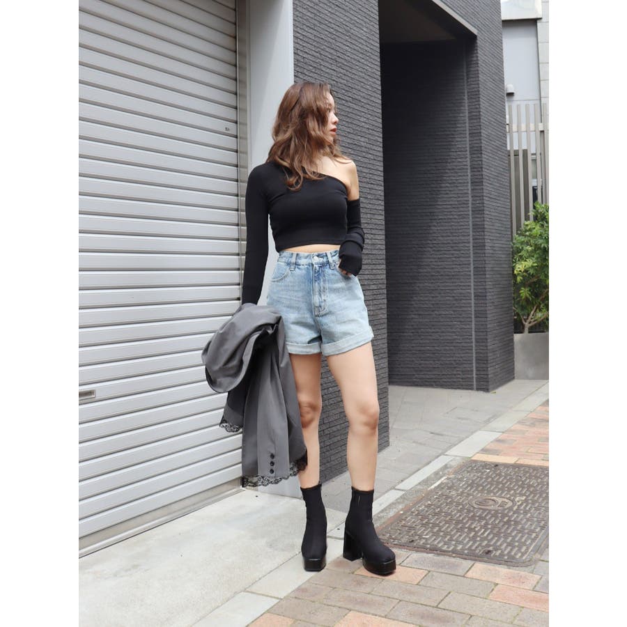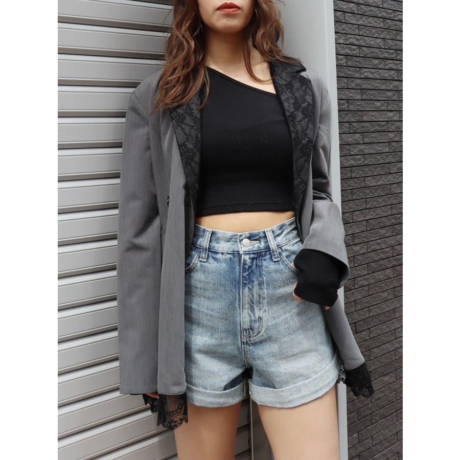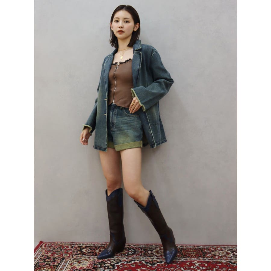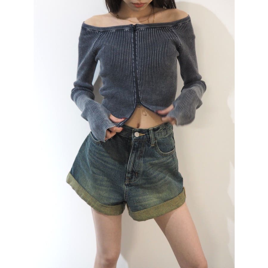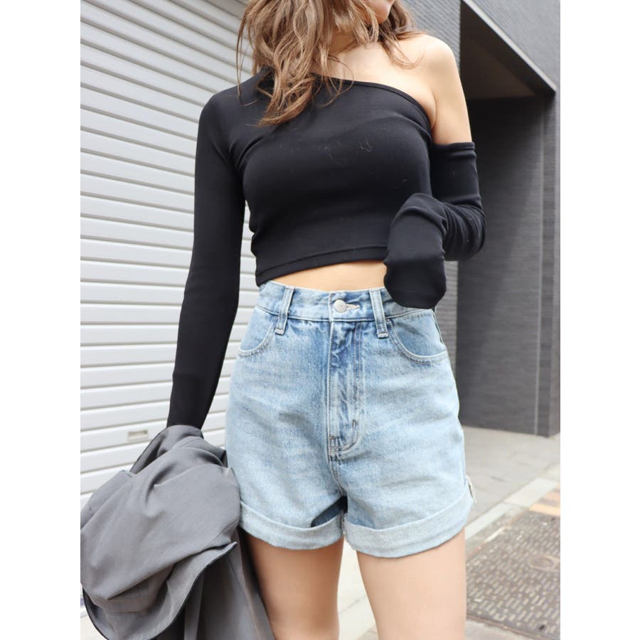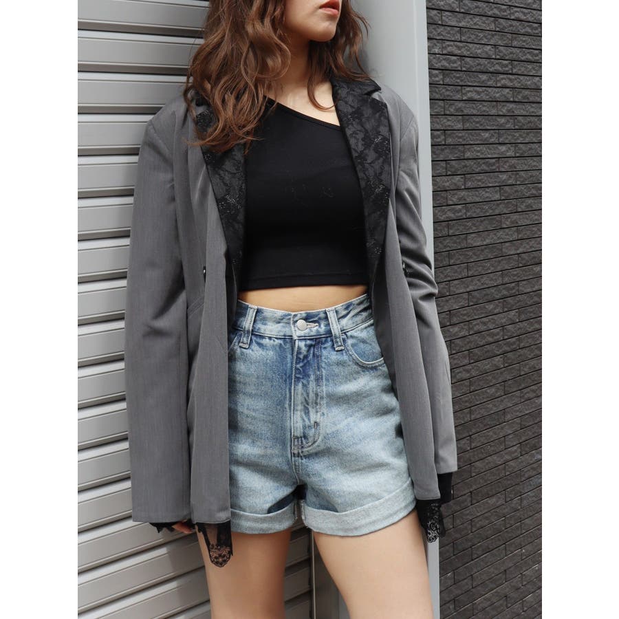 ロールアップデニムショートパンツ【セットアップ着用可能】