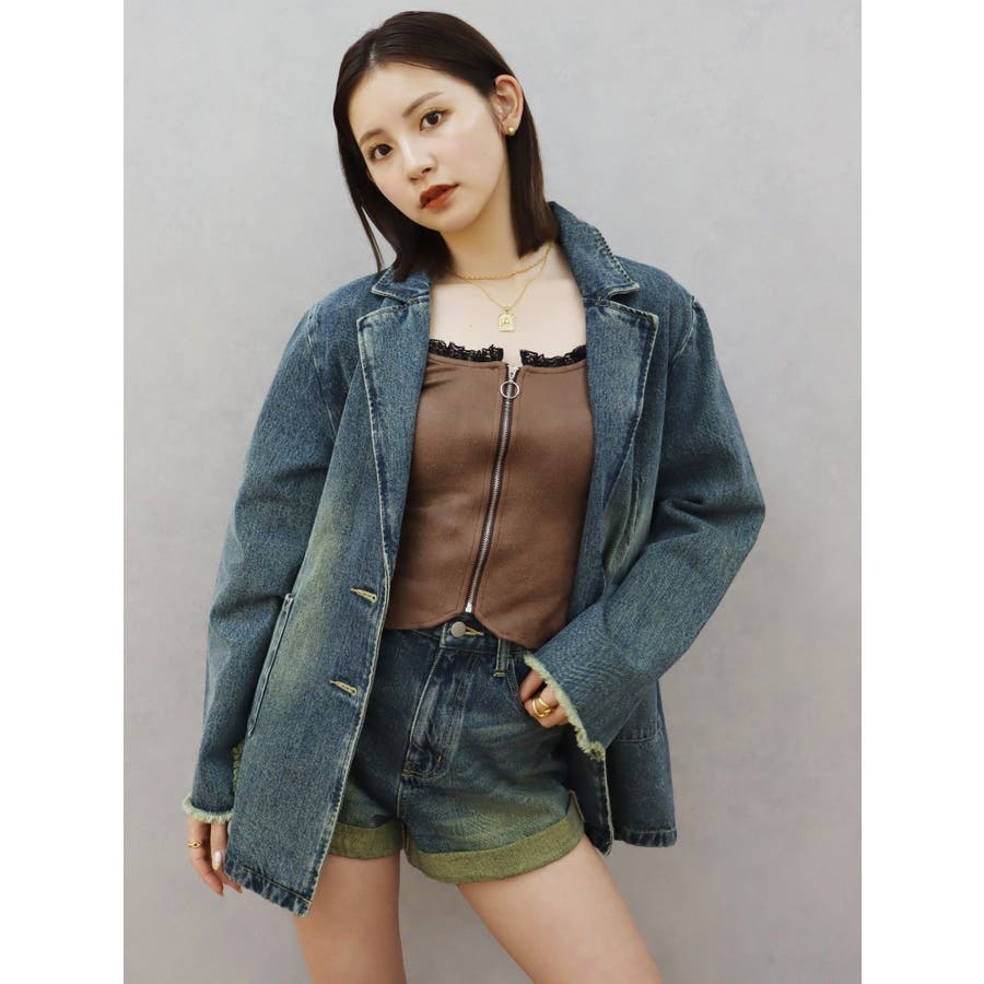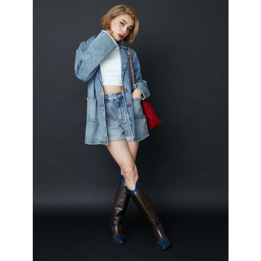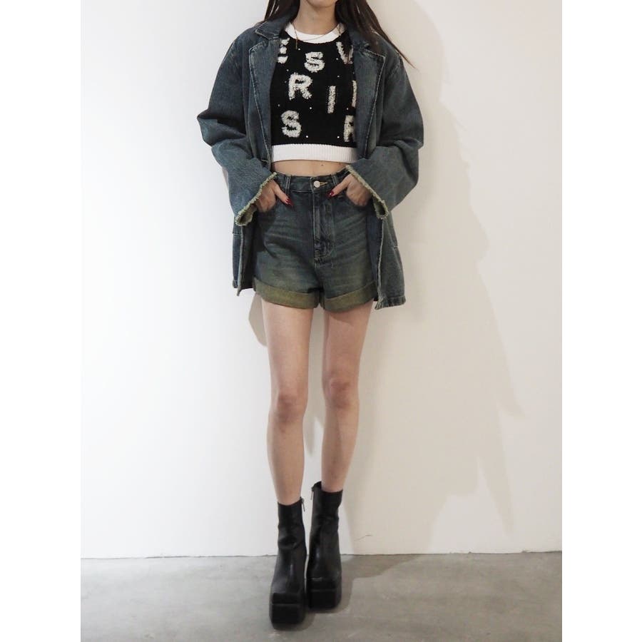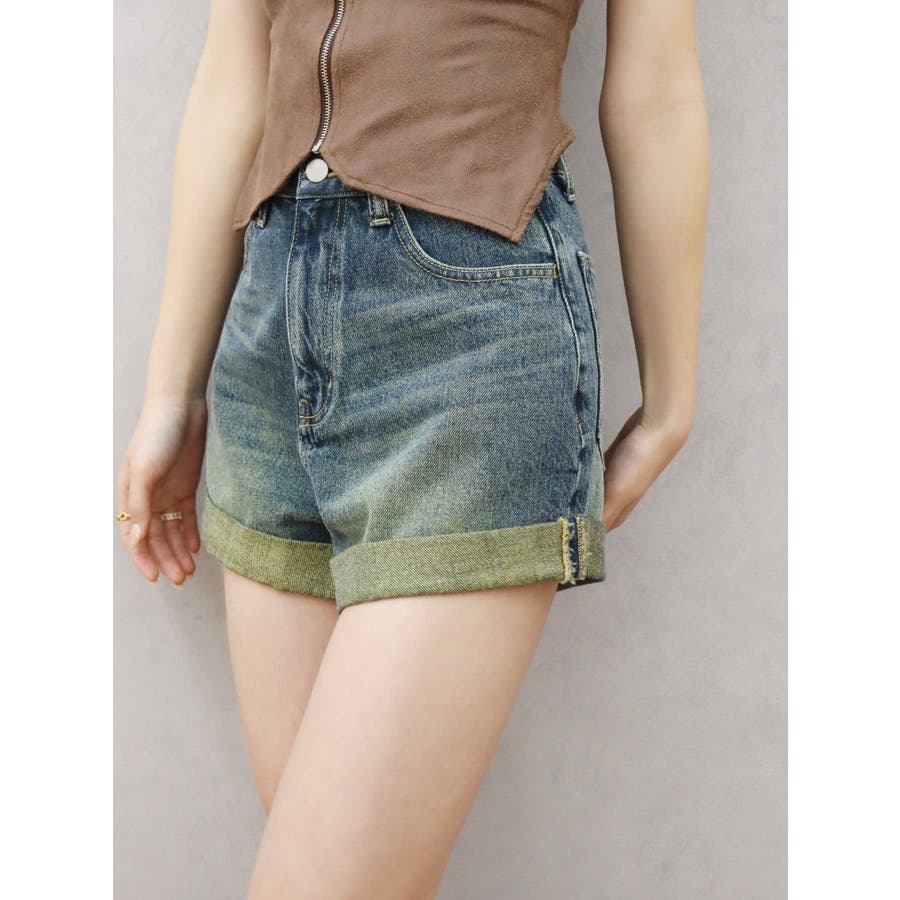 【デニムショートパンツ】【セットアップ】【ヴィンテージ風】【オーバーサイズ】【秋服】■商品ポイント・オーバーダイ加工のヴィンテージ風が可愛い・ロールアップデザイン&斜めカットでスタイルUP◎・美脚効果抜群!■商品デザインオーバーダイ加工が、トレンド感のあるデニムショートパンツです。内ももから外側に向かって斜め上にカットされており、脚長効果・美脚効果のあるシルエットです。丈も短すぎないので、幅広い方に着用して頂きやすいITEM♪
