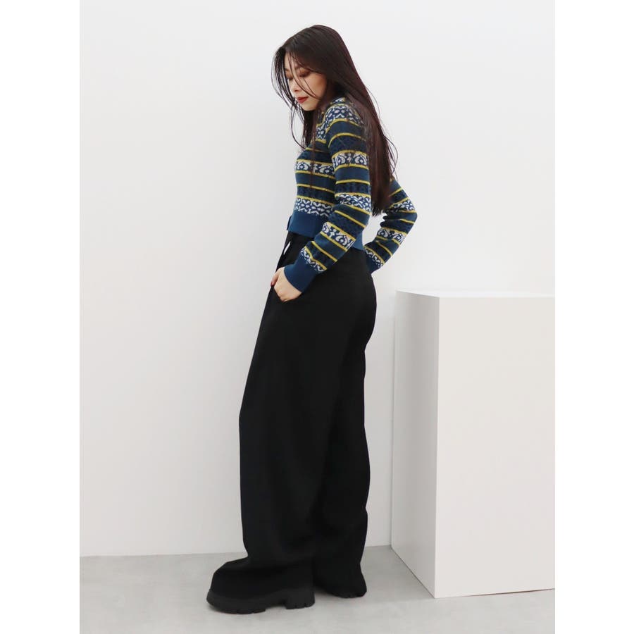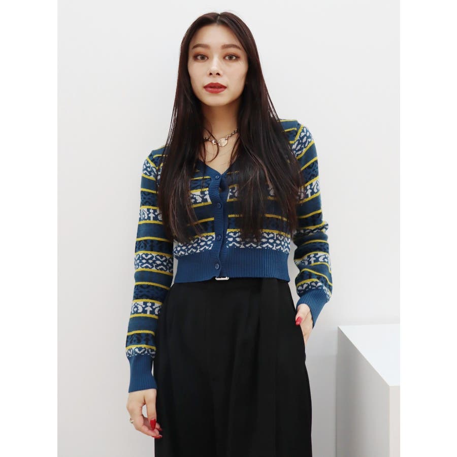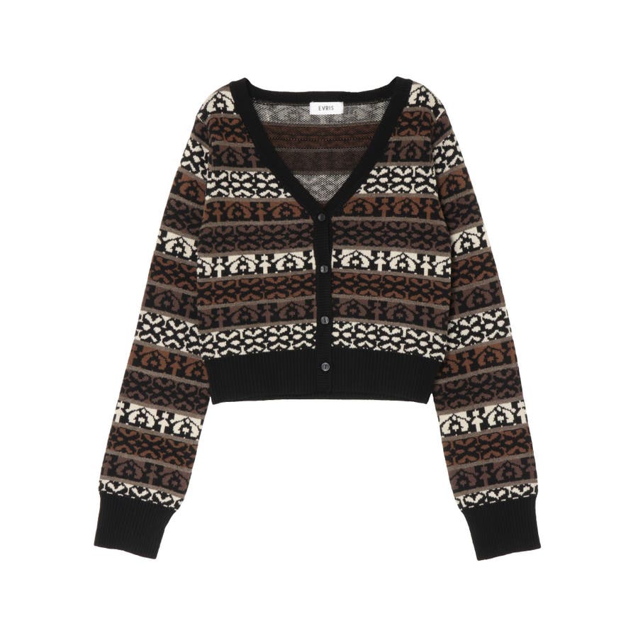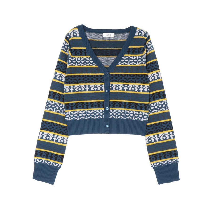 オリジナルで作成したジャガード柄がポイントのショートニットトップスです。ジャガードの柄には、今季ポイントのキーディテールとしてハートに見えるような柄があります。配色がEVRIS(エヴリス)らしい配色で、他にないカラー合わせがポイントです。