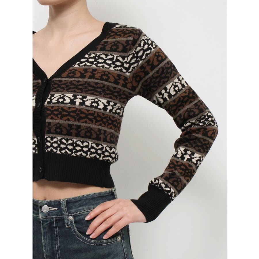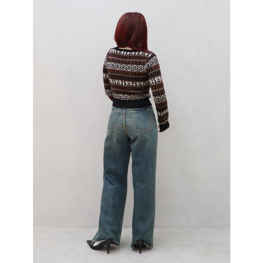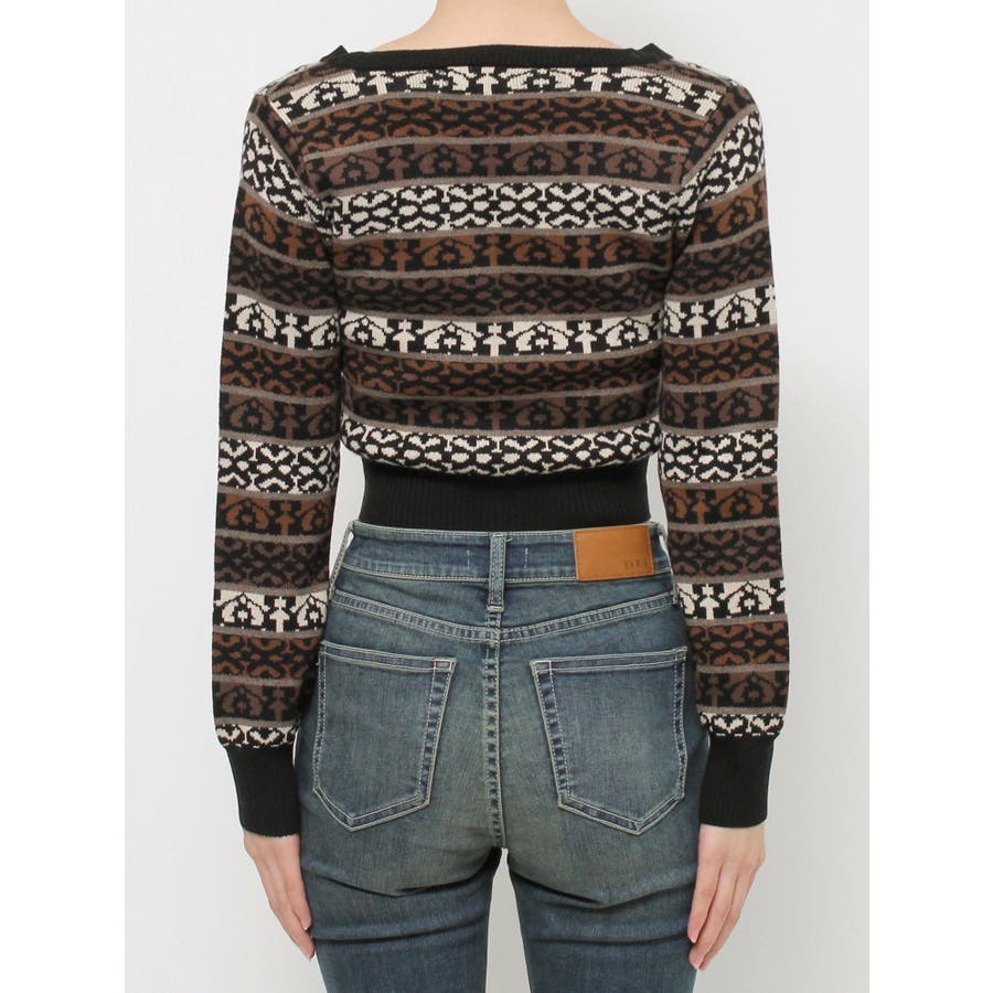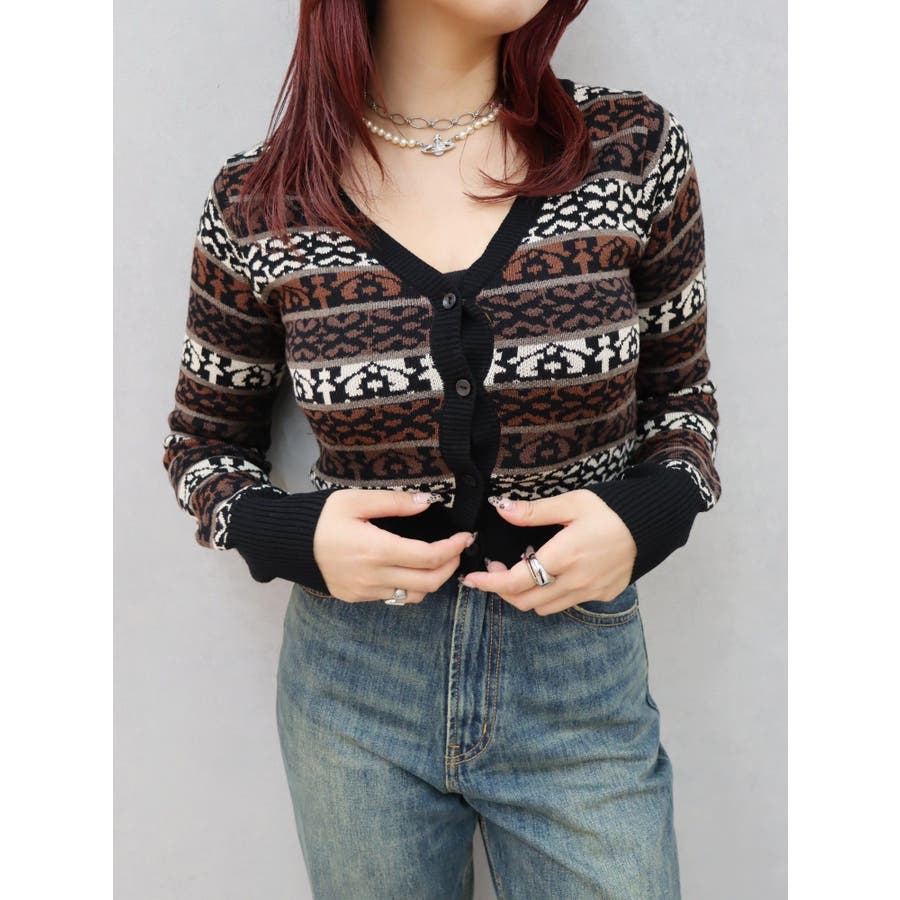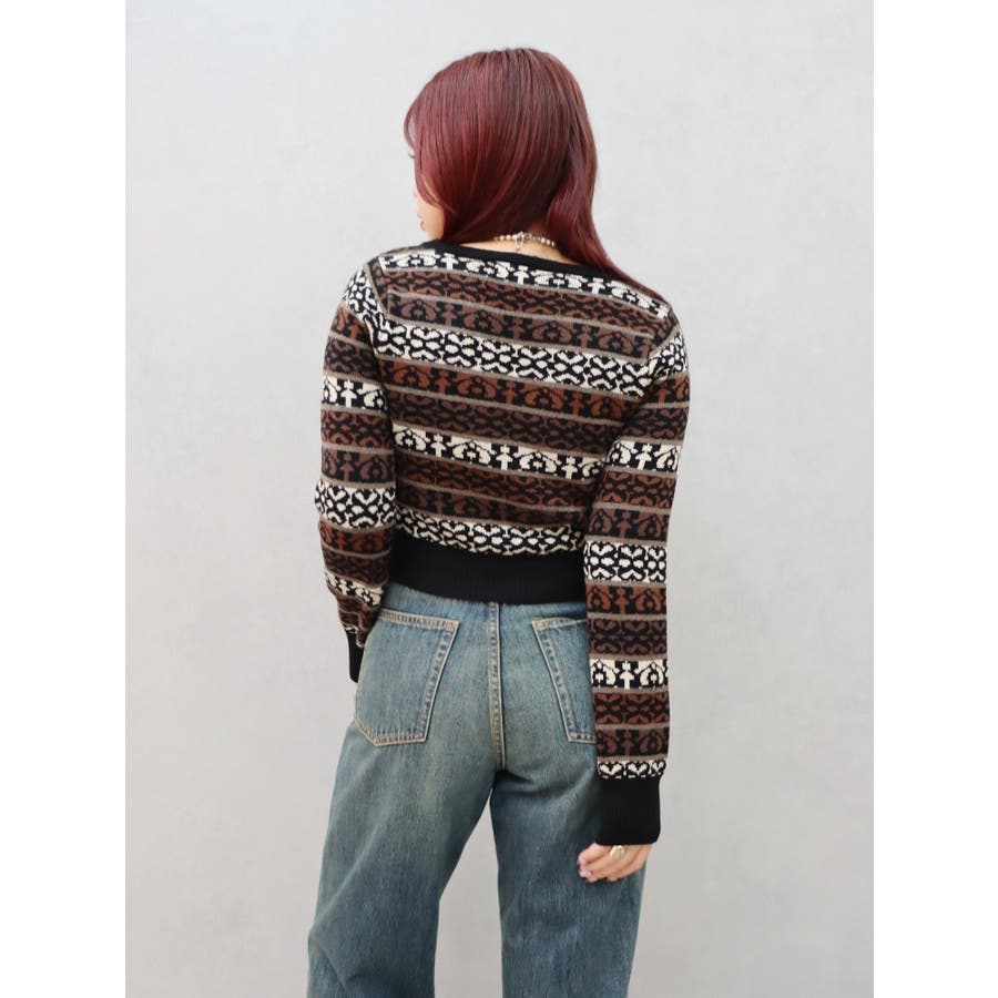 オリジナルで作成したジャガード柄がポイントのショートニットトップスです。ジャガードの柄には、今季ポイントのキーディテールとしてハートに見えるような柄があります。配色がEVRIS(エヴリス)らしい配色で、他にないカラー合わせがポイントです。