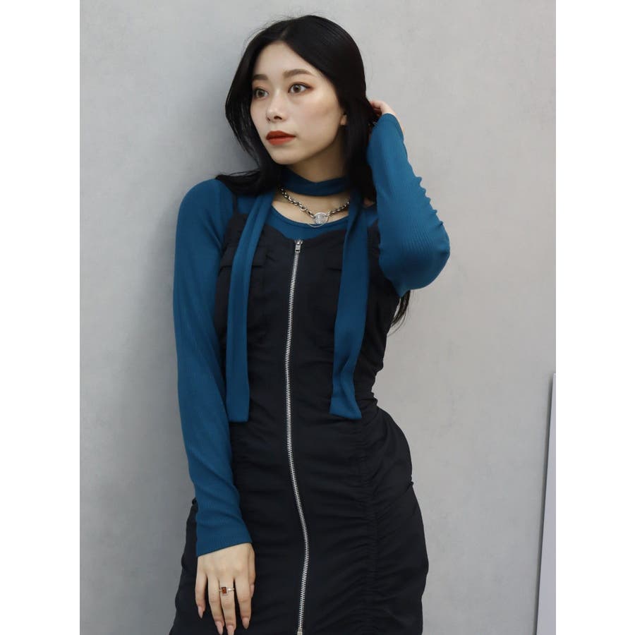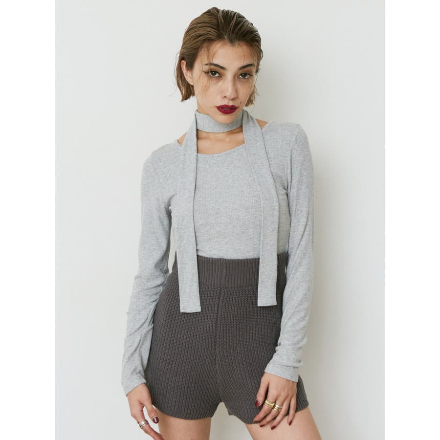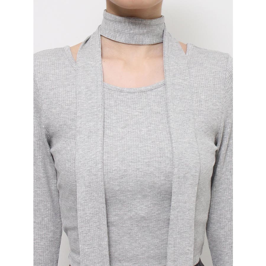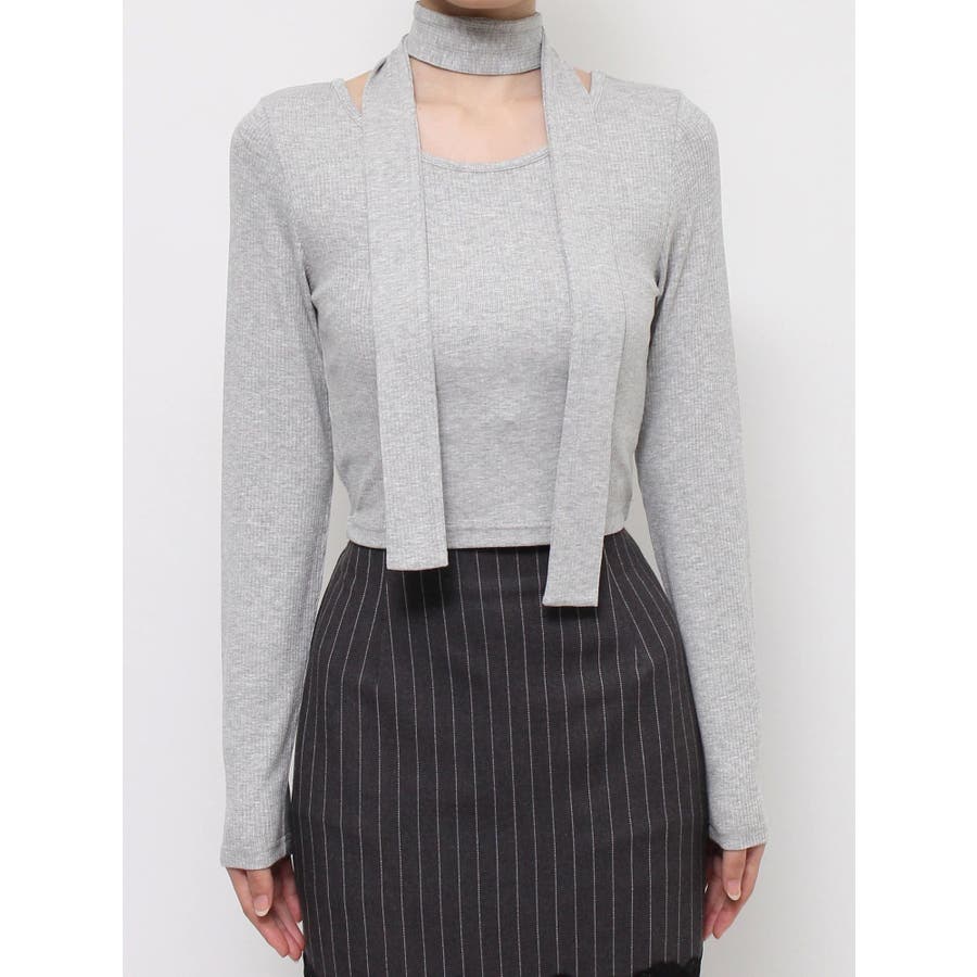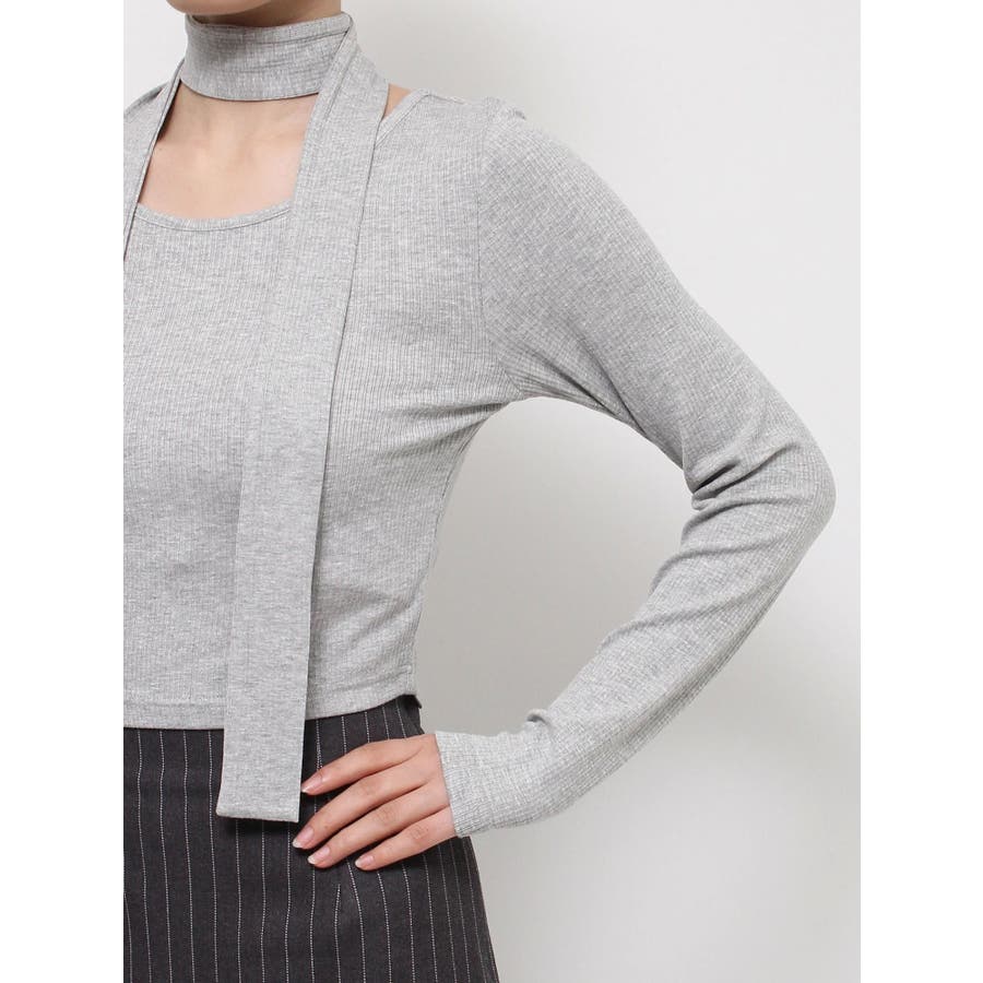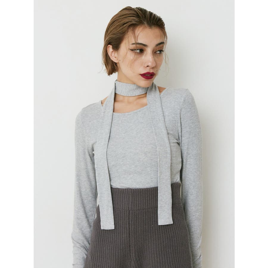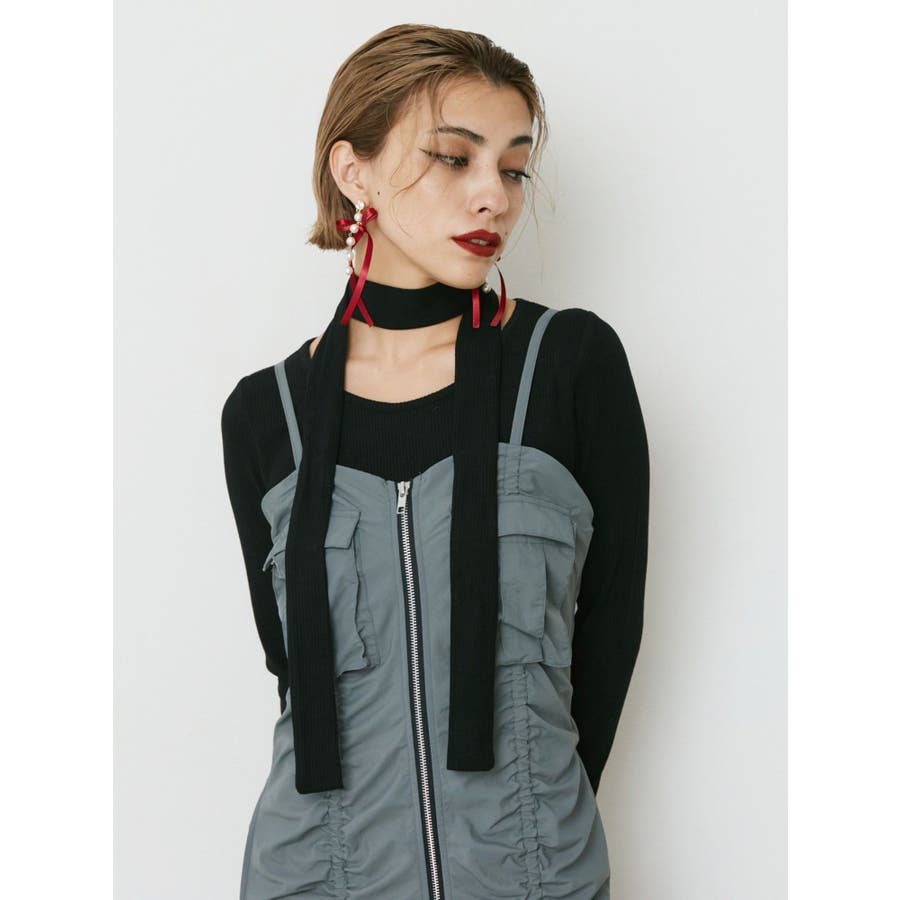 チョーカーリボン付リブトップス
