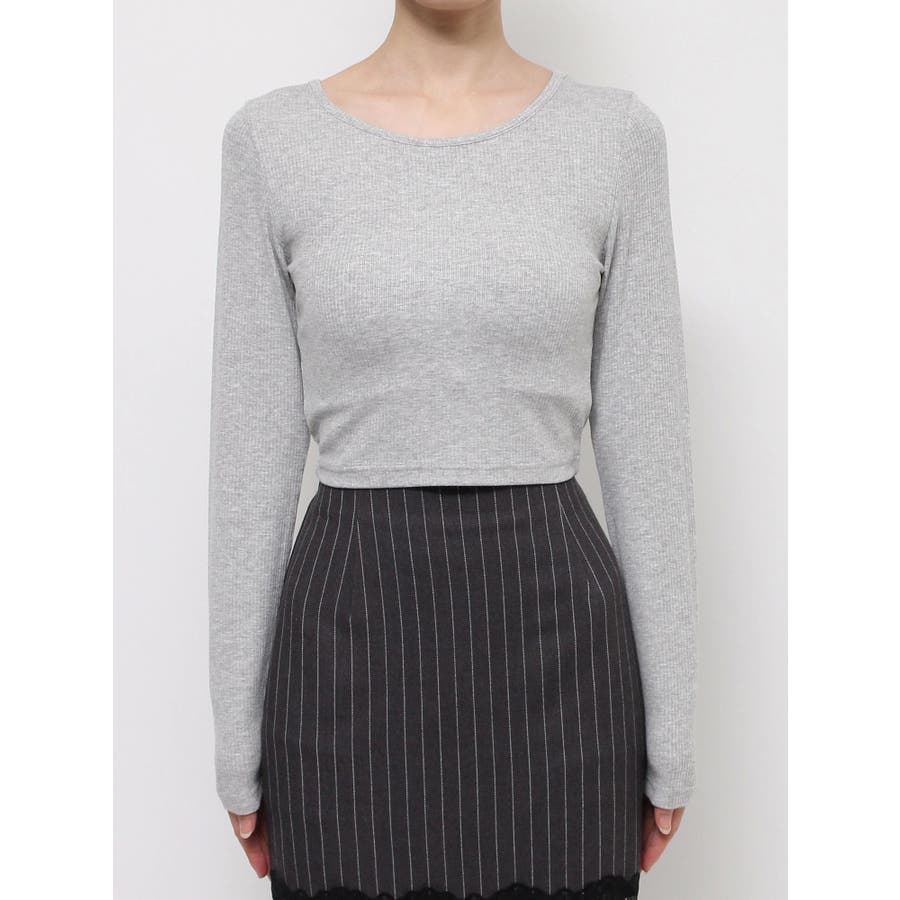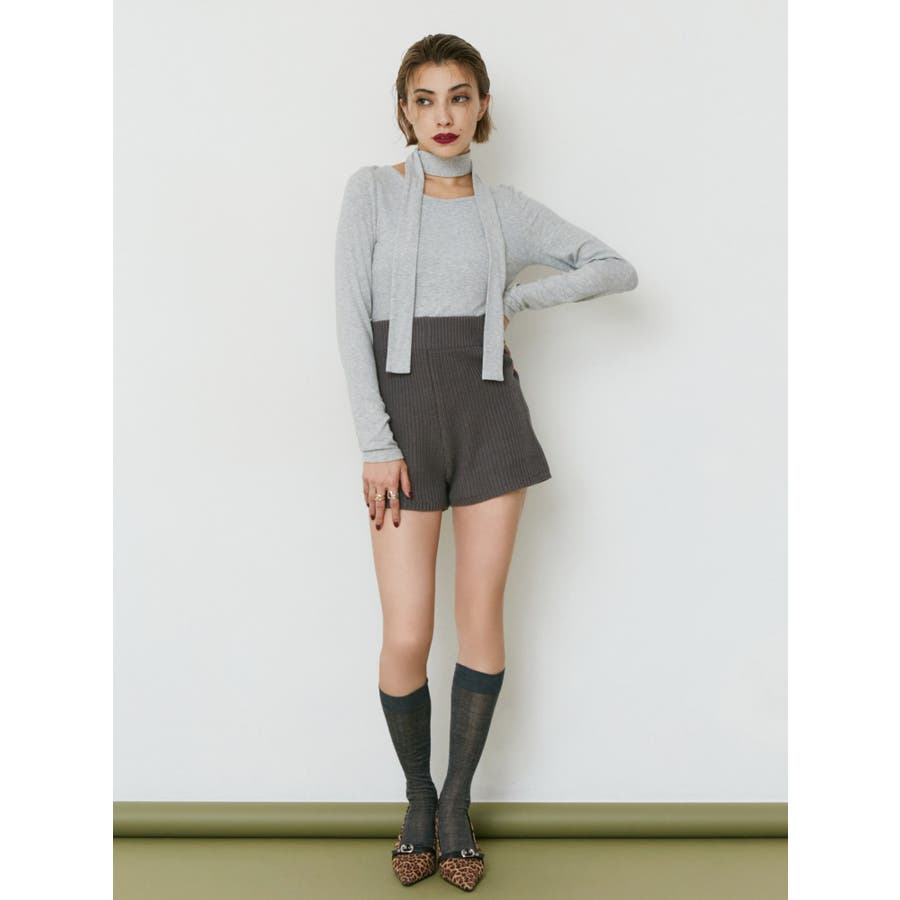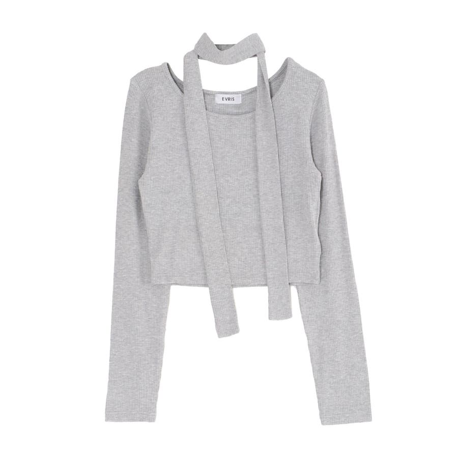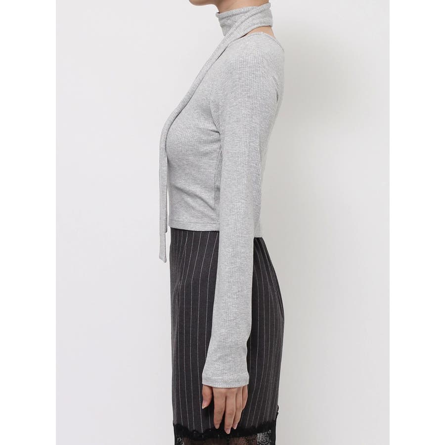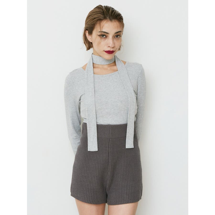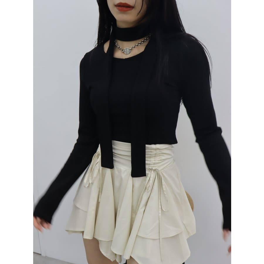 チョーカーリボン付リブトップス