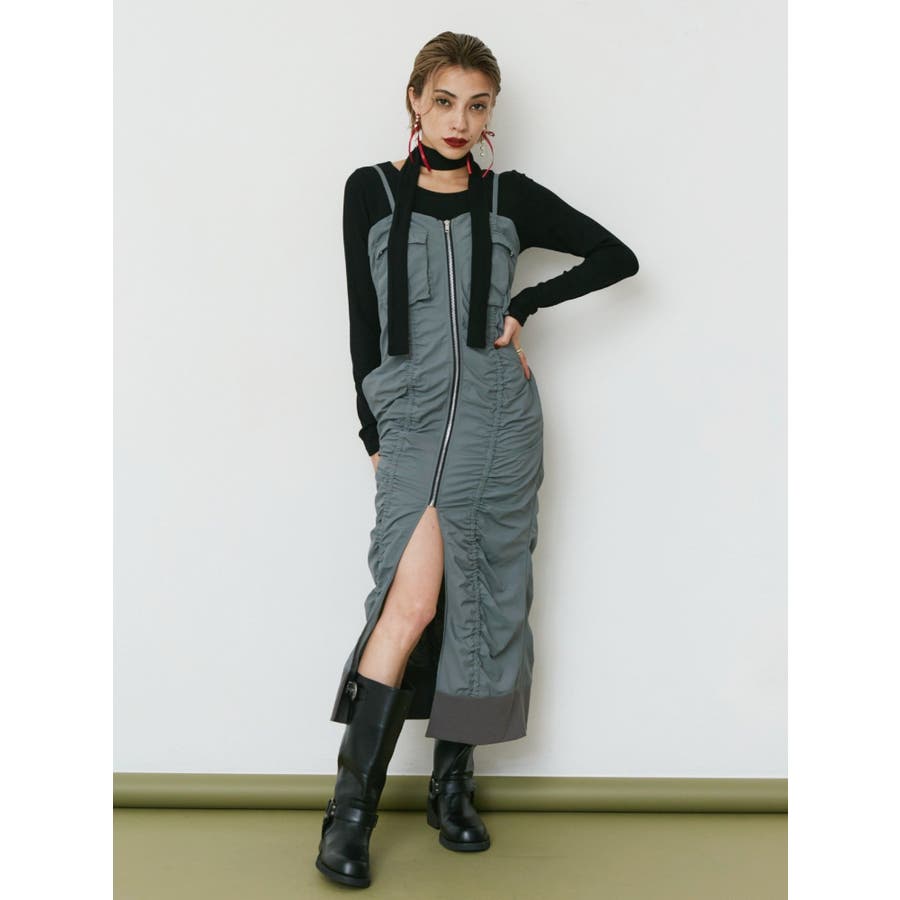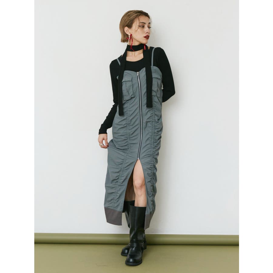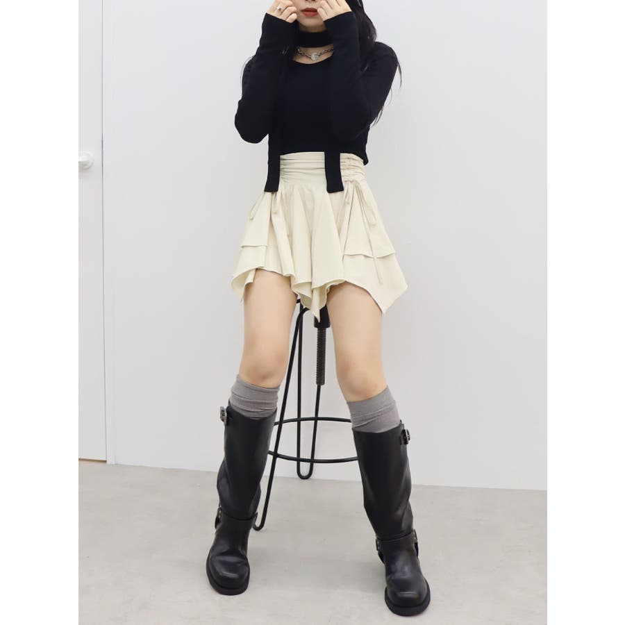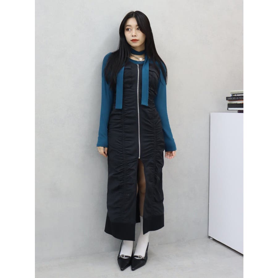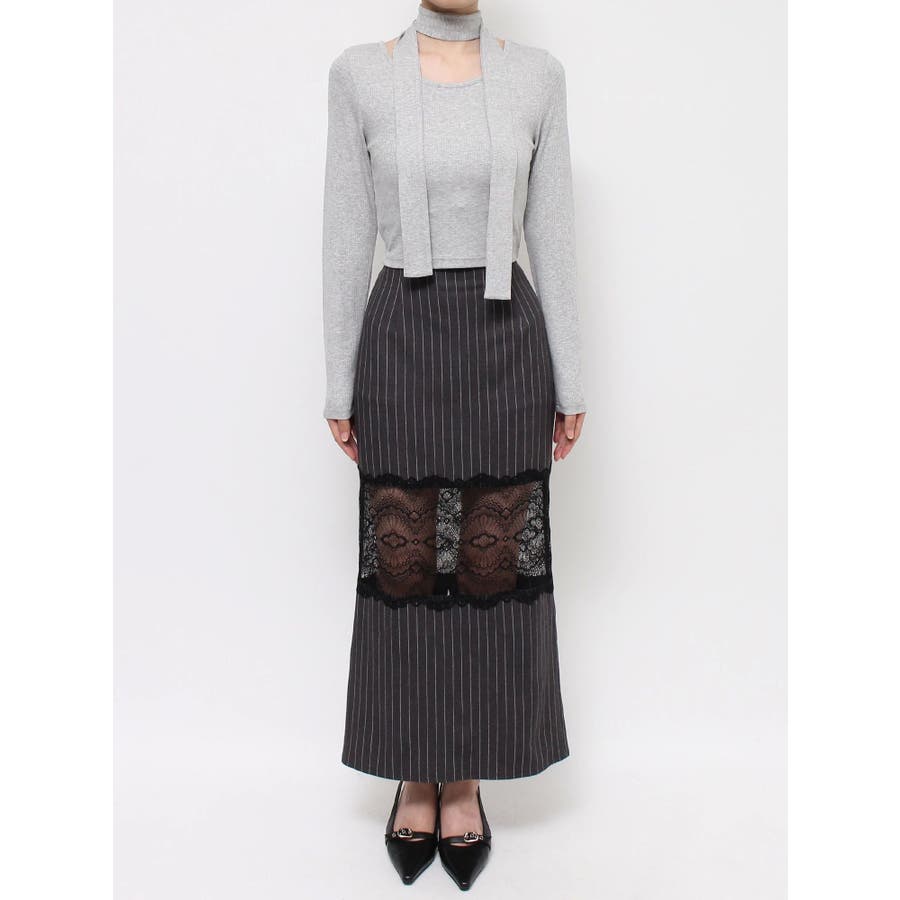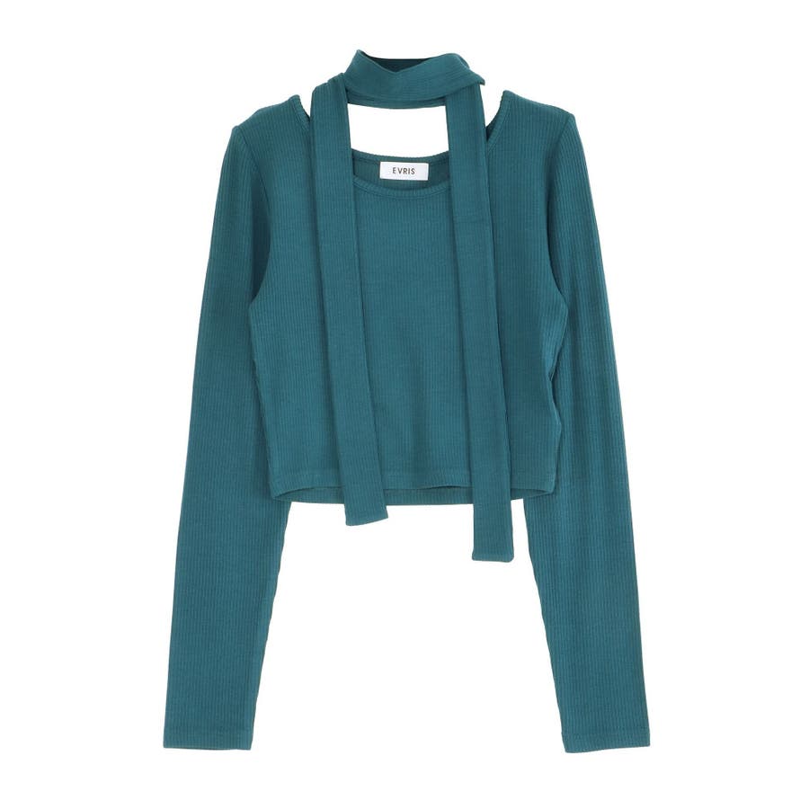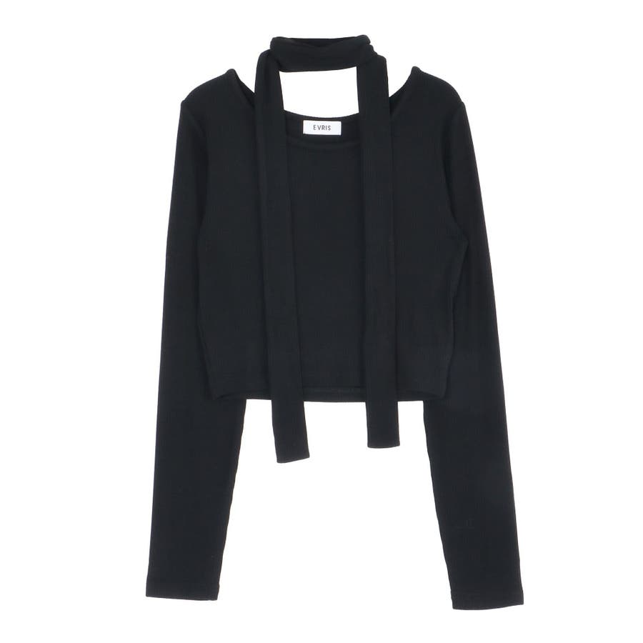チョーカーリボン付リブトップス
