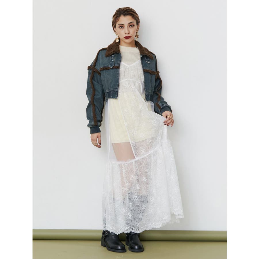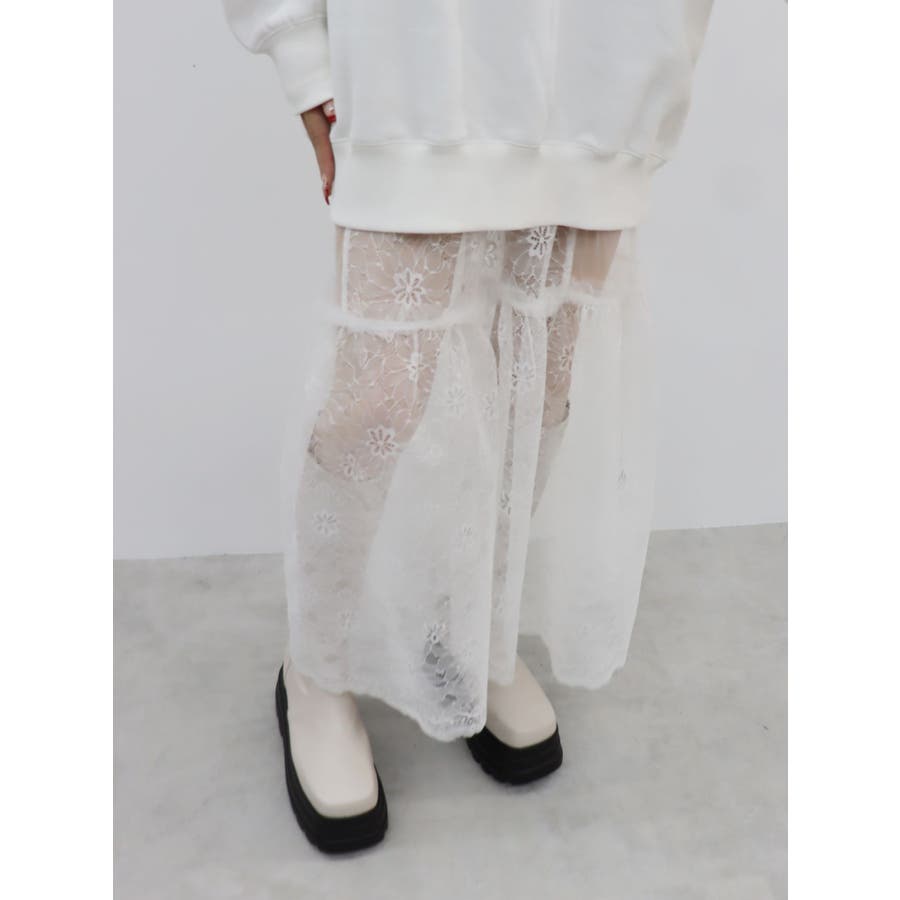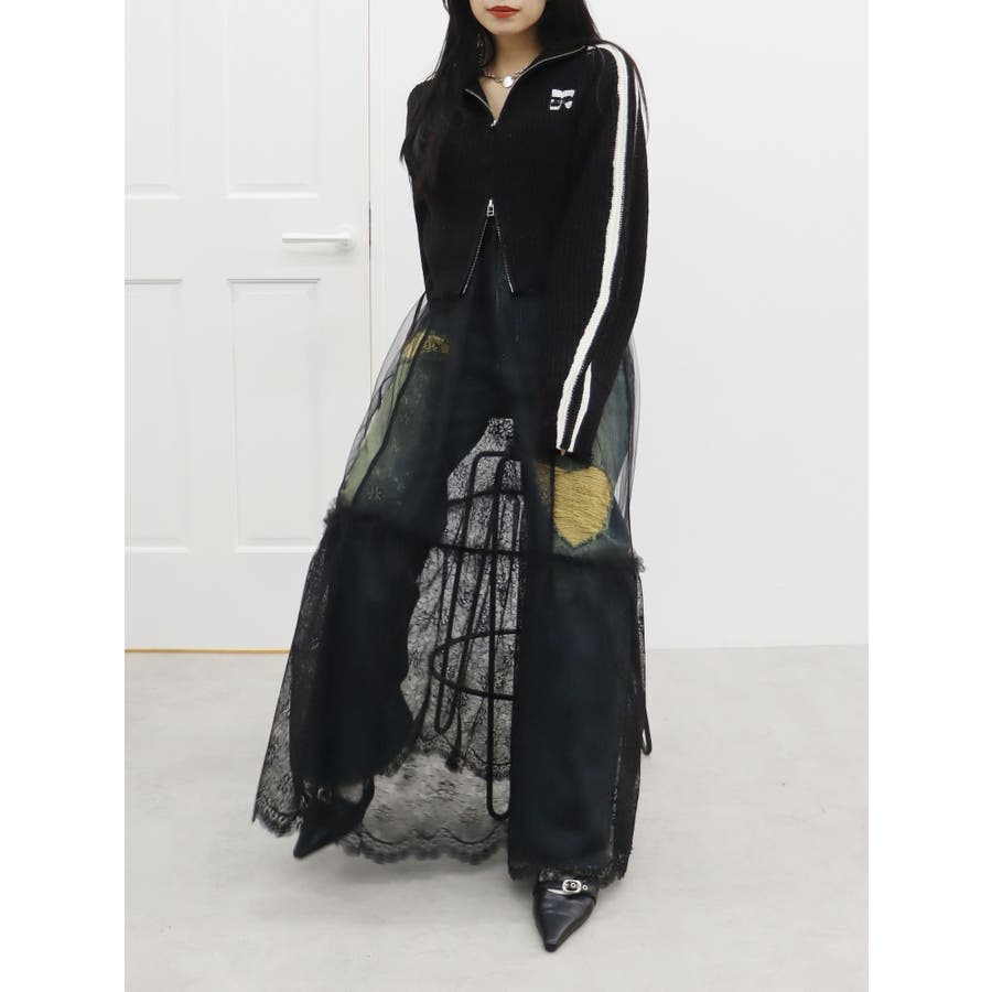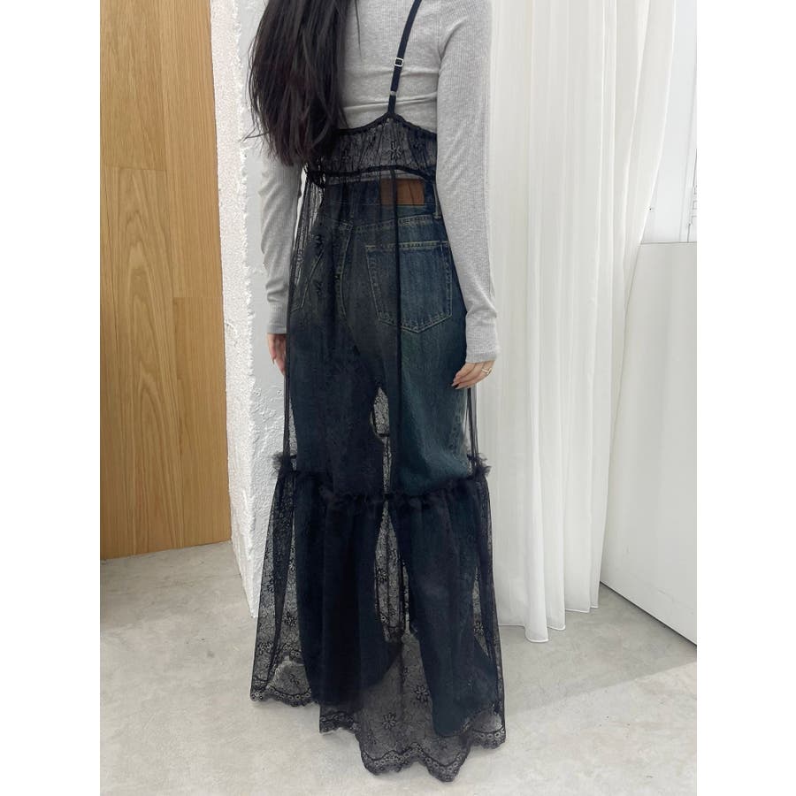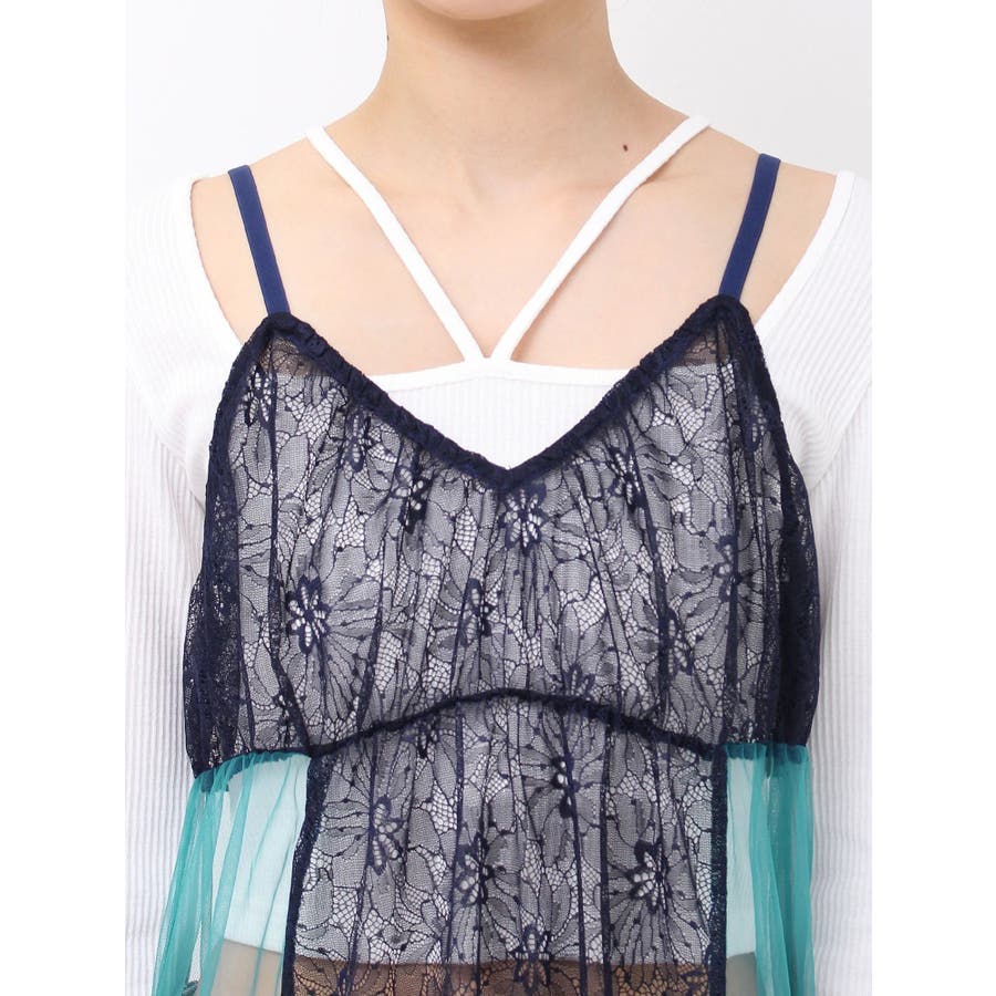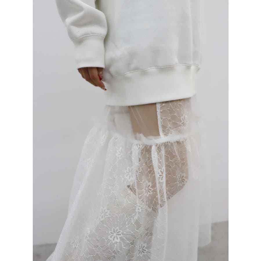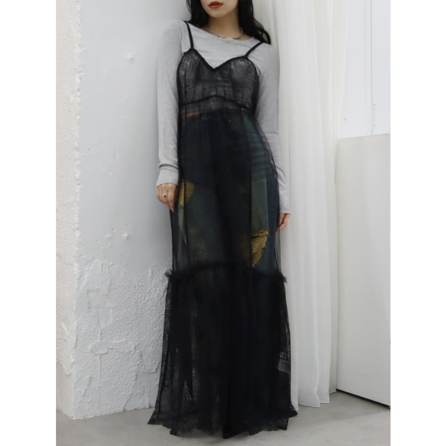 ■デザイン繊細なレースとチュール素材をコンビにしたレイヤード用のワンピースです。シアーの素材感が今年らしいムードを醸し出します。どんなコーデにも合わせやすいブラック・ホワイトに、EVRIS(エヴリス)らしさが詰まった配色のネイビーでご用意しました。いつものスタイリングにプラスするだけで今年らしい印象に仕上げてくれる優秀アイテムです。■スタイリングいつものスウェットとデニムパンツのスタイリングに加えるだけで新鮮なスタイリングに。ショートパンツ×ロングブーツの上からふわっと羽織るのも◎-------------- 透け感:あり裏地:なし 生地の厚み:薄手伸縮性:なし --------------