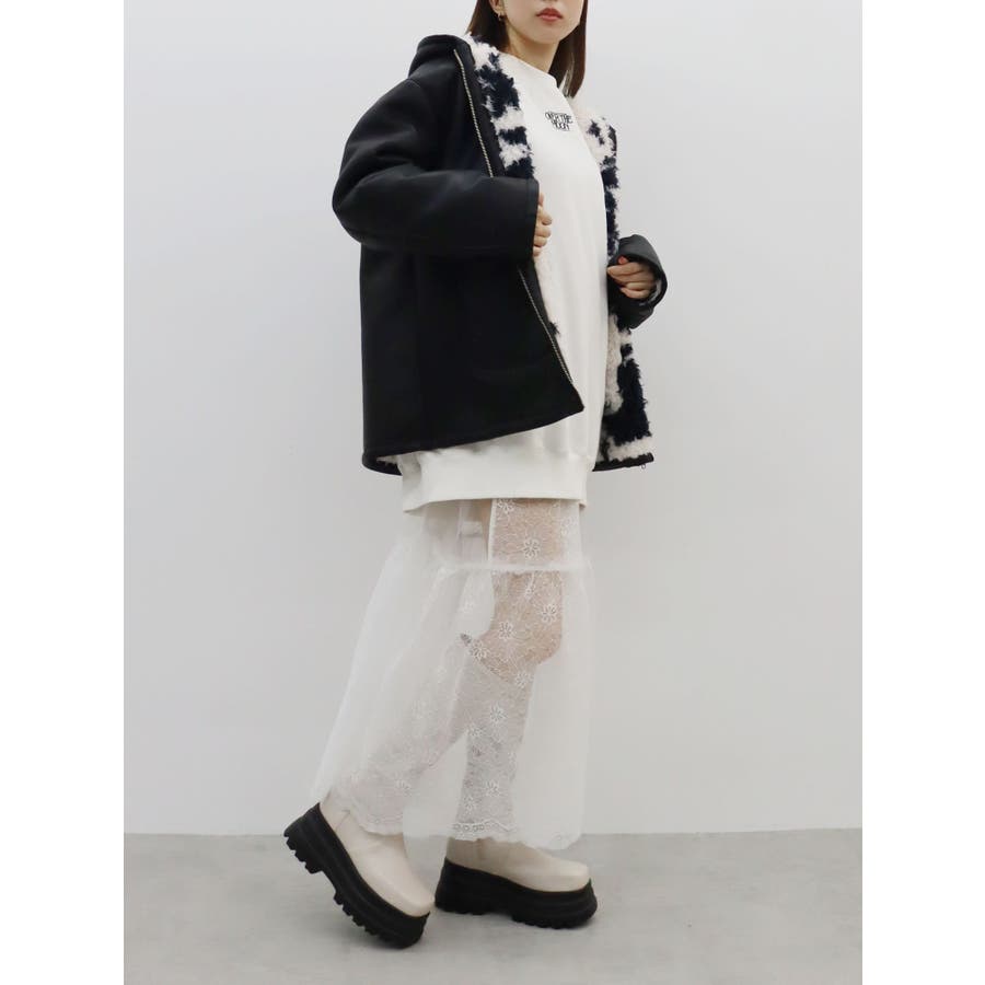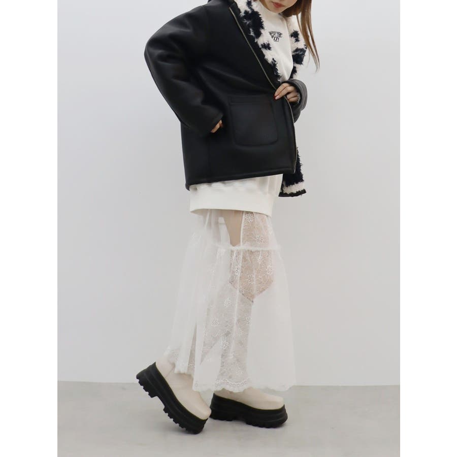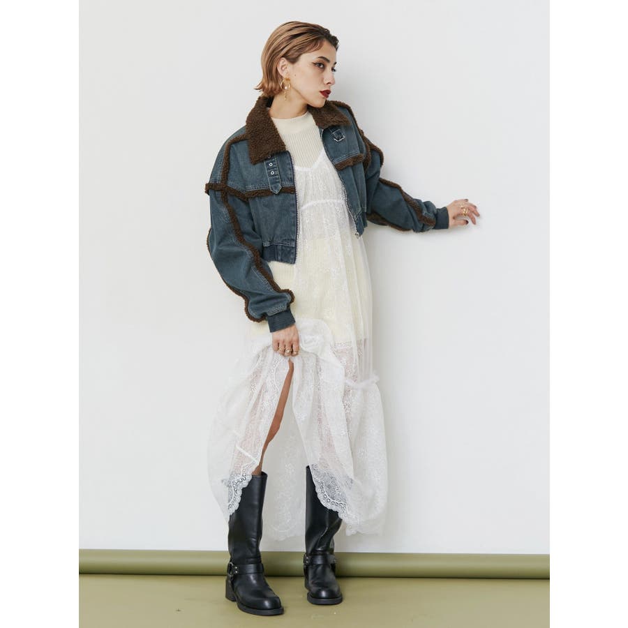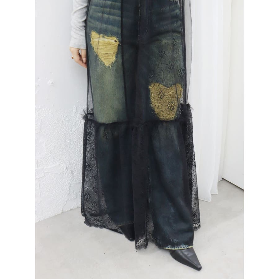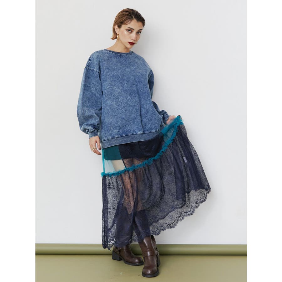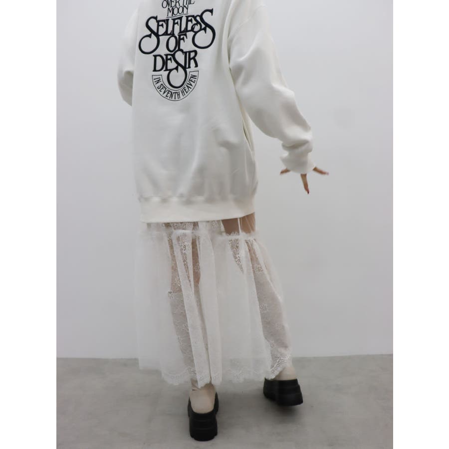 ■デザイン繊細なレースとチュール素材をコンビにしたレイヤード用のワンピースです。シアーの素材感が今年らしいムードを醸し出します。どんなコーデにも合わせやすいブラック・ホワイトに、EVRIS(エヴリス)らしさが詰まった配色のネイビーでご用意しました。いつものスタイリングにプラスするだけで今年らしい印象に仕上げてくれる優秀アイテムです。■スタイリングいつものスウェットとデニムパンツのスタイリングに加えるだけで新鮮なスタイリングに。ショートパンツ×ロングブーツの上からふわっと羽織るのも◎-------------- 透け感:あり裏地:なし 生地の厚み:薄手伸縮性:なし --------------