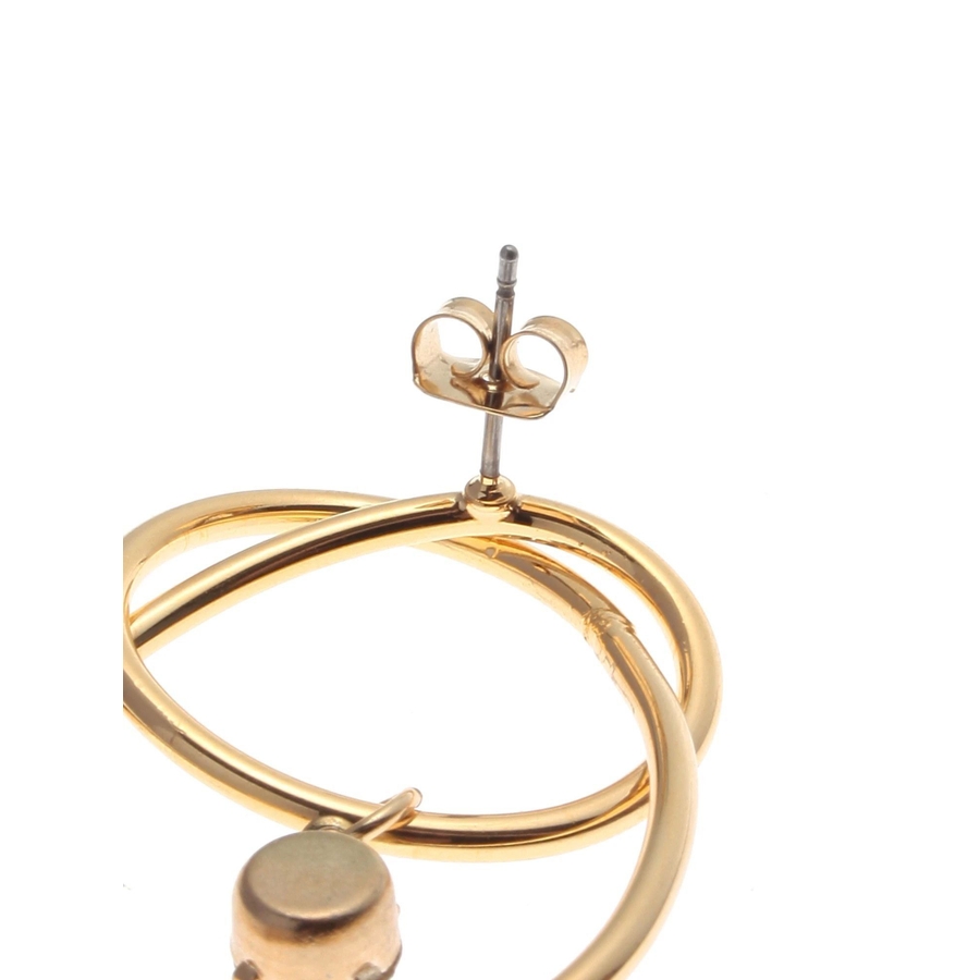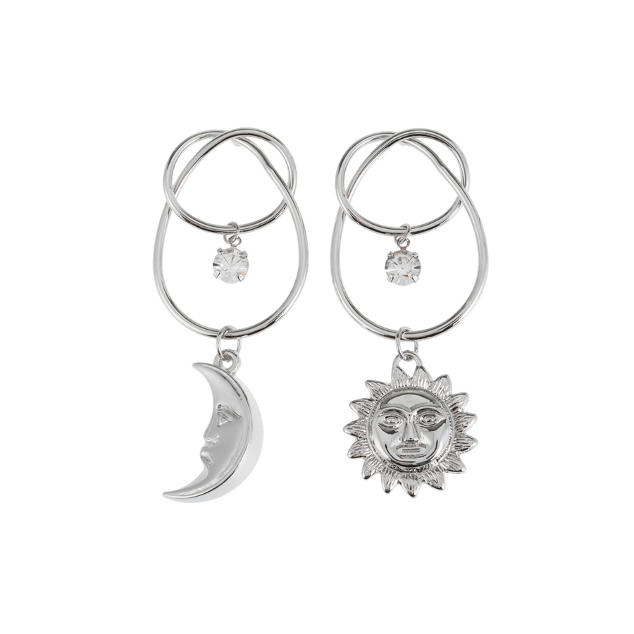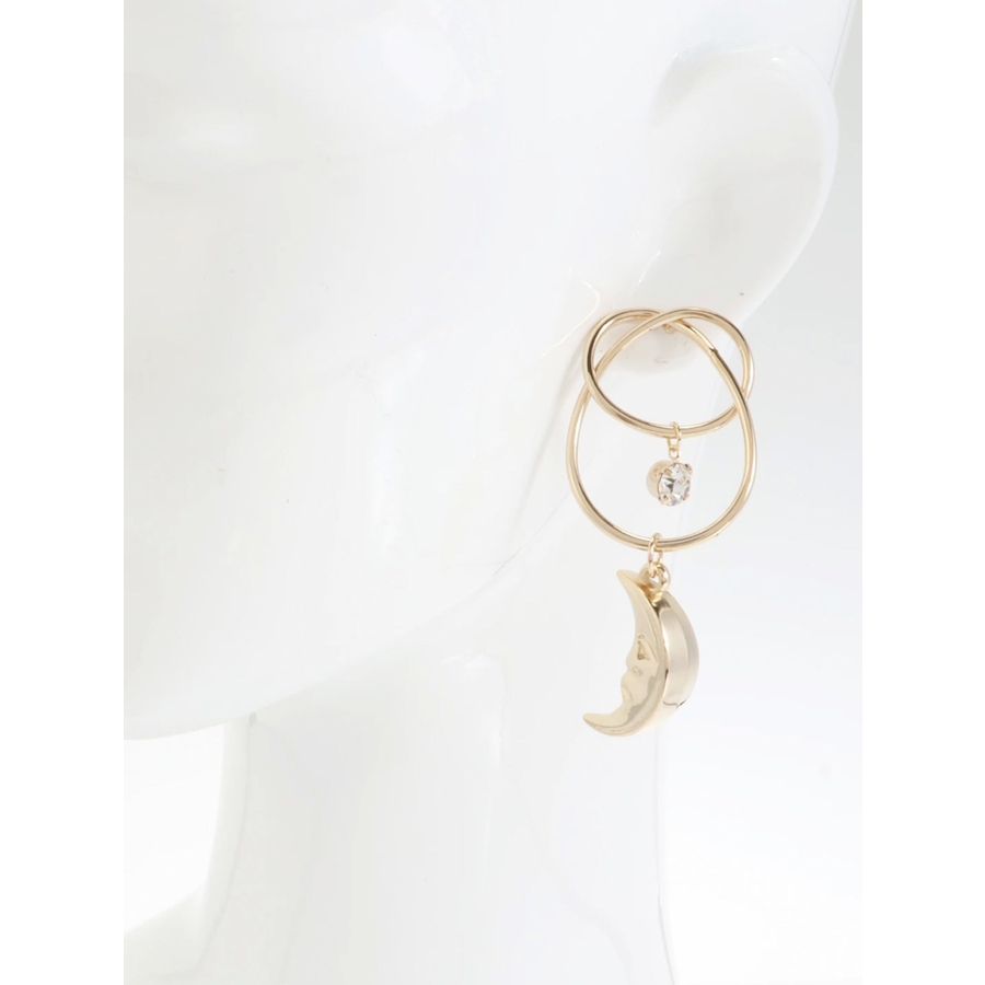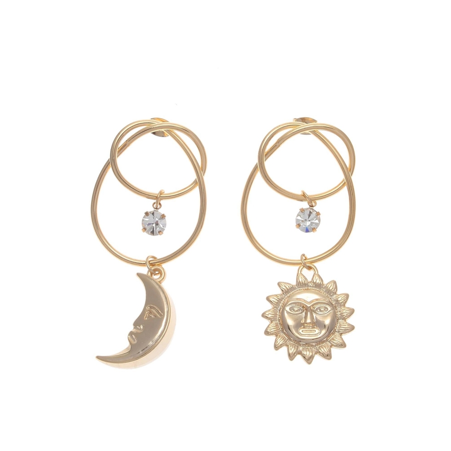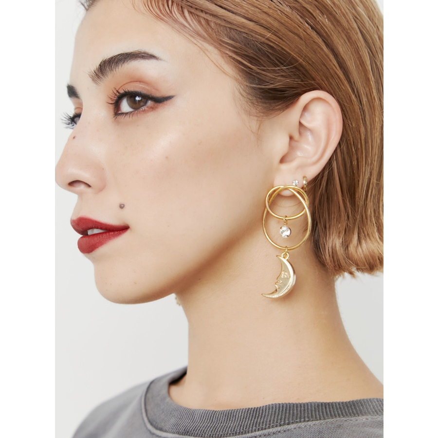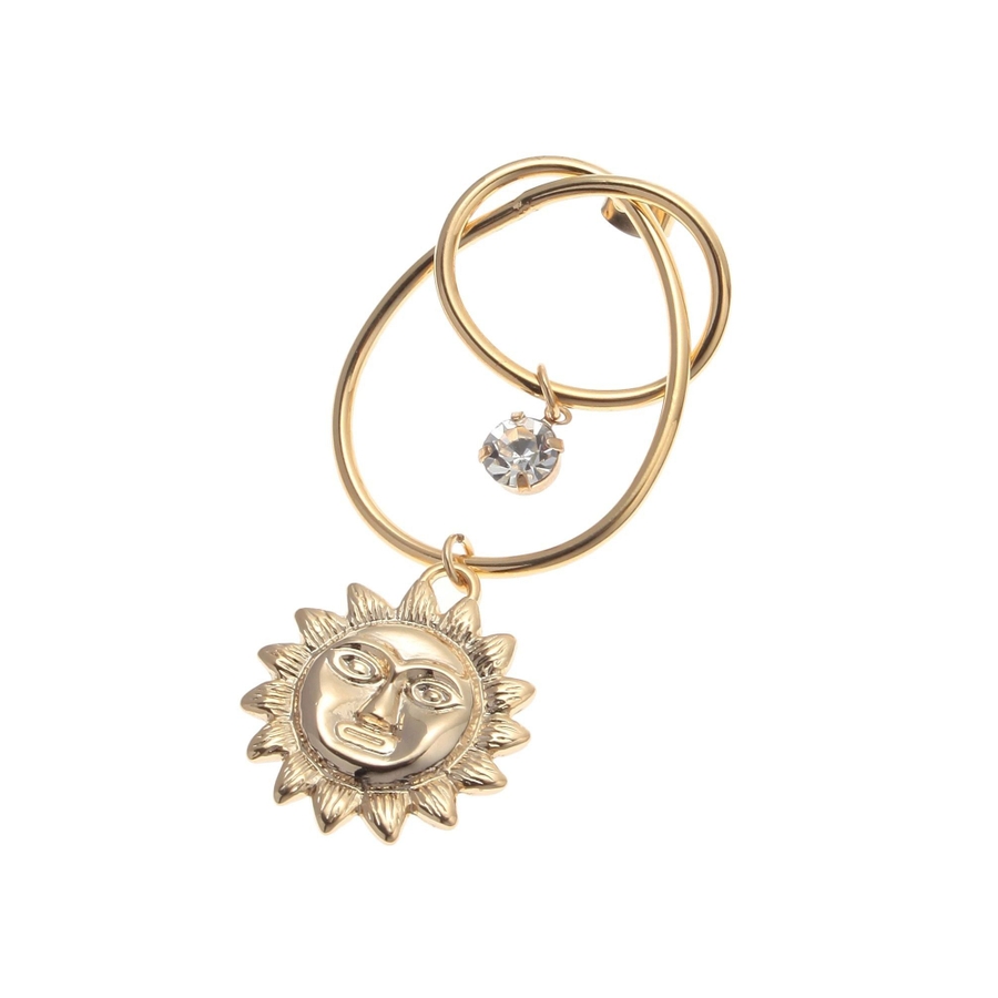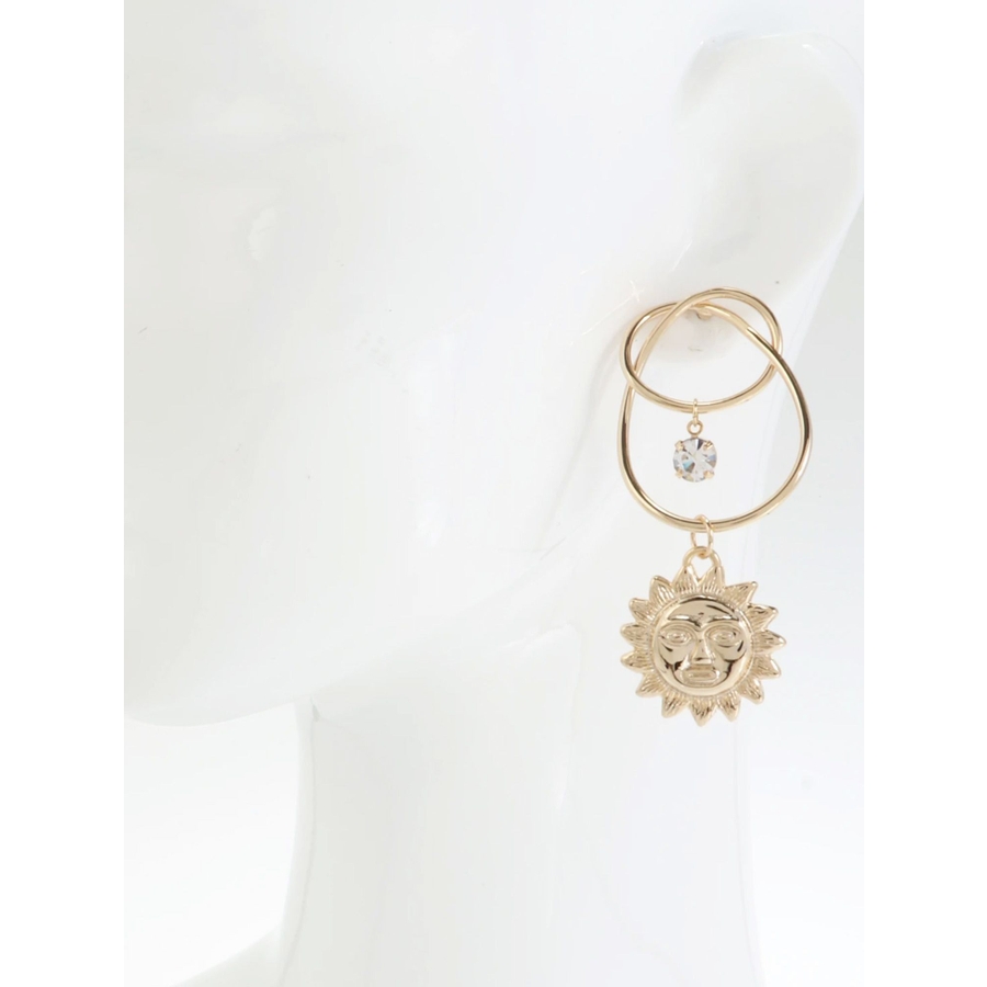 EVRIS(エヴリス)で人気のサニーモチーフのピアスです。変形したフープに、キラキラとしたストーンが付いており、豪華なピアスです。大振りなので、シンプルなスタイリングの際、アクセントになるアクセサリーです。