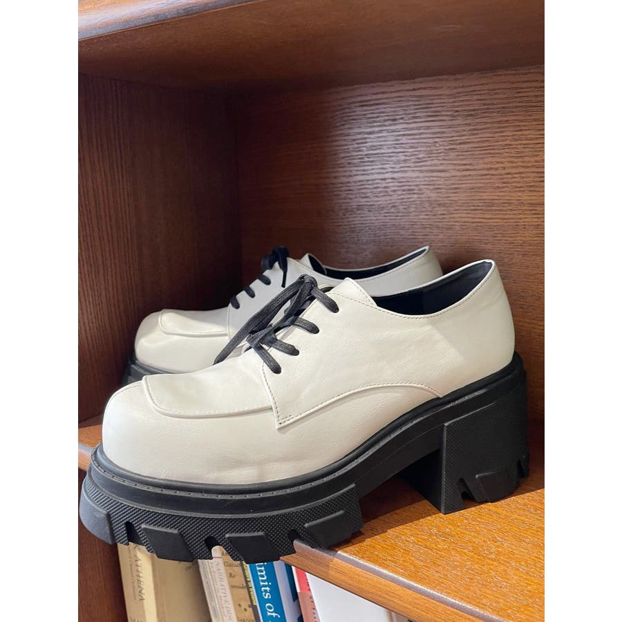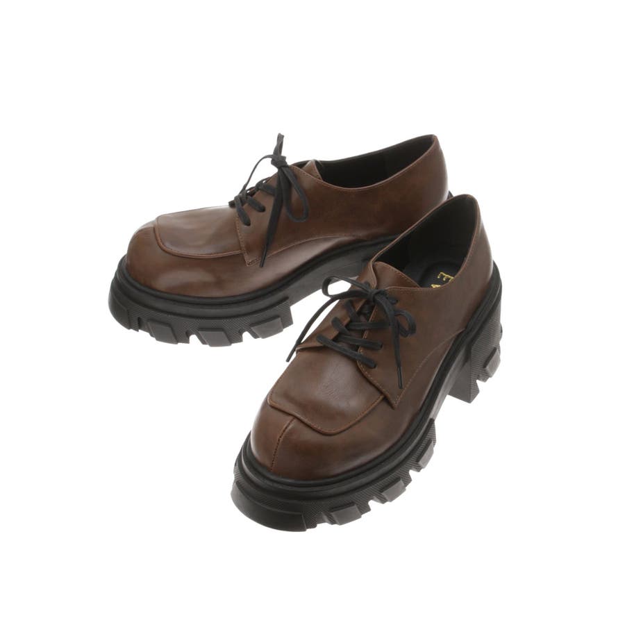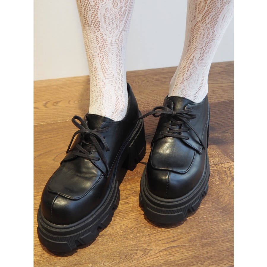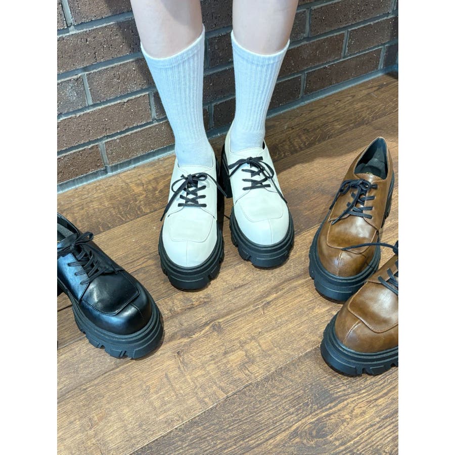 厚めのソールを使用したレースアップシューズ。タイツやソックス合わせで、スクール風に着用するのがすすめです。フルレングスボトムにもミニボトムにも合わせやすいシンプルなデザインです。