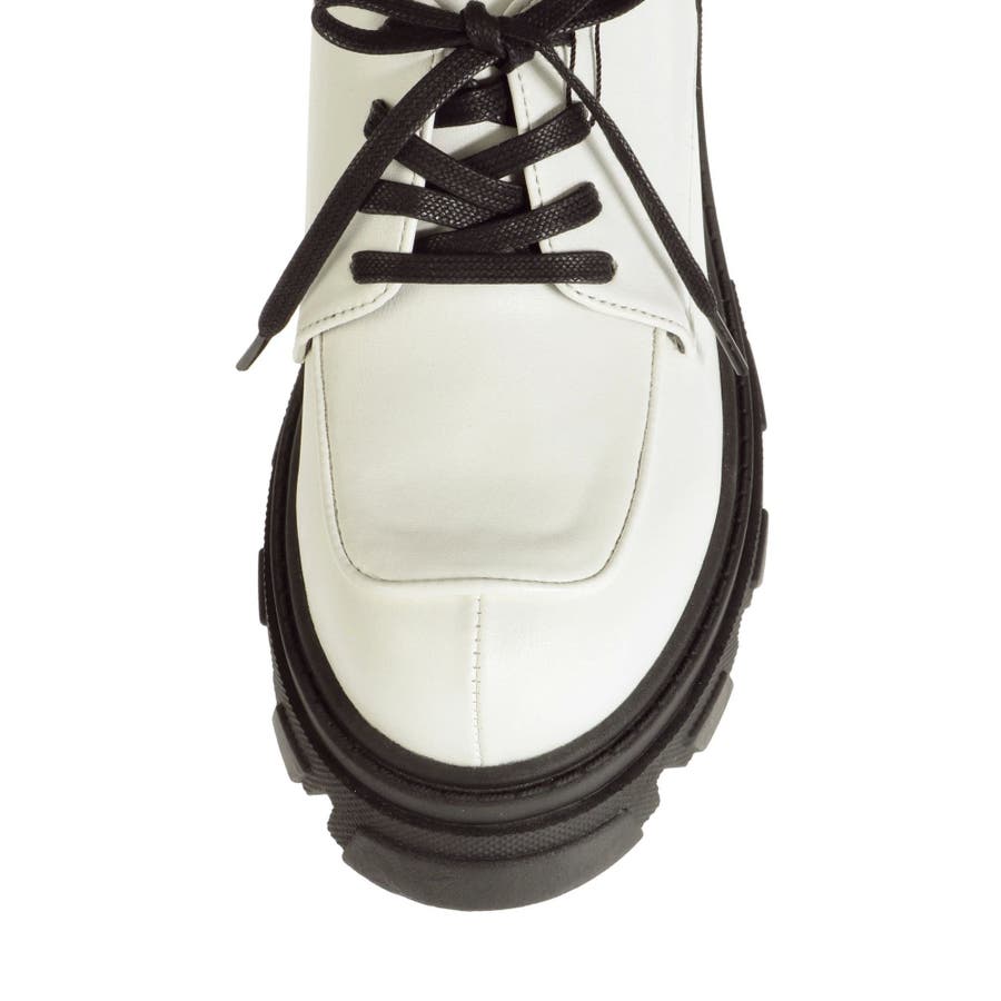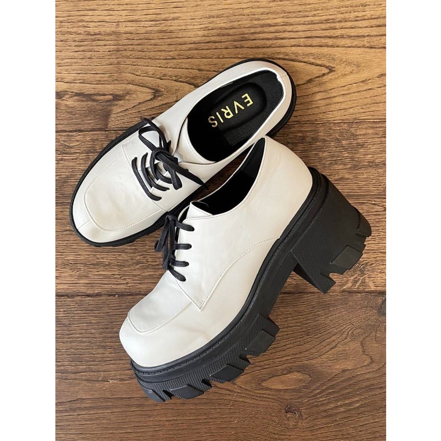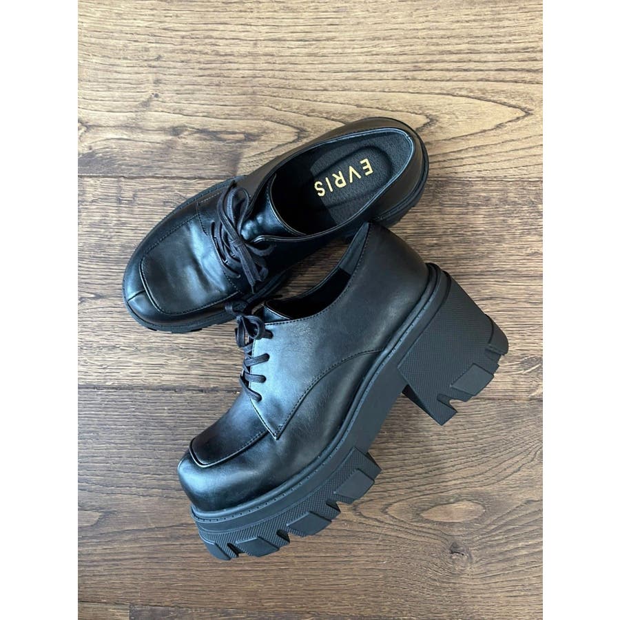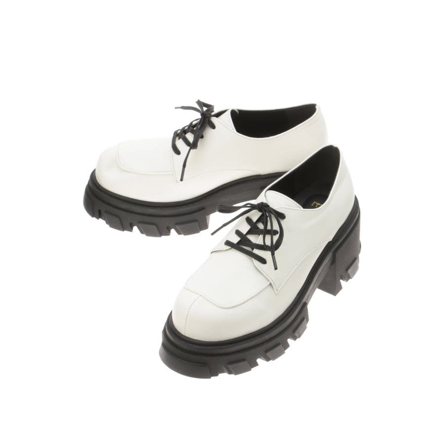 厚めのソールを使用したレースアップシューズ。タイツやソックス合わせで、スクール風に着用するのがすすめです。フルレングスボトムにもミニボトムにも合わせやすいシンプルなデザインです。