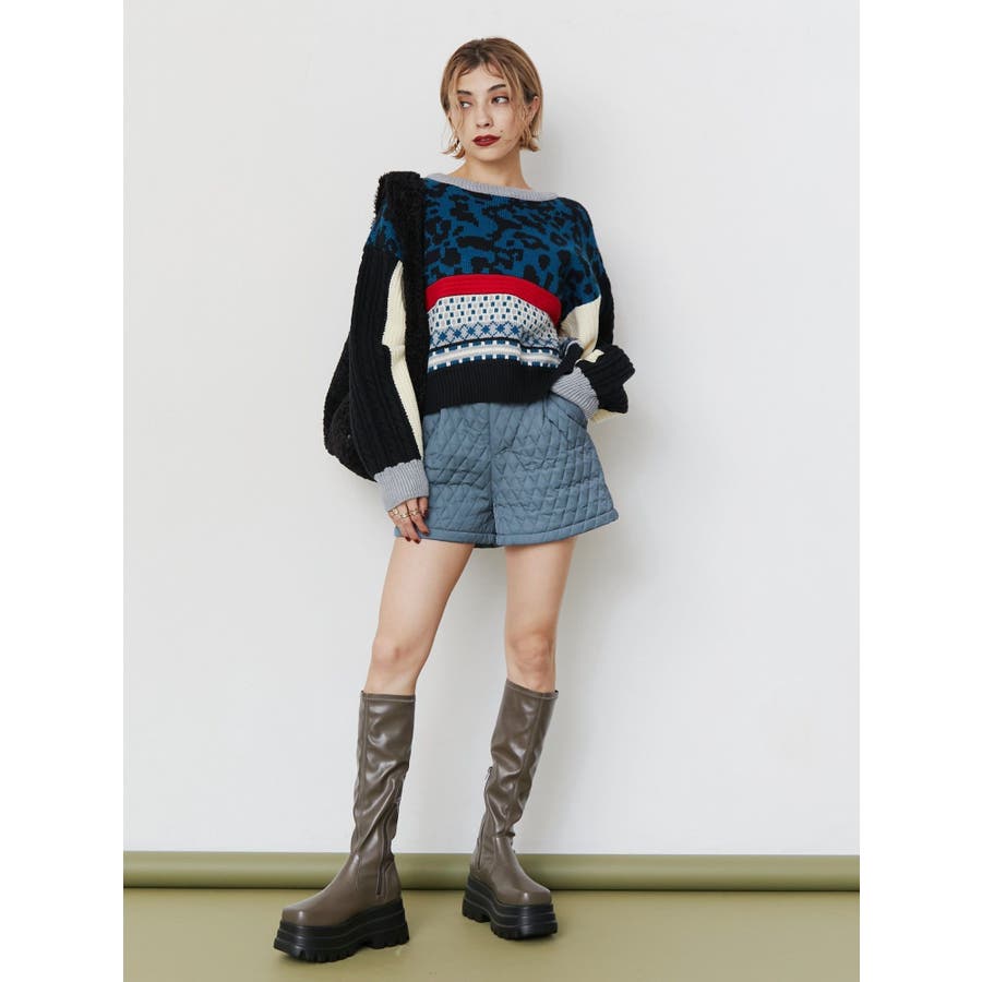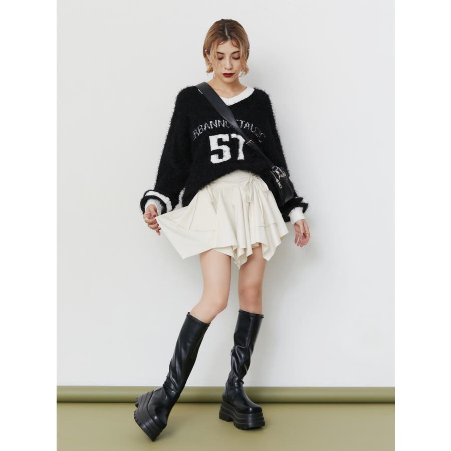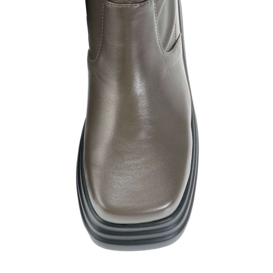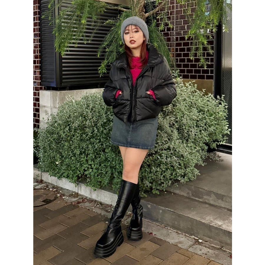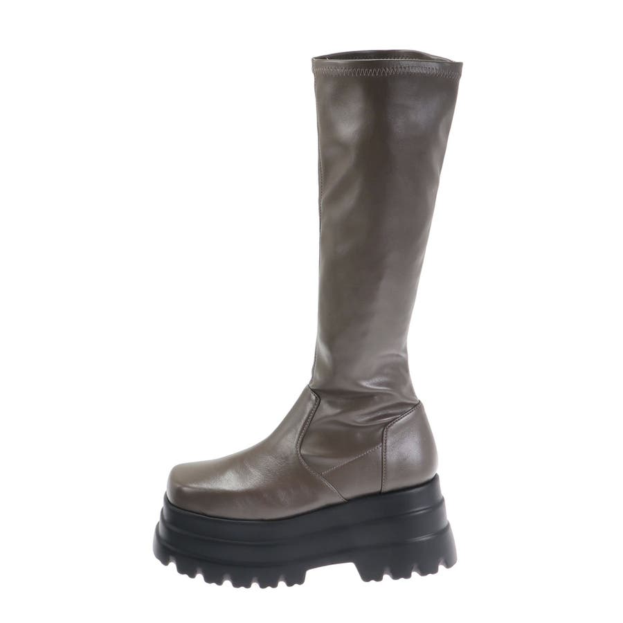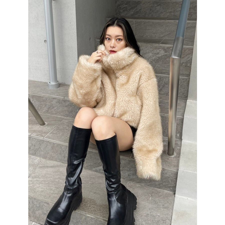 ストレッチ素材を使用したミドルブーツ。厚めのソールを使用しており、美脚効果抜群の1足です。厚底ですが軽い素材なので履き心地が良いです。ミニボトムとのスタイリングがおすすめです。