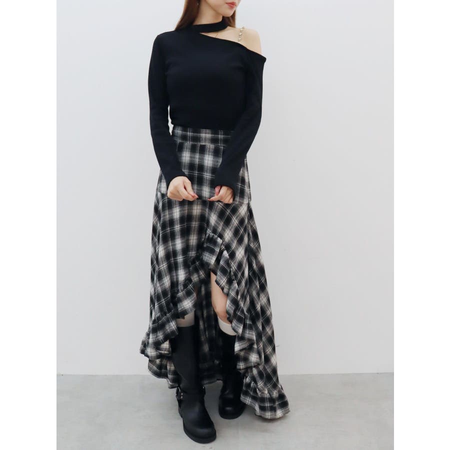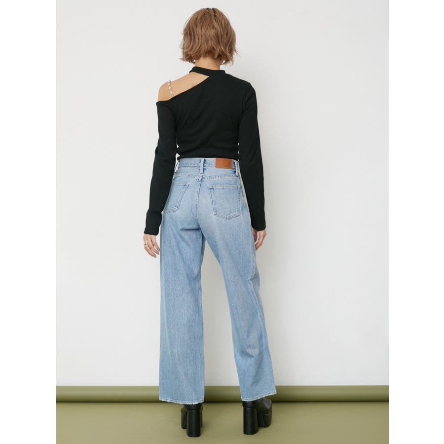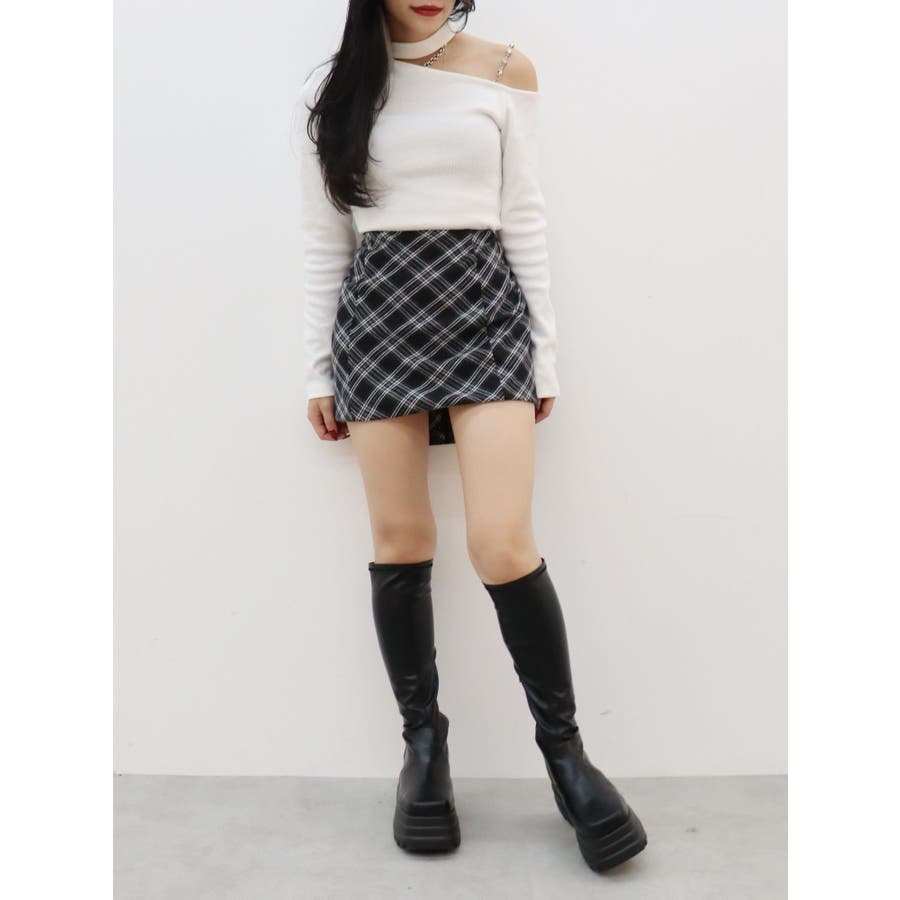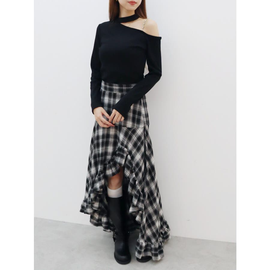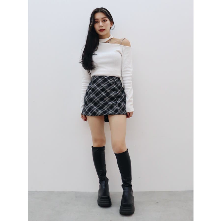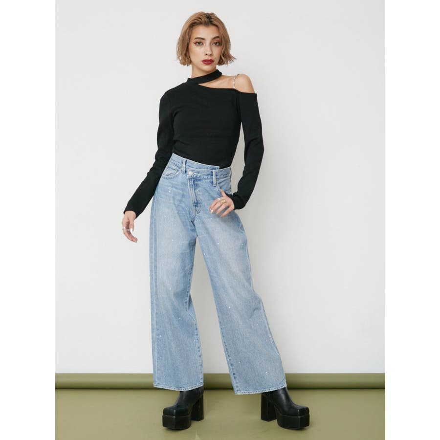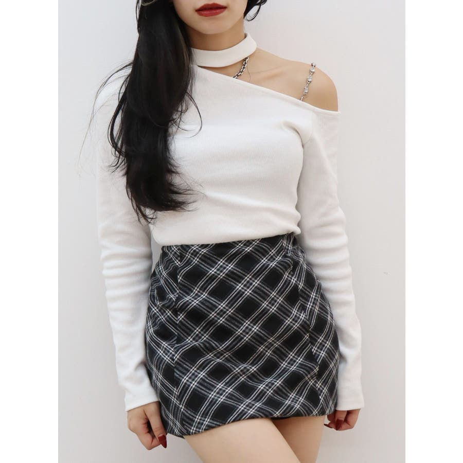 ■デザインショルダー部分にラインストーンの付いたチェーンを使用している、EVRIS(エヴリス)らしいエッジの効いたトップスです。リブ生地を使用しており、程よいフィット感で着心地が良いです。肩見せのデザインですが、ハイネックなので程よく綺麗め見えするトップスです。アウターのインナーでも着やすいサイズ感になっています。 ■スタイリングシンプルなデニム合わせやなどが幅広いコーデに取り入れやすいアイテム。ジャンスカなどのインナーにもインパクトが出ておすすめです。-------------- 透け感:なし 裏地:なし 生地の厚み:やや薄手伸縮性:なし --------------