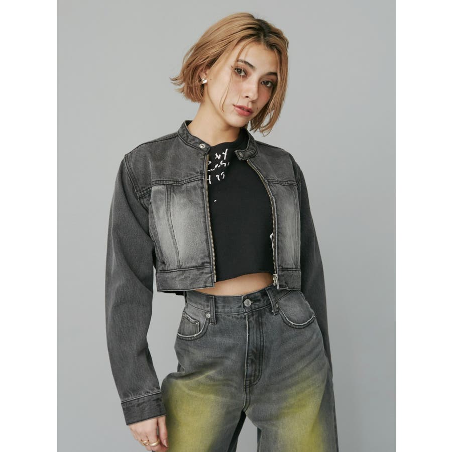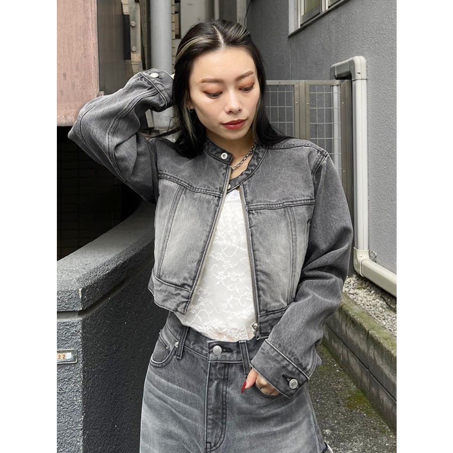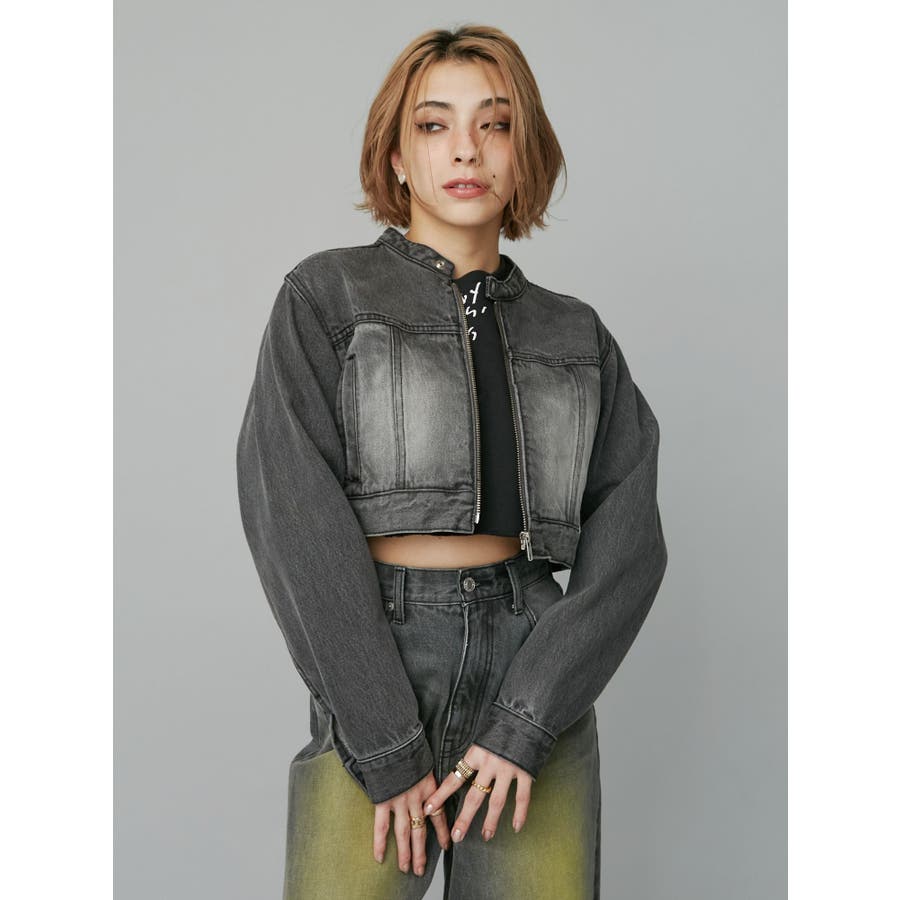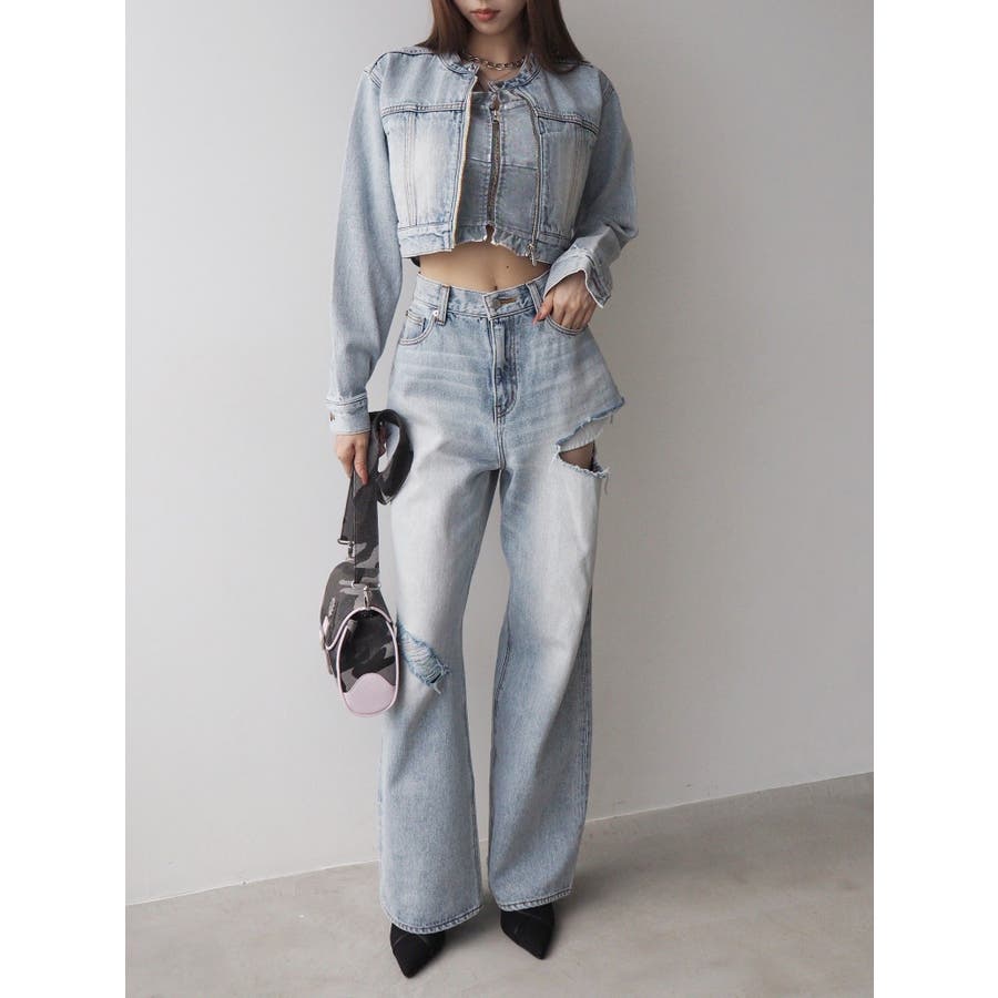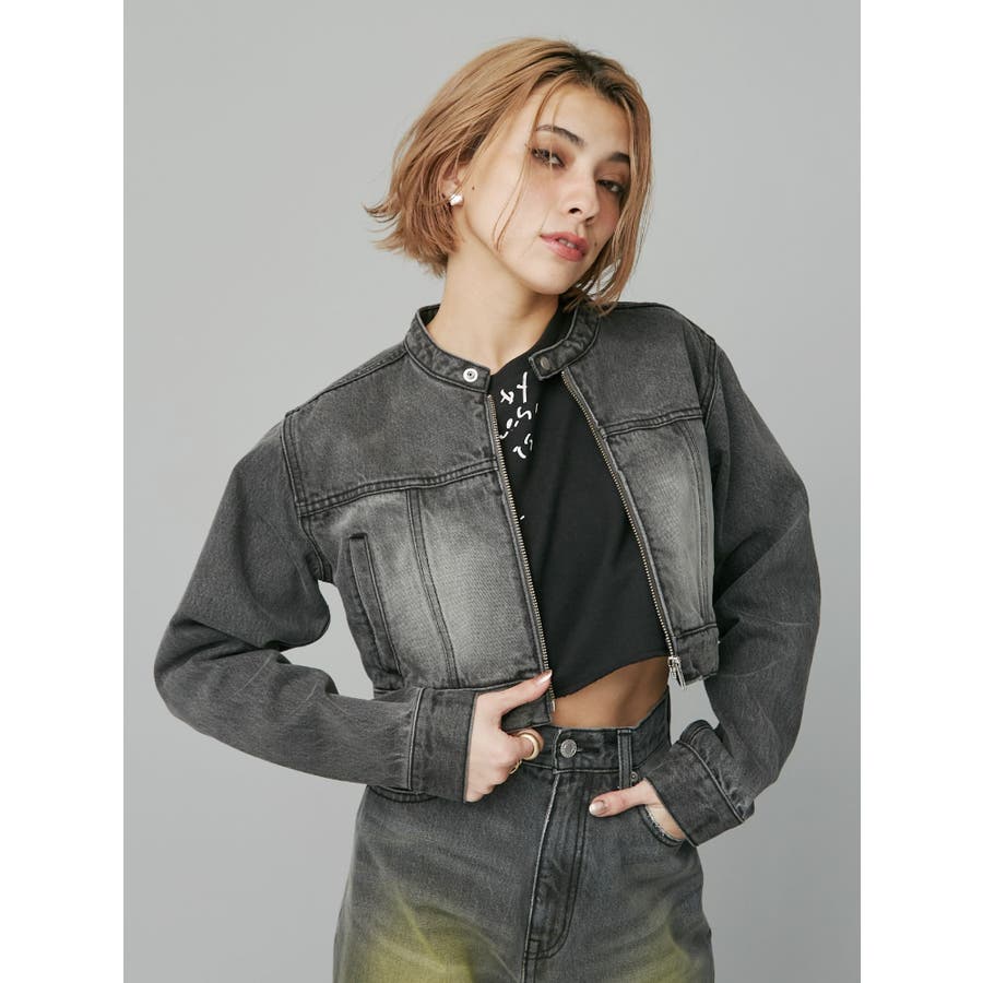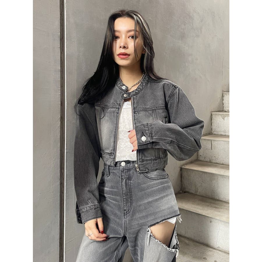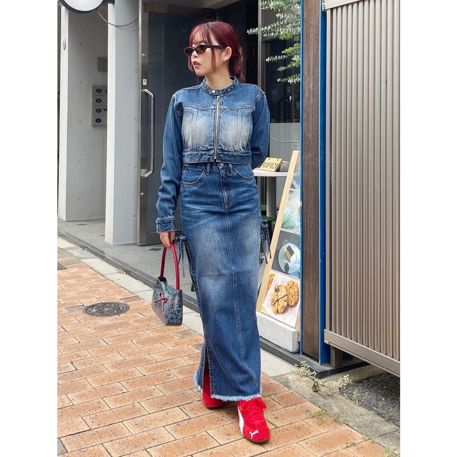 ■デザイン今季トレンドのバイカー風デザインのデニムブルゾンです。袖周りやバストなど少しタイトなシルエットにしており、ジップを閉めて着用したときのシルエットが綺麗な一枚。同素材でパンツ、スカート、ビスチェのご用意があり、お好きなスタイリングをお楽しみいただけます。■セットアップアイテム>>サイドカッティングワイドデニム>>サイドリボンカットロングデニムスカート>>デニムフリルビスチェ■スタイリングセットアップでの着用はもちろん、単体でも着回しが効くのが魅力のデニムジャケット。レディライクなワンピースなどに合わせるのが今年らしくおすすめです。-------------- 透け感:なし生地の厚み:普通伸縮性:なし --------------
