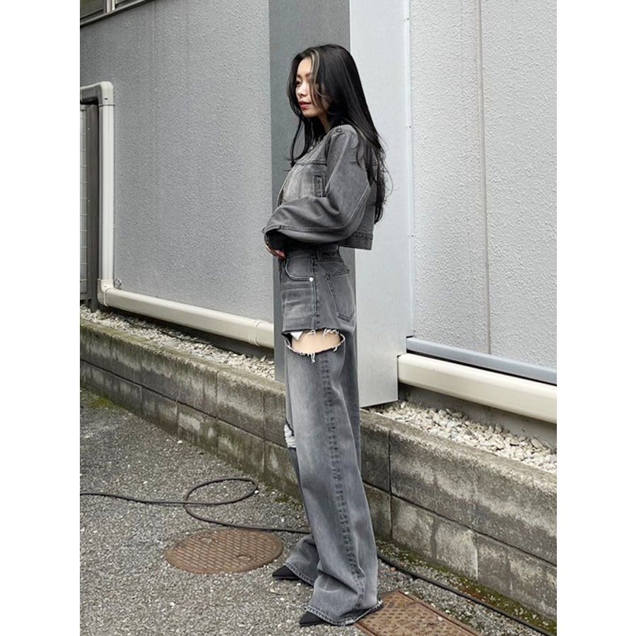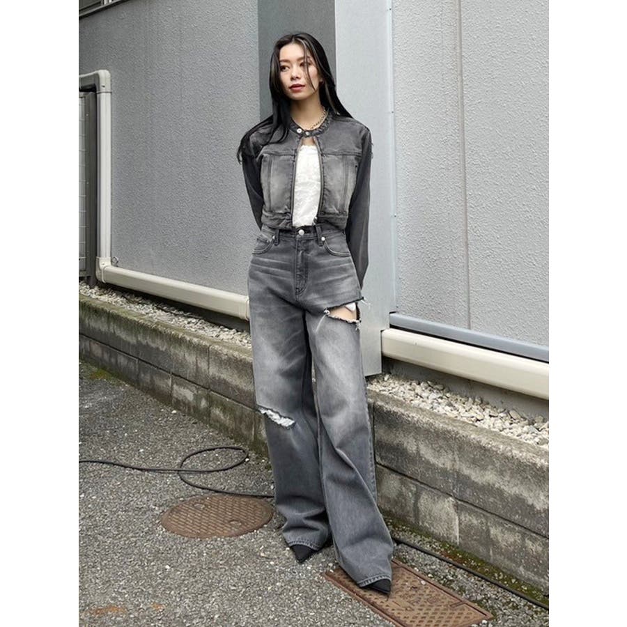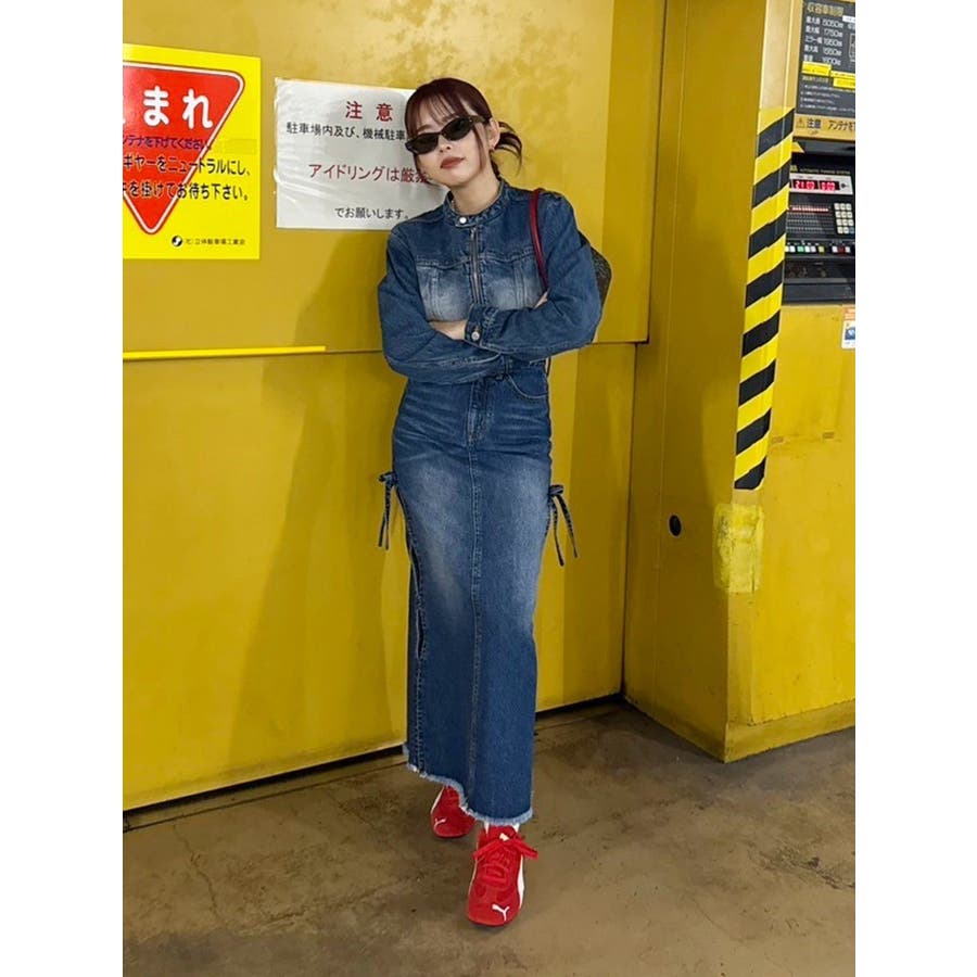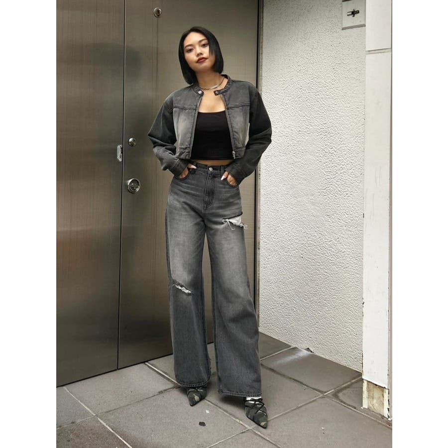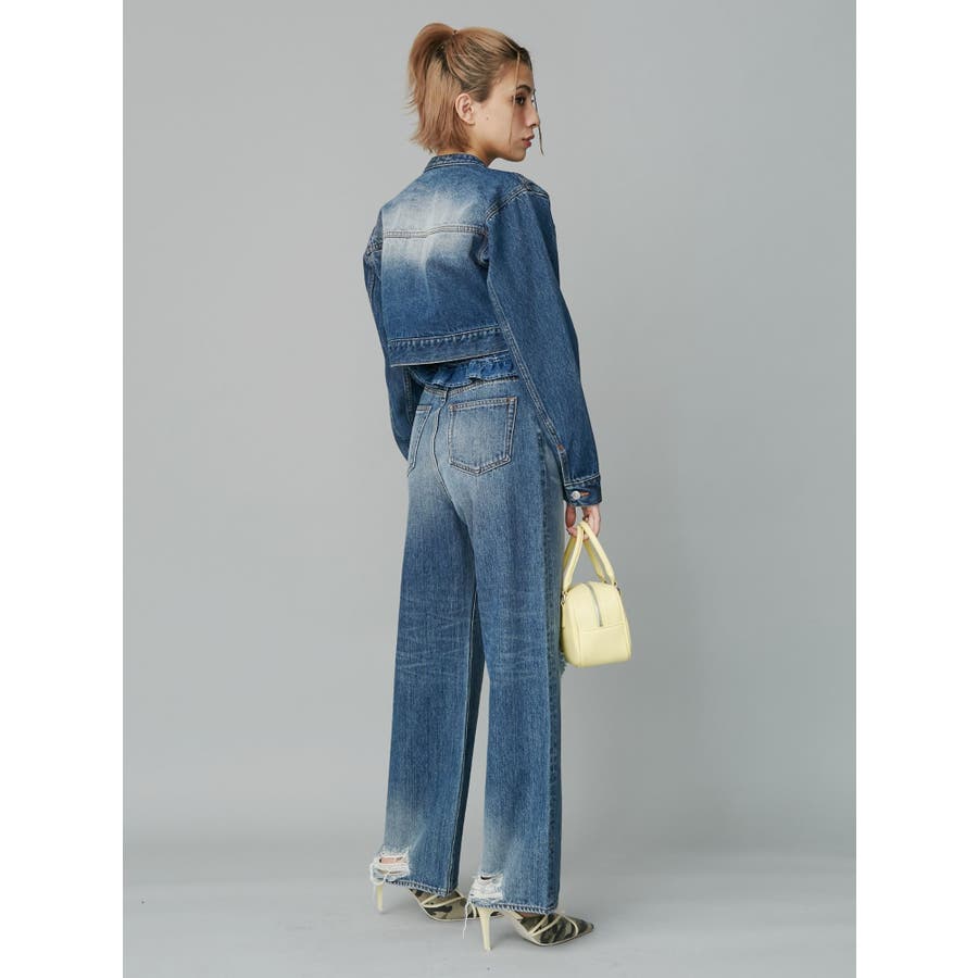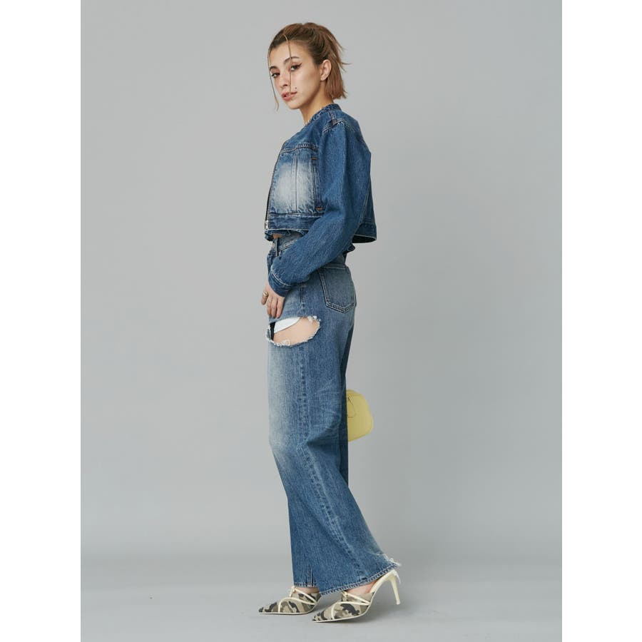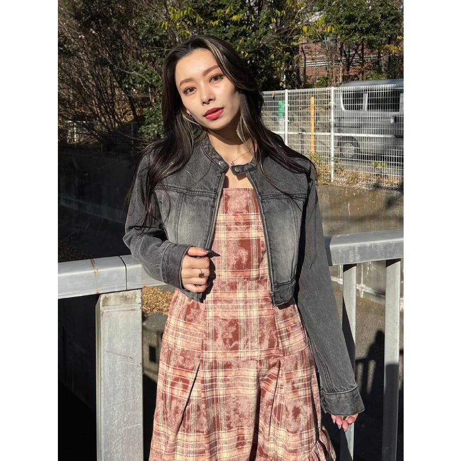 ■デザイン今季トレンドのバイカー風デザインのデニムブルゾンです。袖周りやバストなど少しタイトなシルエットにしており、ジップを閉めて着用したときのシルエットが綺麗な一枚。同素材でパンツ、スカート、ビスチェのご用意があり、お好きなスタイリングをお楽しみいただけます。■セットアップアイテム>>サイドカッティングワイドデニム>>サイドリボンカットロングデニムスカート>>デニムフリルビスチェ■スタイリングセットアップでの着用はもちろん、単体でも着回しが効くのが魅力のデニムジャケット。レディライクなワンピースなどに合わせるのが今年らしくおすすめです。-------------- 透け感:なし生地の厚み:普通伸縮性:なし --------------