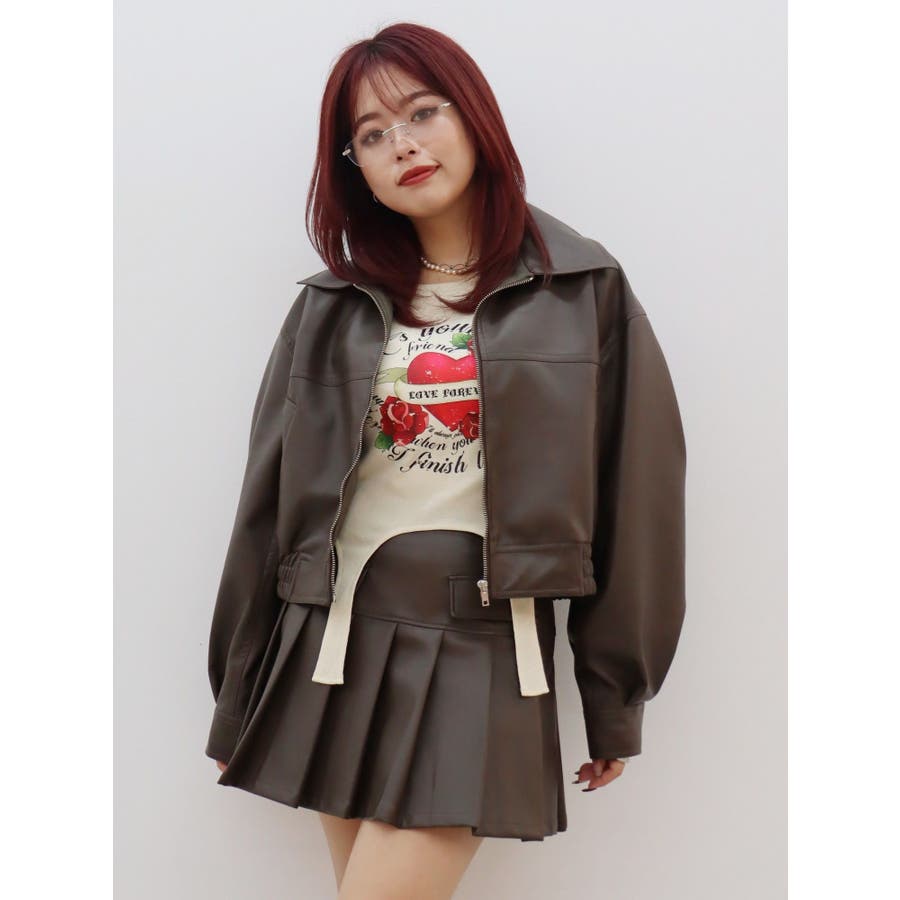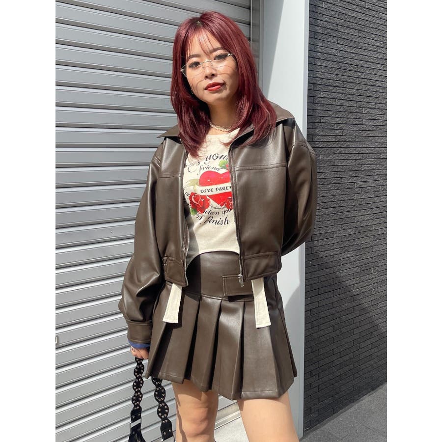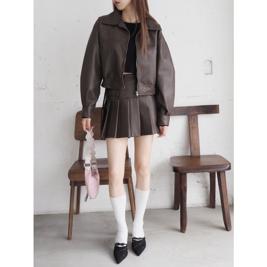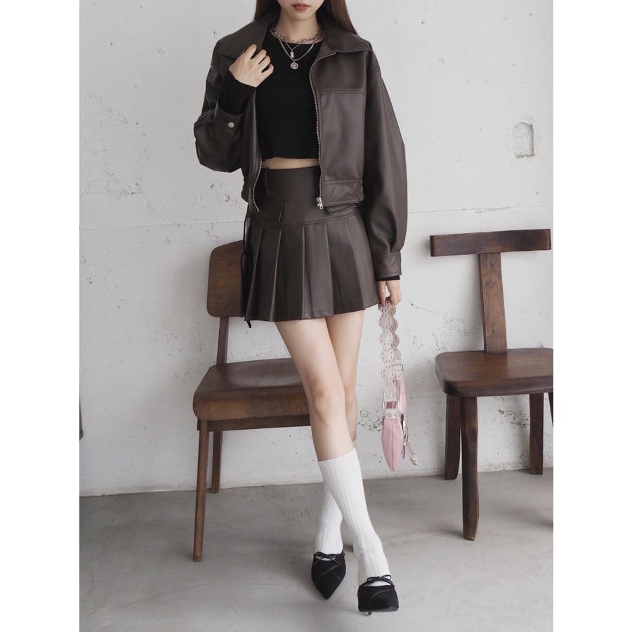 セットアップアイテム>>レザーライクプリーツミニスカートとの合わせがおすすめ。