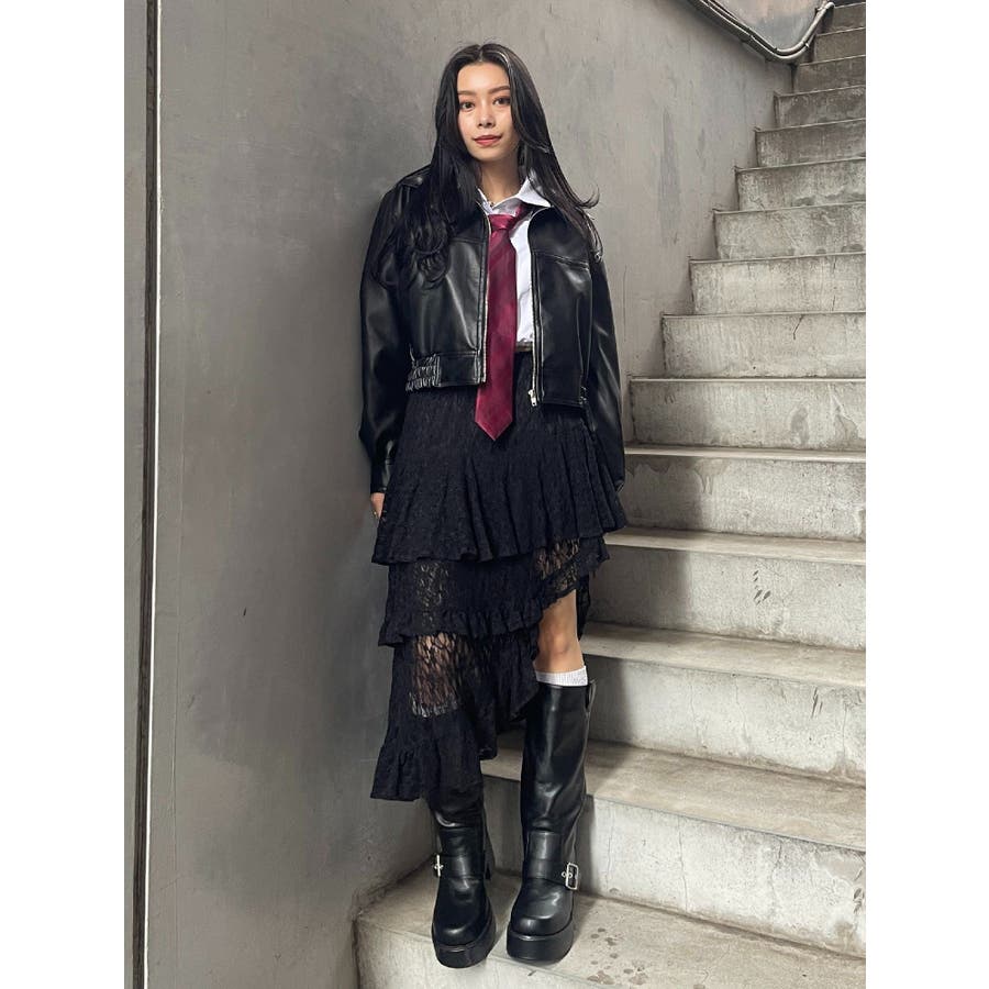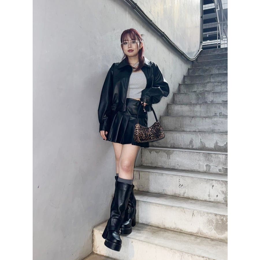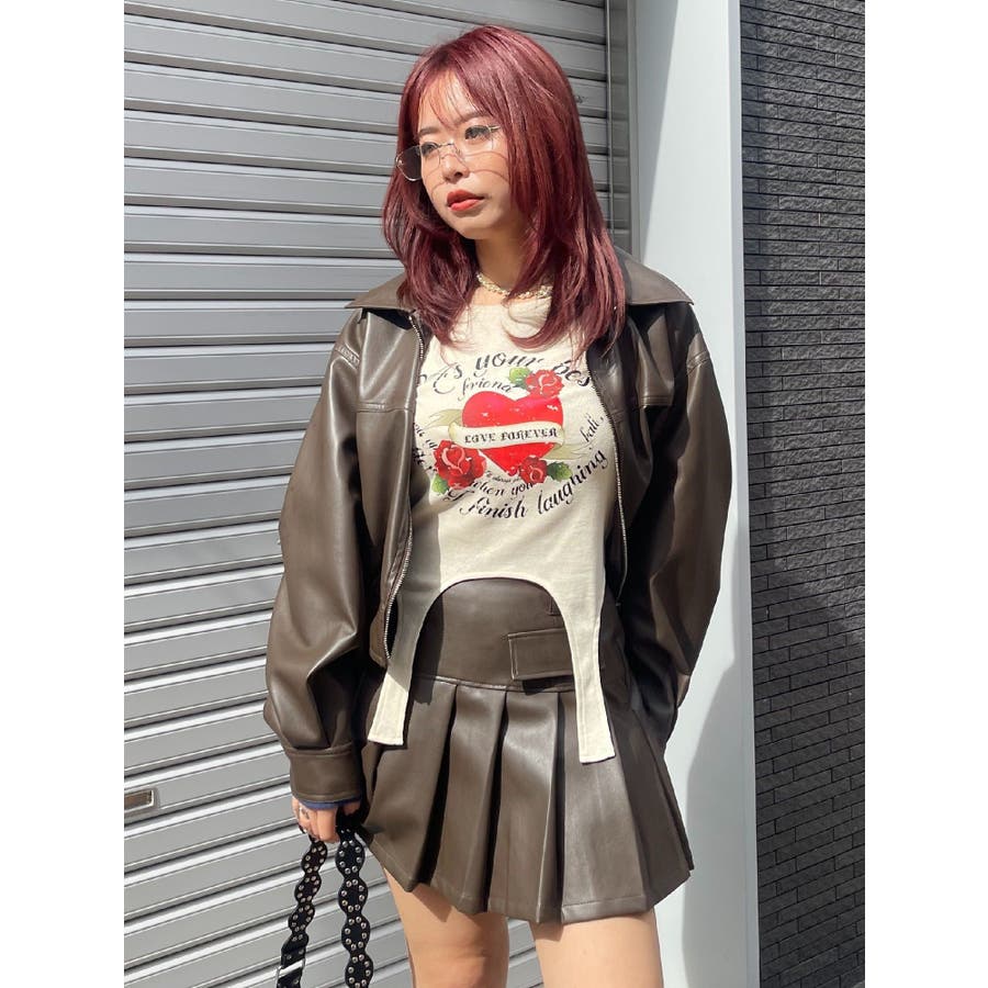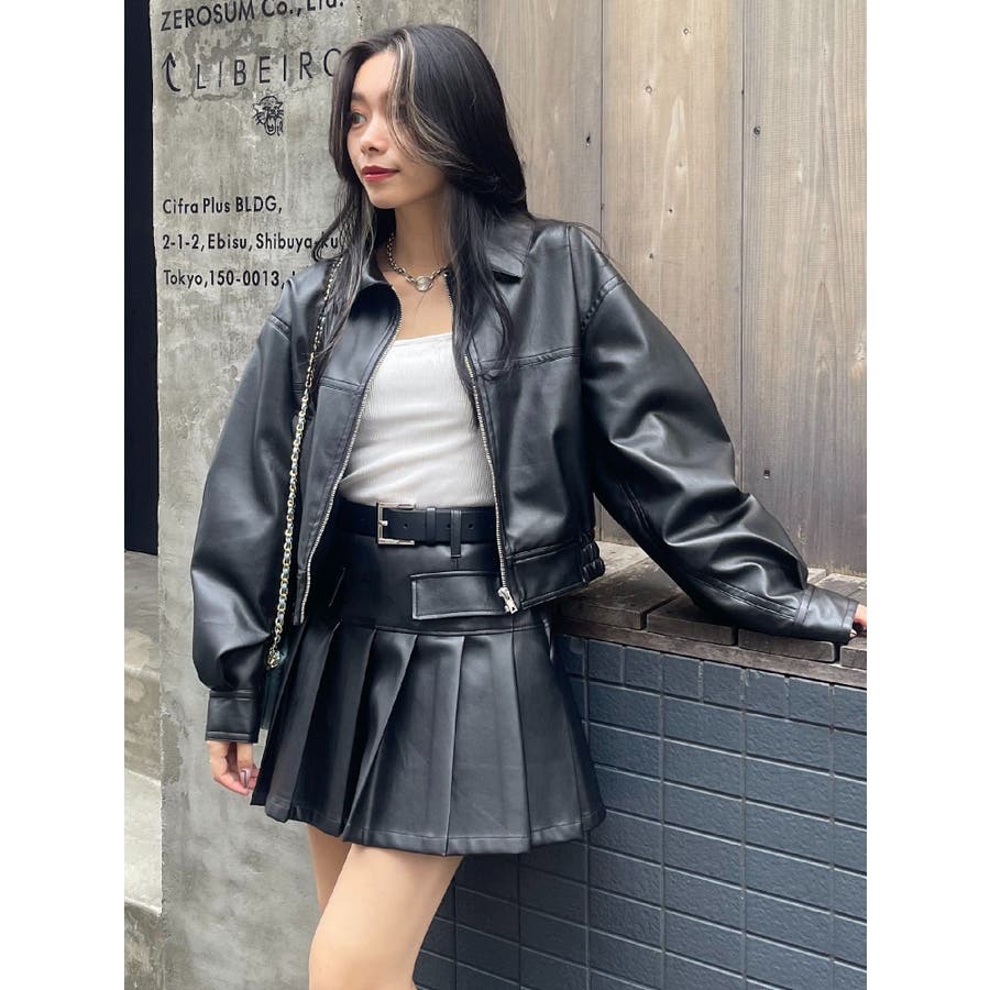 セットアップアイテム>>レザーライクプリーツミニスカートとの合わせがおすすめ。