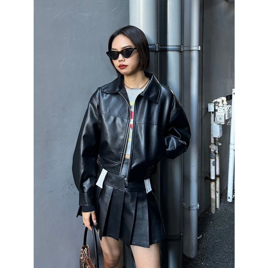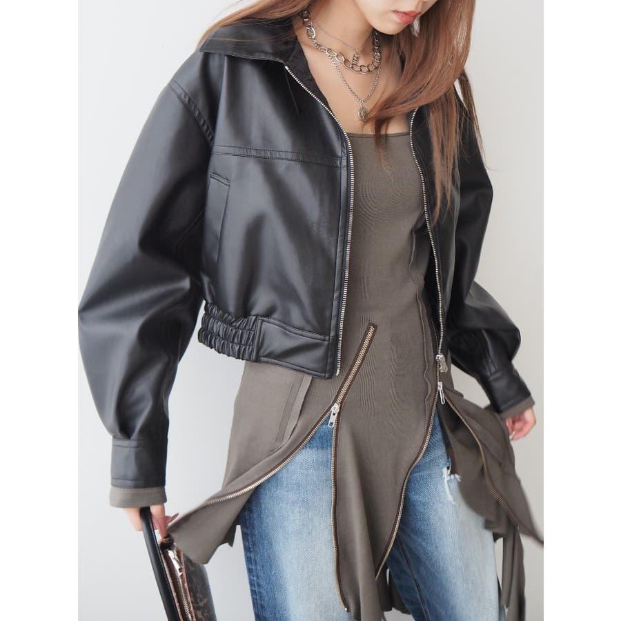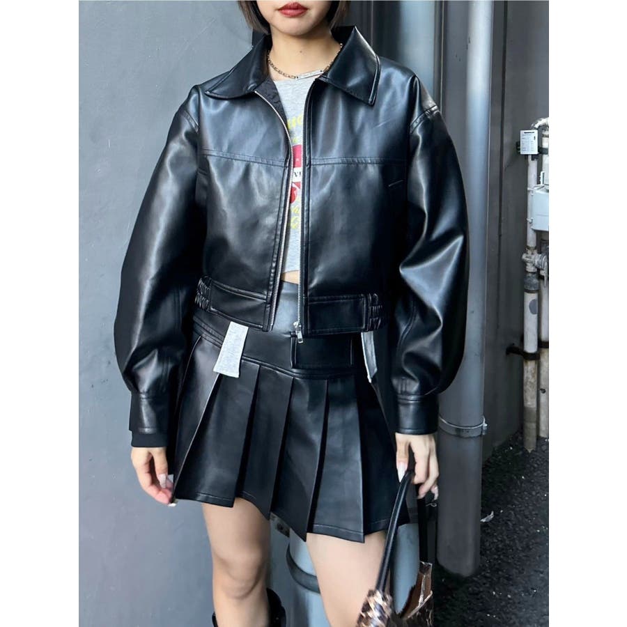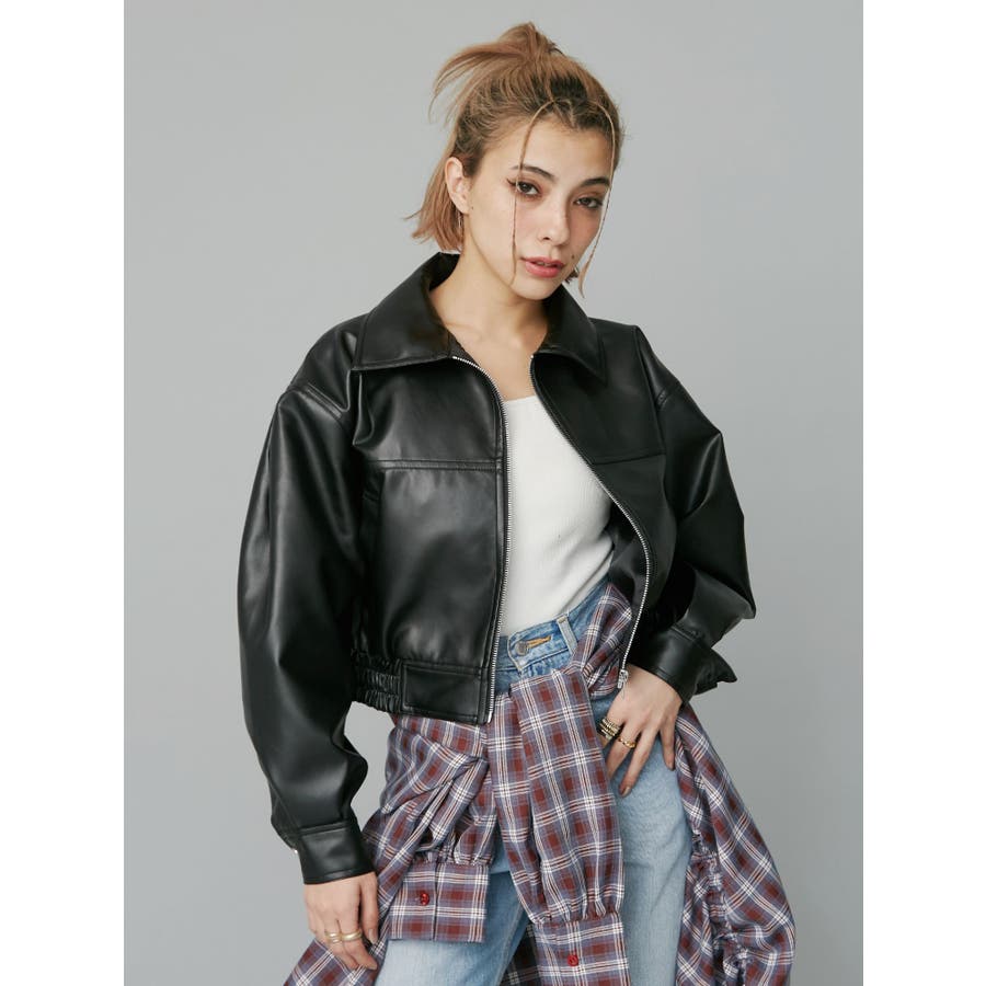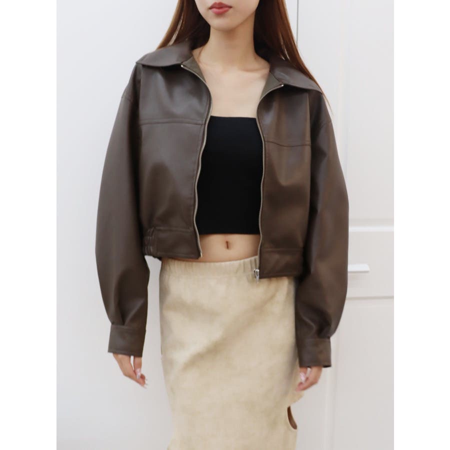 レザーライクコンパクトブルゾン【セットアップ着用可能】