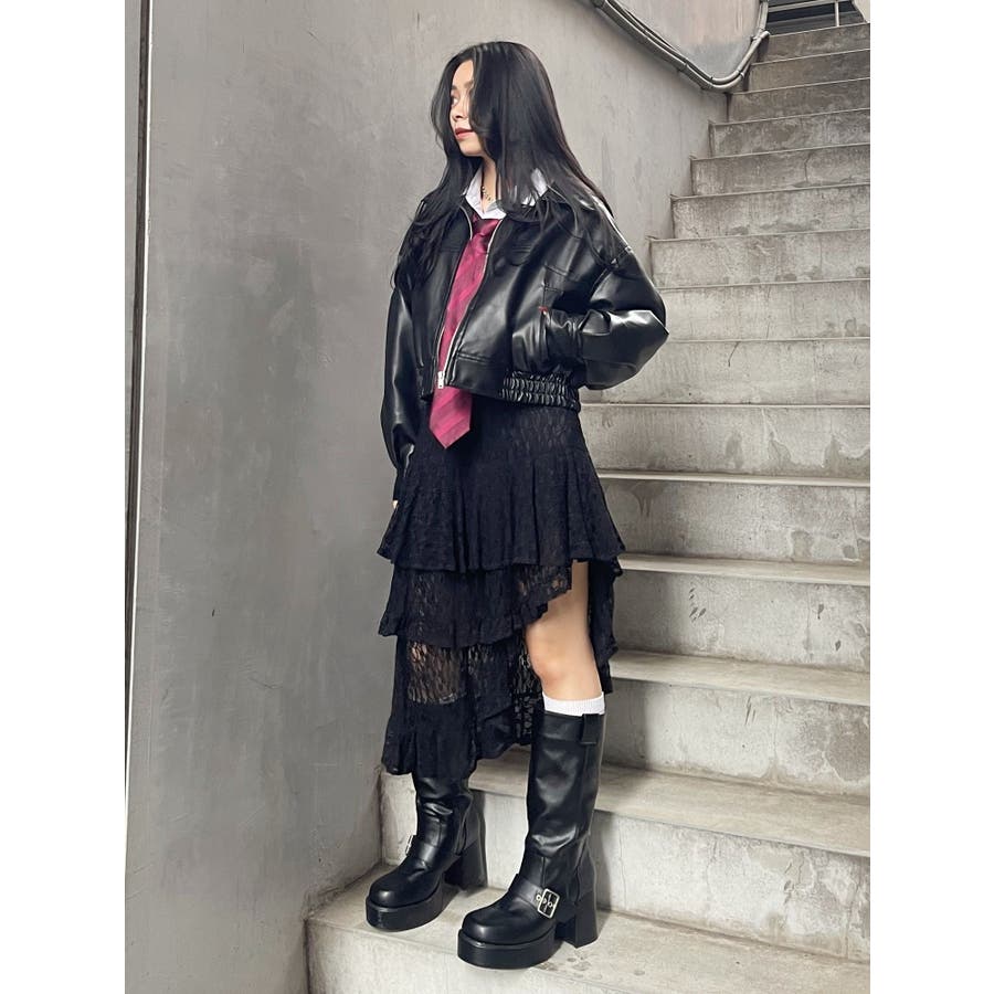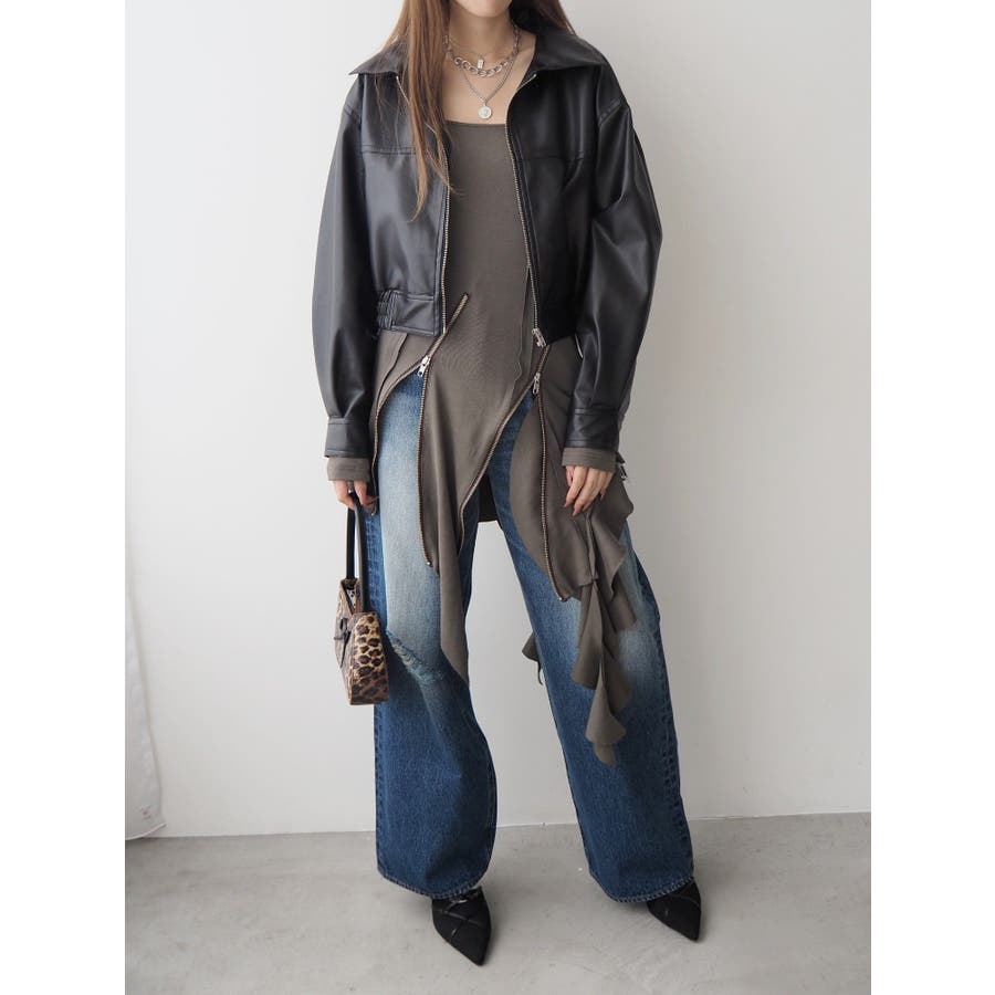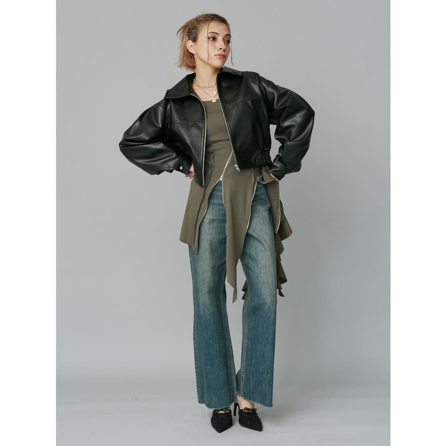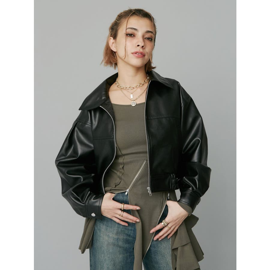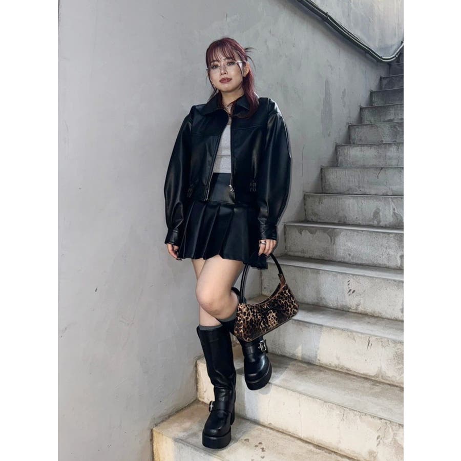 レザーライクコンパクトブルゾン【セットアップ着用可能】