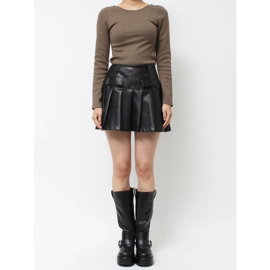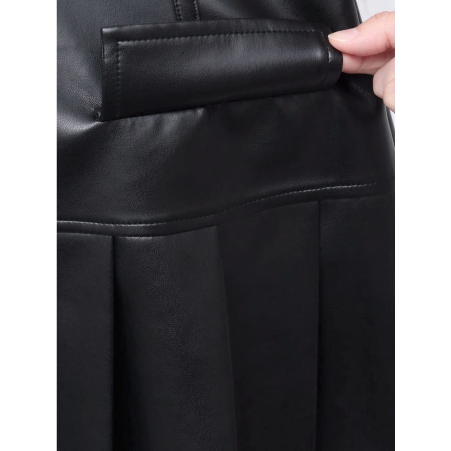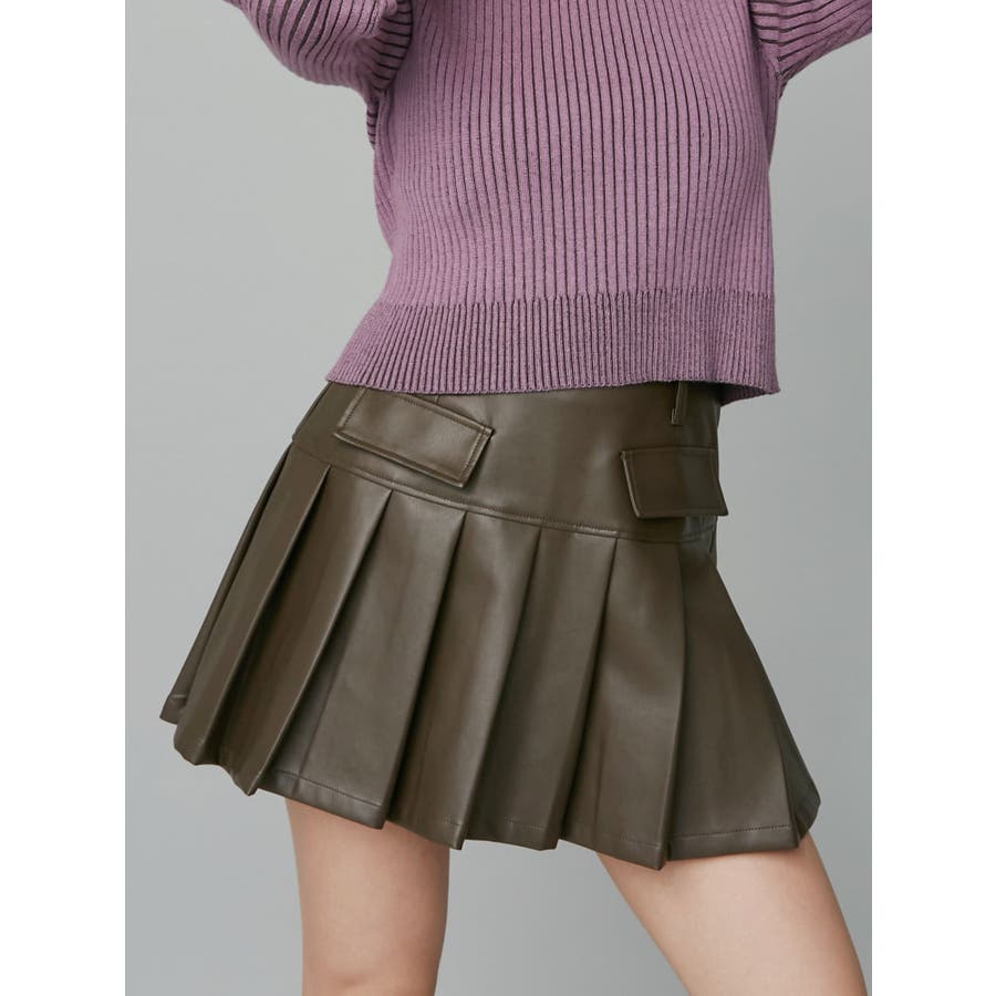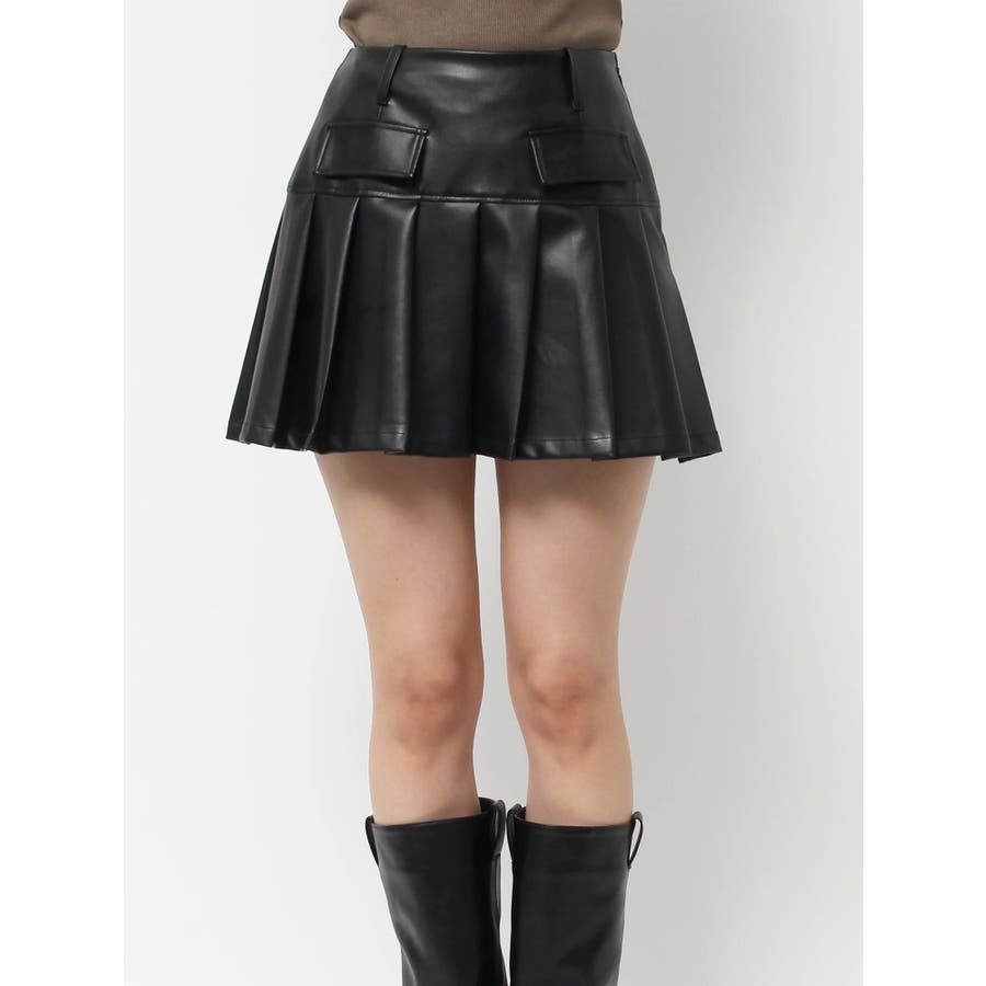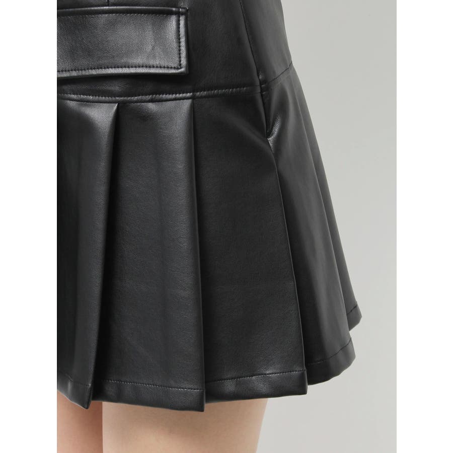 ■デザイン合皮素材を使用したプリーツミニスカート。セットアップで着用できる、合皮のブルゾンの展開もあります。インナーにはショートパンツが付いており、ミニ丈でも安心○フロントの大きなポケットのデザインがポイントです。柔らかい素材を使用しているため、穿き心地がよく、ストレスフリーに着用できます。 ■スタイリングセットアップアイテム >>レザーライクコンパクトブルゾン との合わせがおすすめ。ニットやスウェットなど、幅広いコーディネートとお楽しみいただけます。-------------- 透け感:なし 裏地:なし 生地の厚み:普通伸縮性:なし --------------