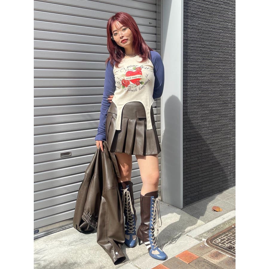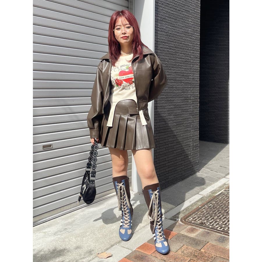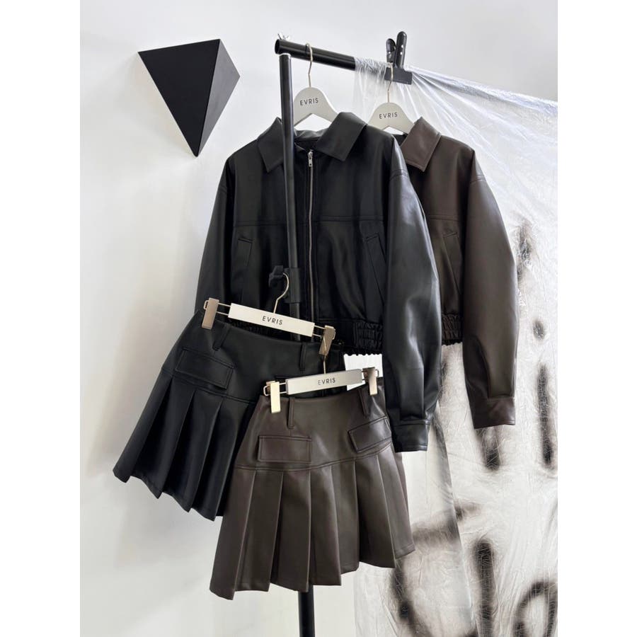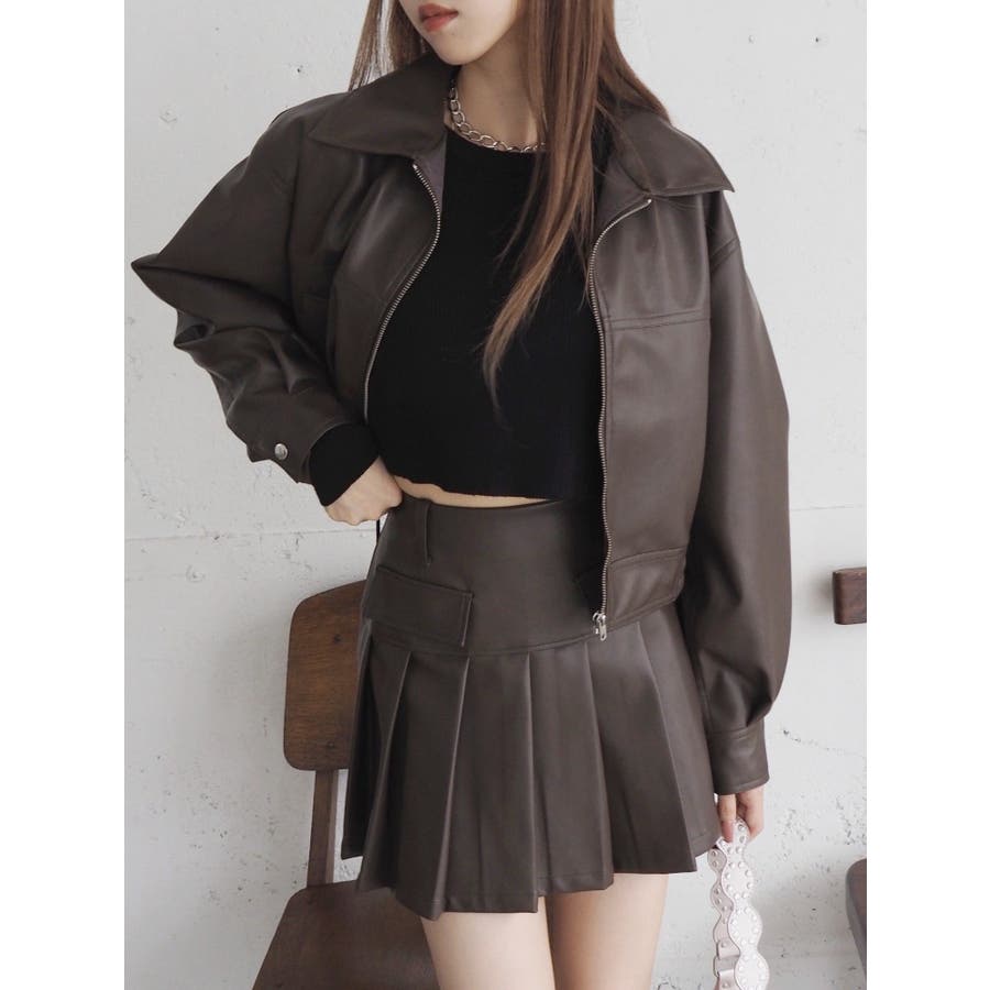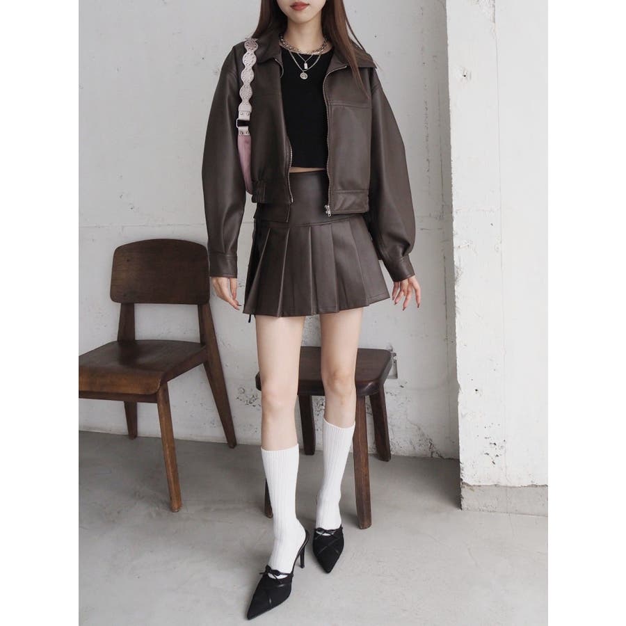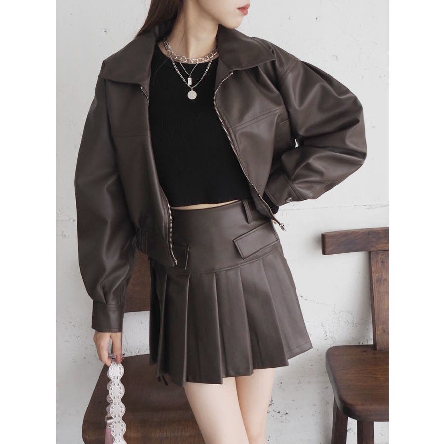 レザーライクプリーツミニスカート【セットアップ着用可能】