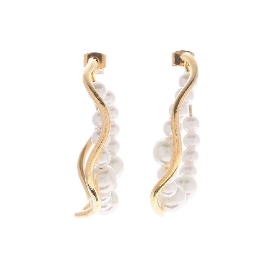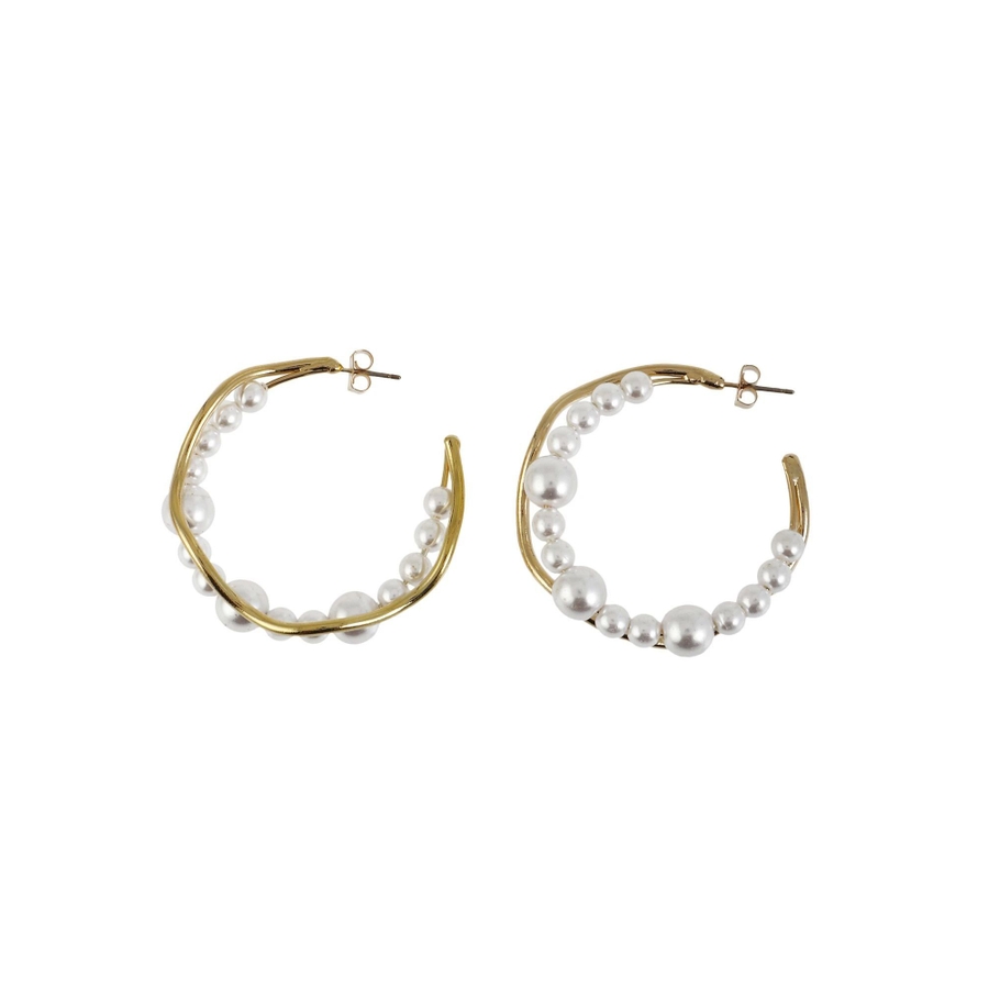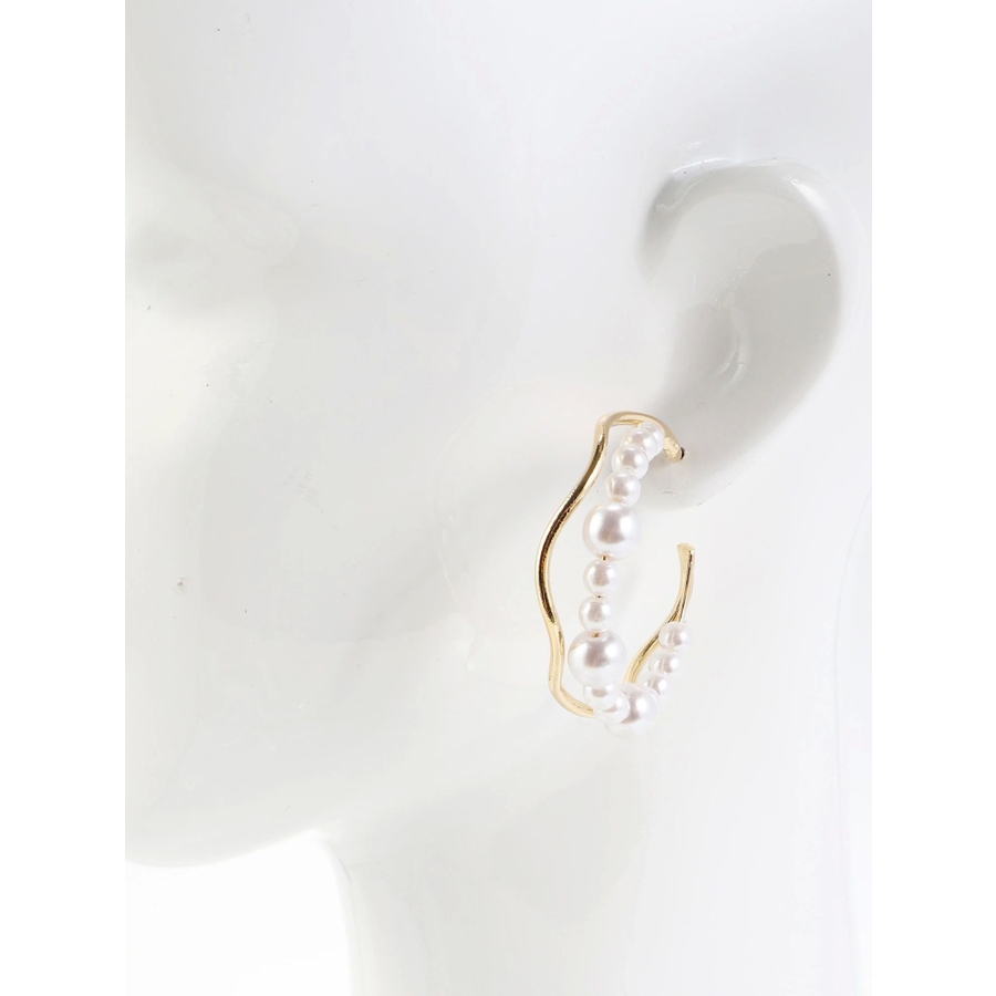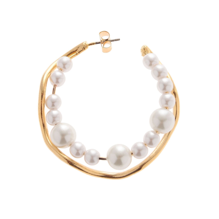 人気のフープデザインにパールパーツが付いたピアスです。大振りのデザインなので、存在感がありコーディネートのポイントになるピアスです。