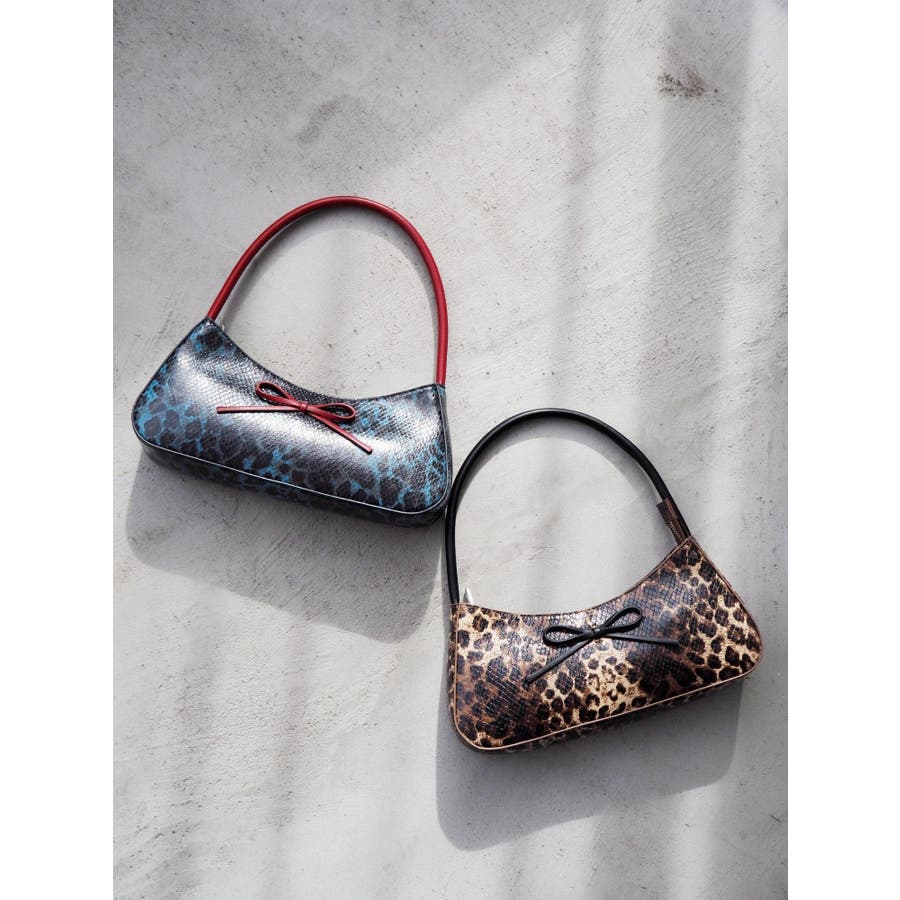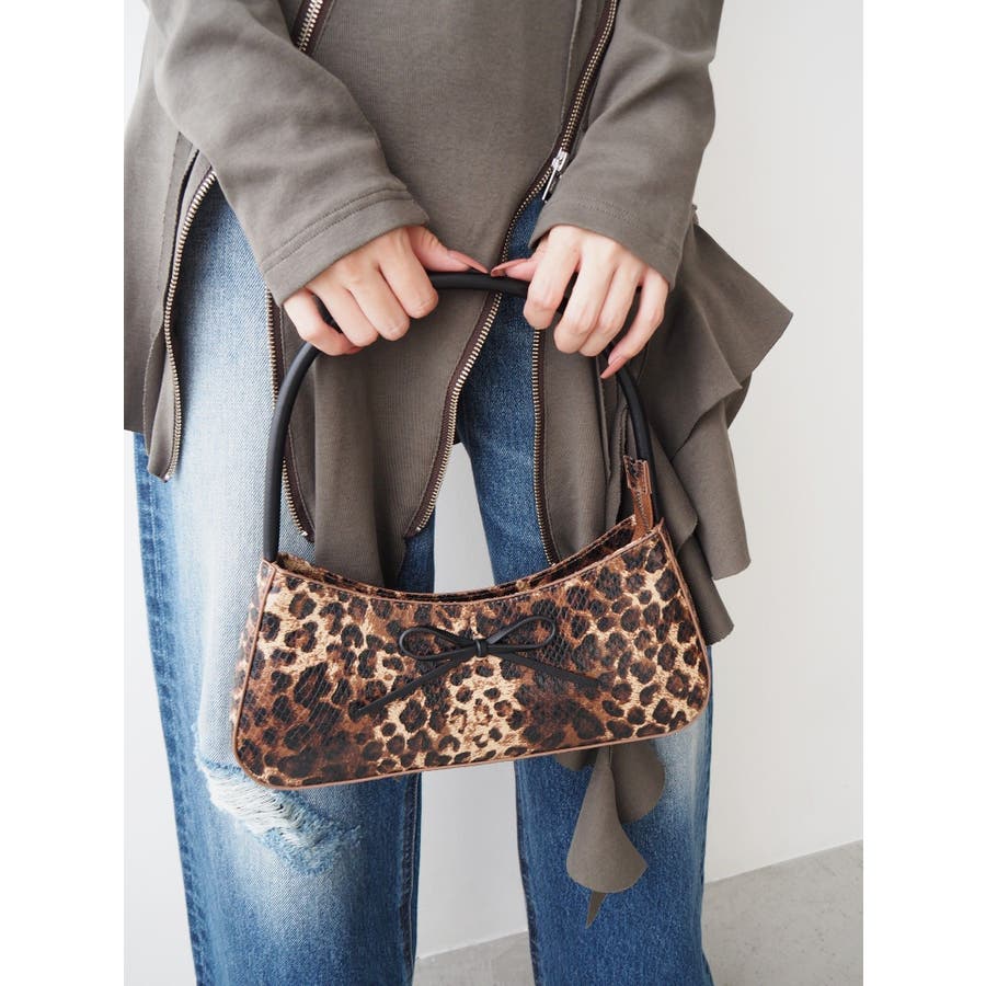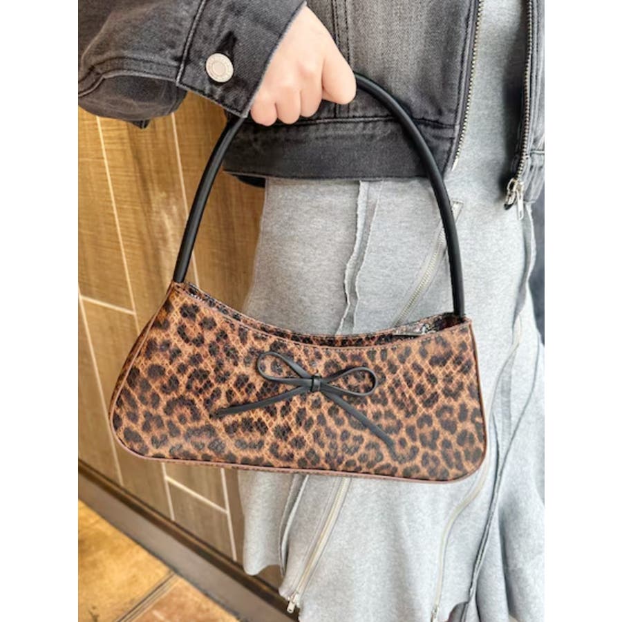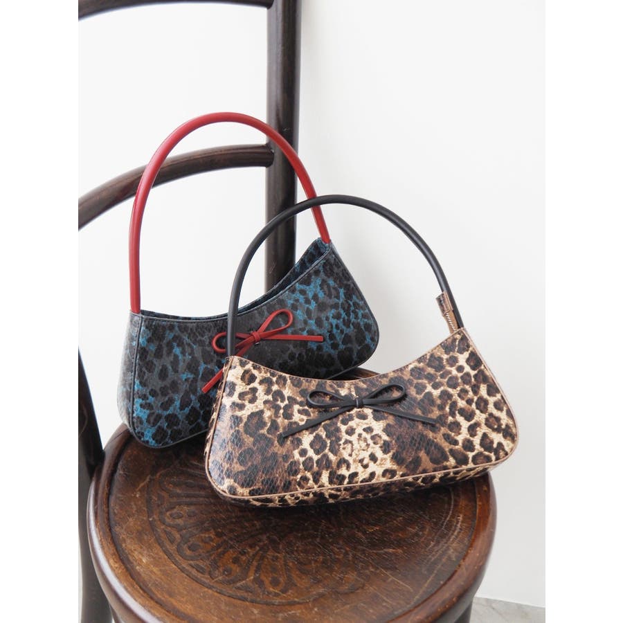 ■デザイン光沢感のあるヒョウ柄の生地を使用したミニハンドバッグです。ヒョウ柄生地とリボン・ショルダー部分の生地を変えバイカラーデザインにしています。コーデのアクセントにも使えるバッグです。※サンプルでの撮影のため、一部色味が異なります。商品詳細画像が正しい色味となります。