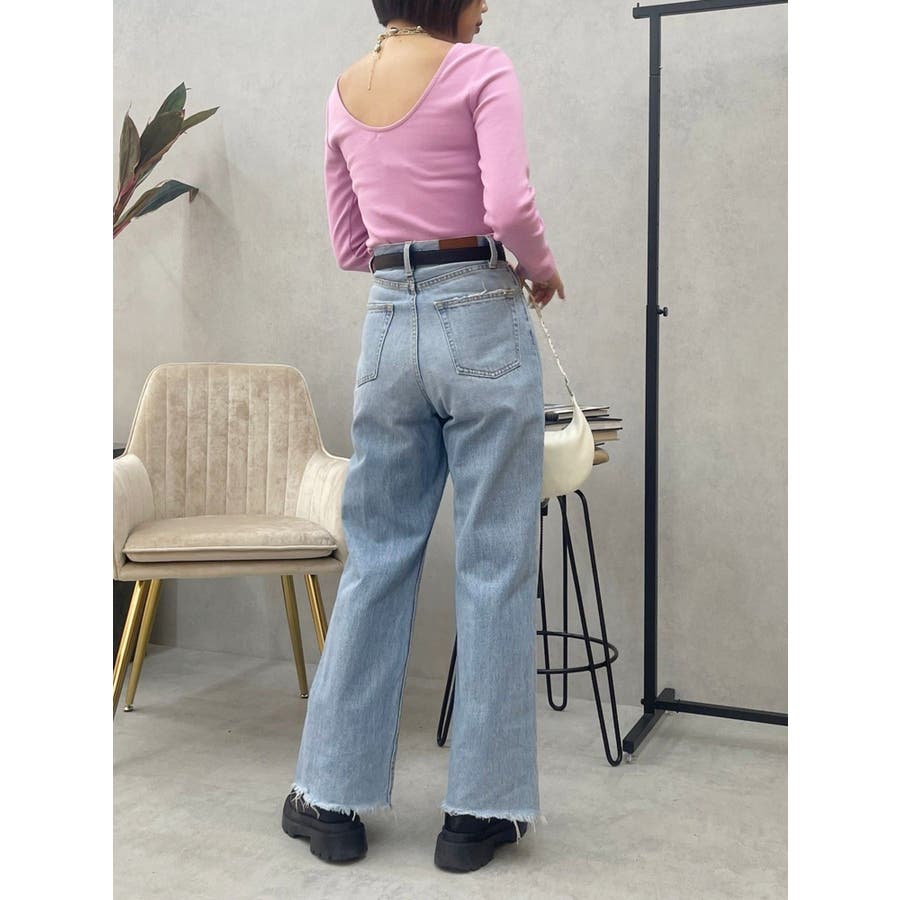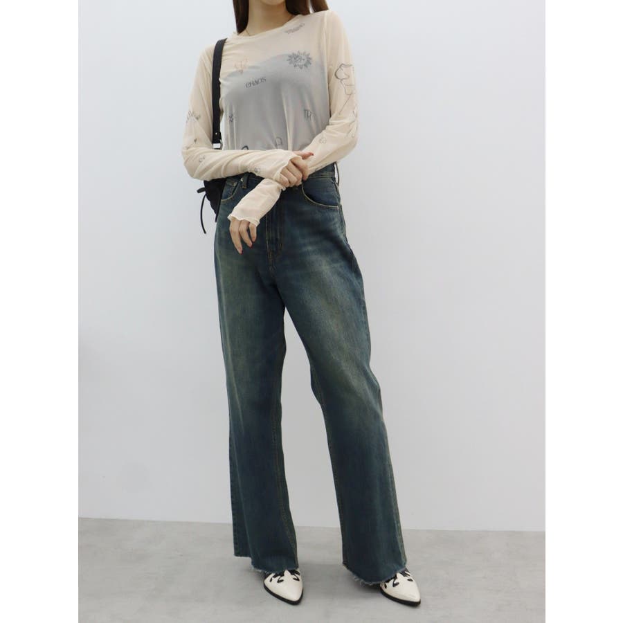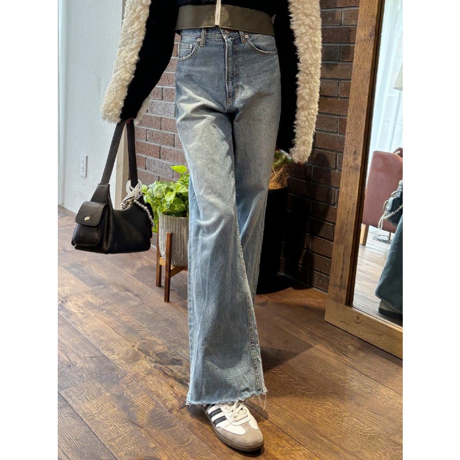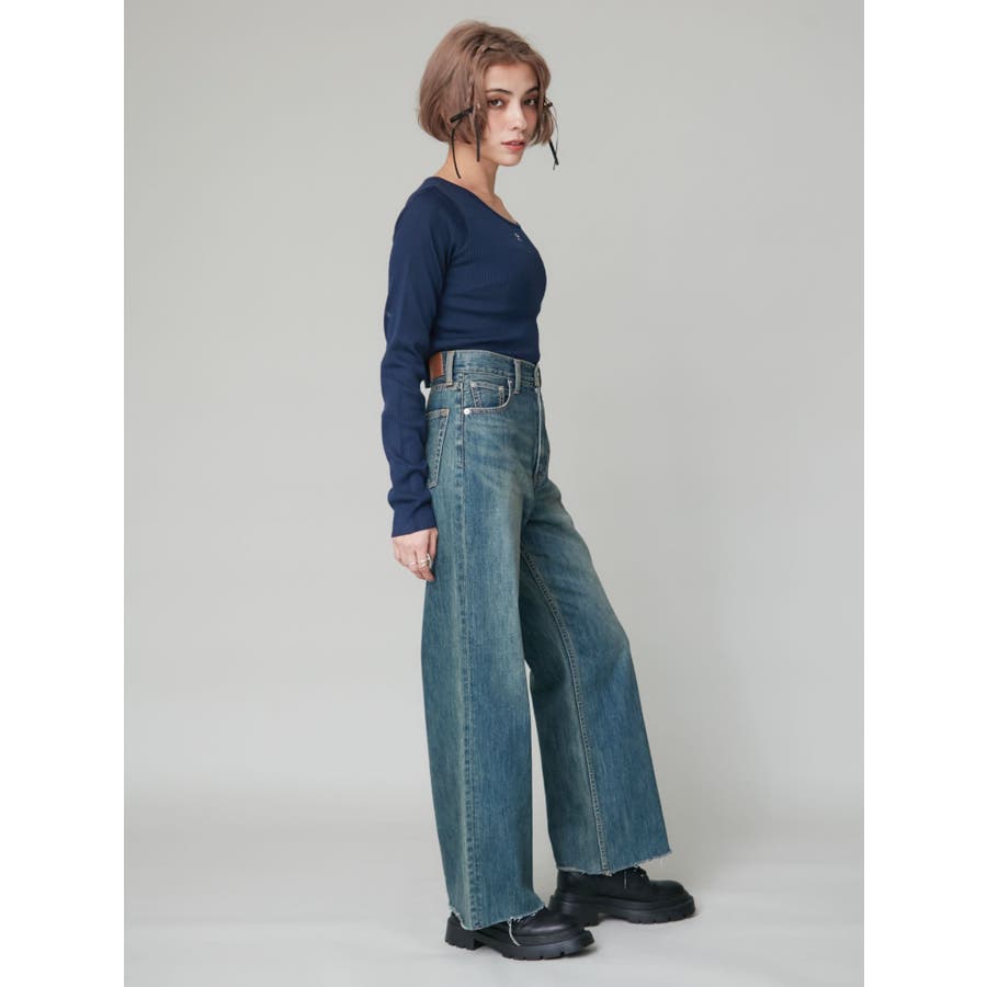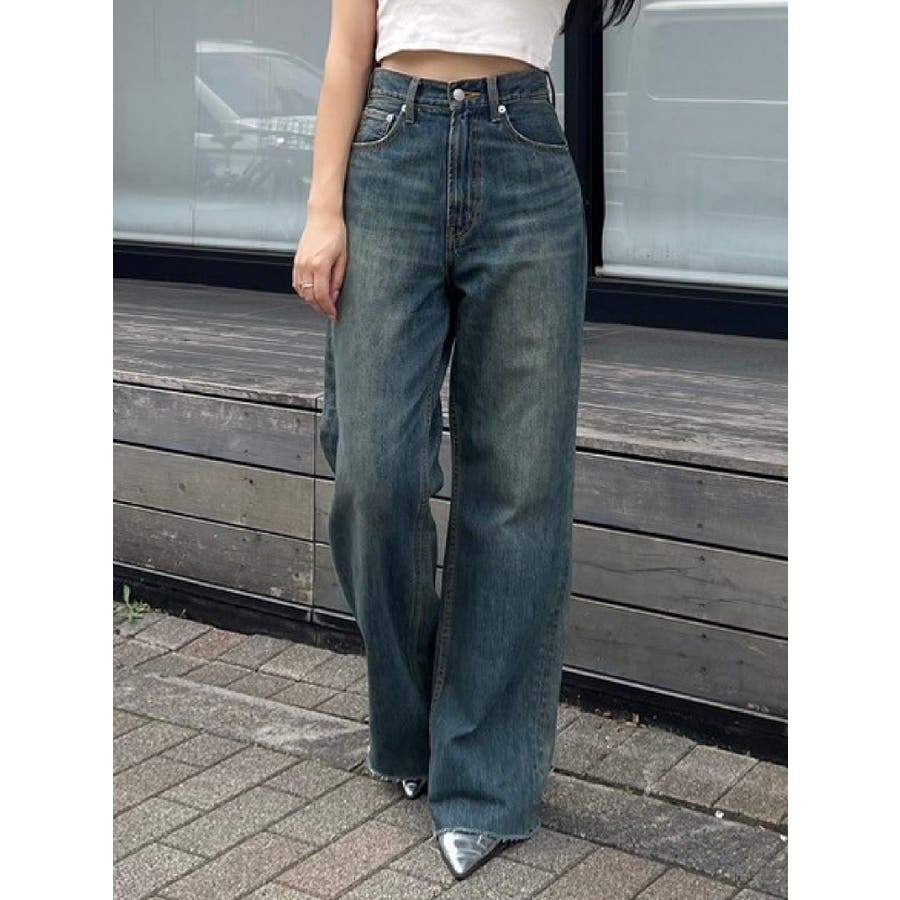 \スタッフ支持率No.1!美脚見えデニム/ ■デザイン EVRIS(エヴリス)で定番人気のワイドデニム。 ストレートに近い形のワイドデニムは、気になるポイントをカバーしながら足をまっすぐ綺麗に見せてくれます。 ハイウエストなので腰の位置も高く見せてくれるのも嬉しいポイント◎ 少しムラのある、絶妙な加工感が特長です。 ※加工物のため、個体差がございます。 ■スタイリング スタイルを選ばずどんなトップスとも合わせやすい万能デニム。 カジュアル派さんはロンTやゆるっとしたニットと合わせるのがおすすめ。 綺麗目派さんは短丈ニットやリブトップスと合わせるのも◎ -------------- 透け感:なし 裏地:あり 生地の厚み:普通 伸縮性:なし --------------