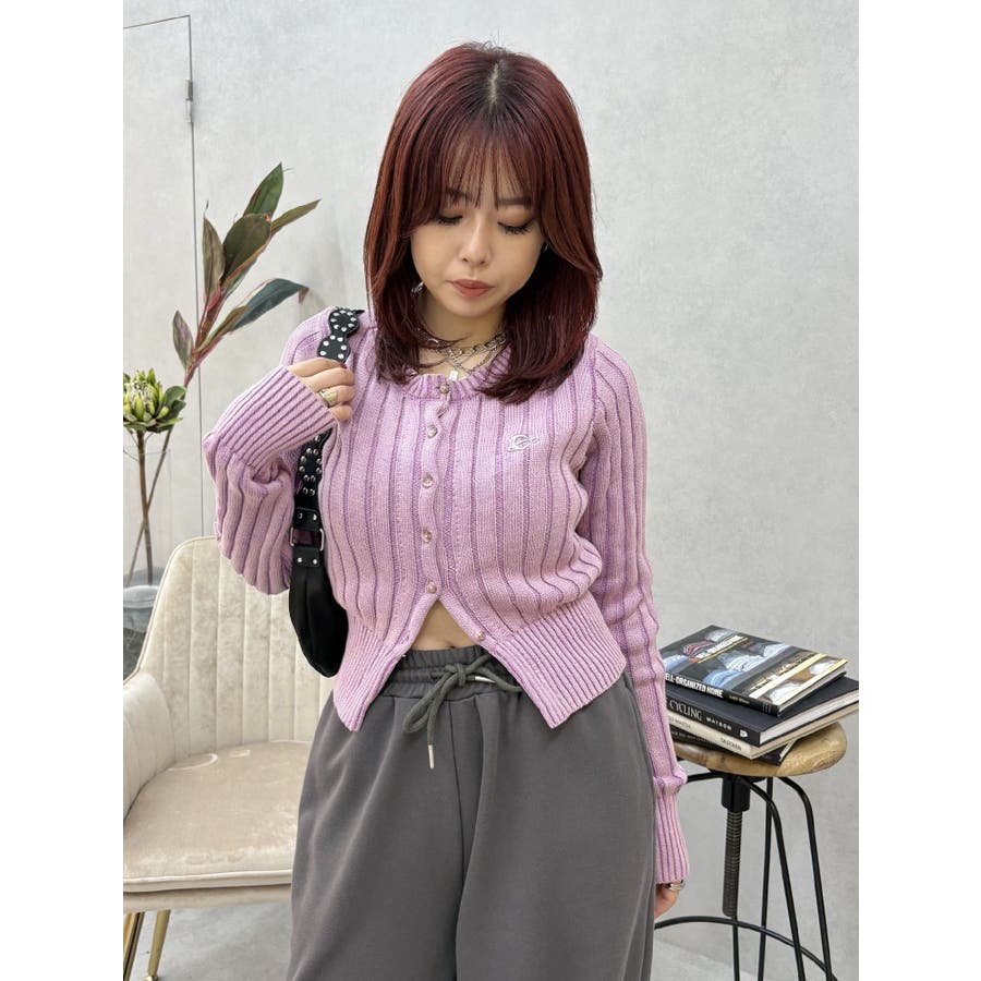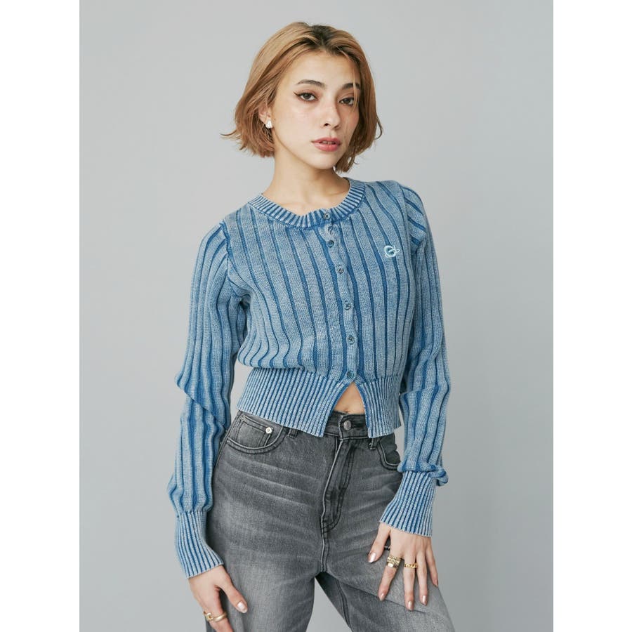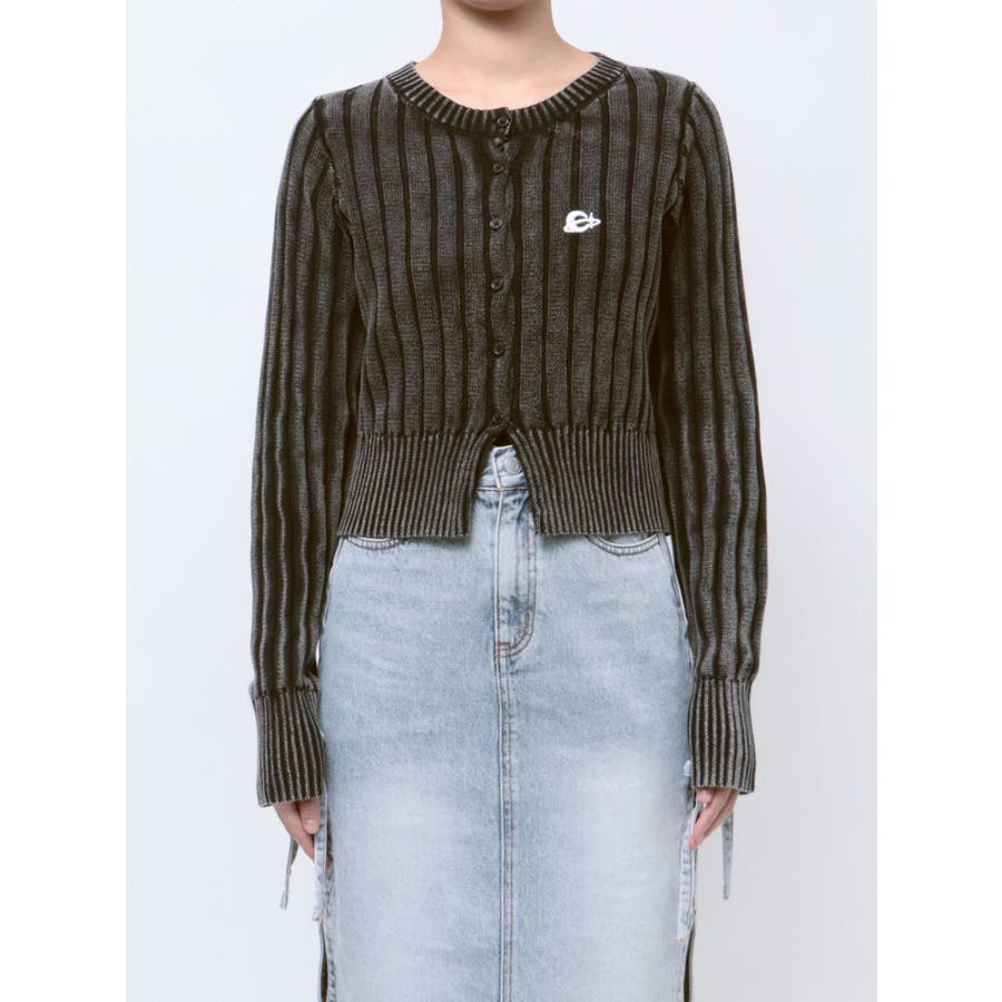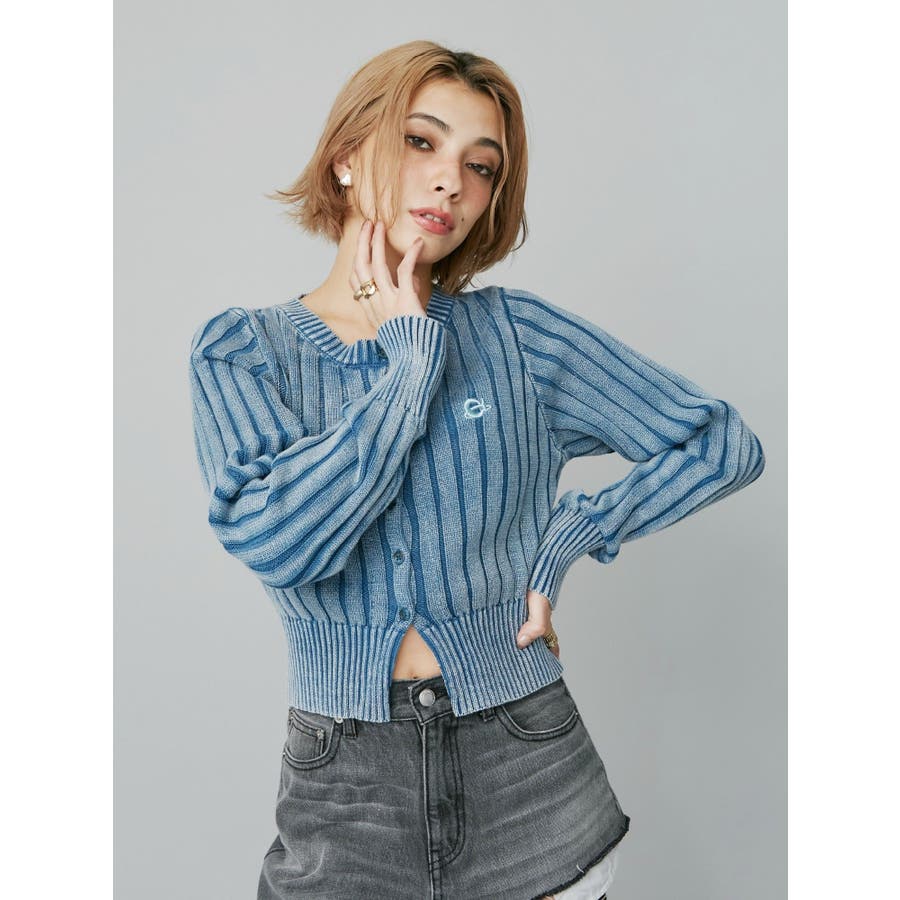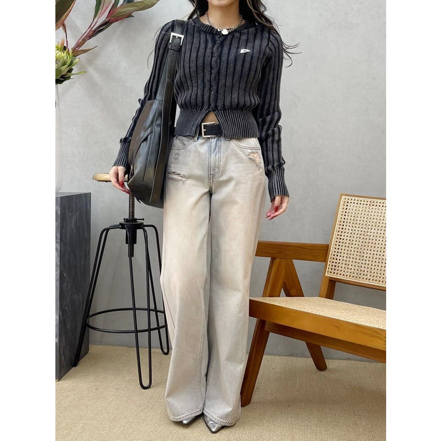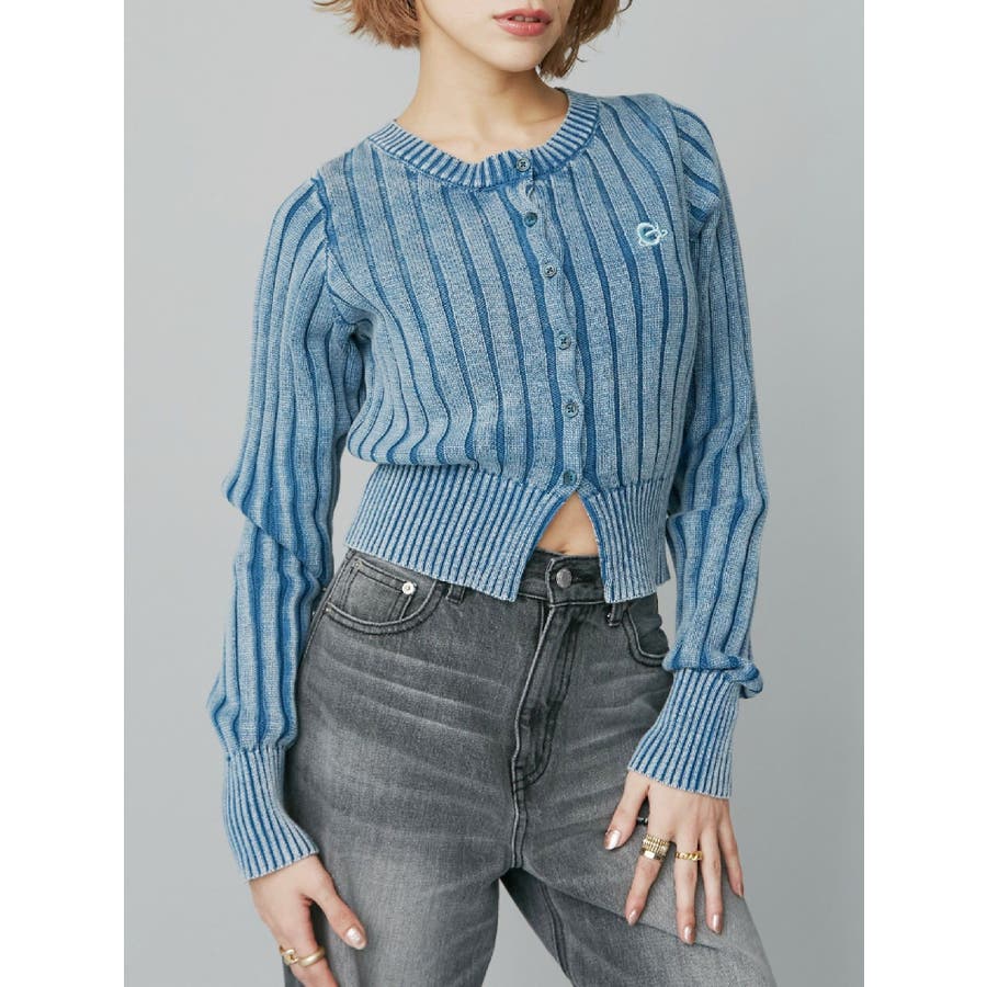 ワンポイントリブブリーチニットカーディガン